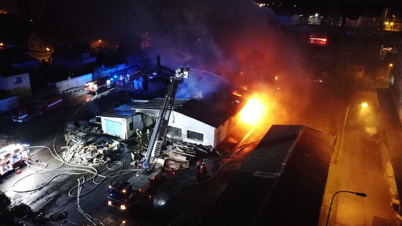 V noci na pondělí 13. března ve 2.16 hodin byl na tísňovou linku středočeských hasičů ohlášen požár ve firmě na zpracování dřeva v Masarykově ulici v Čelákovicích v okrese Praha-východ.