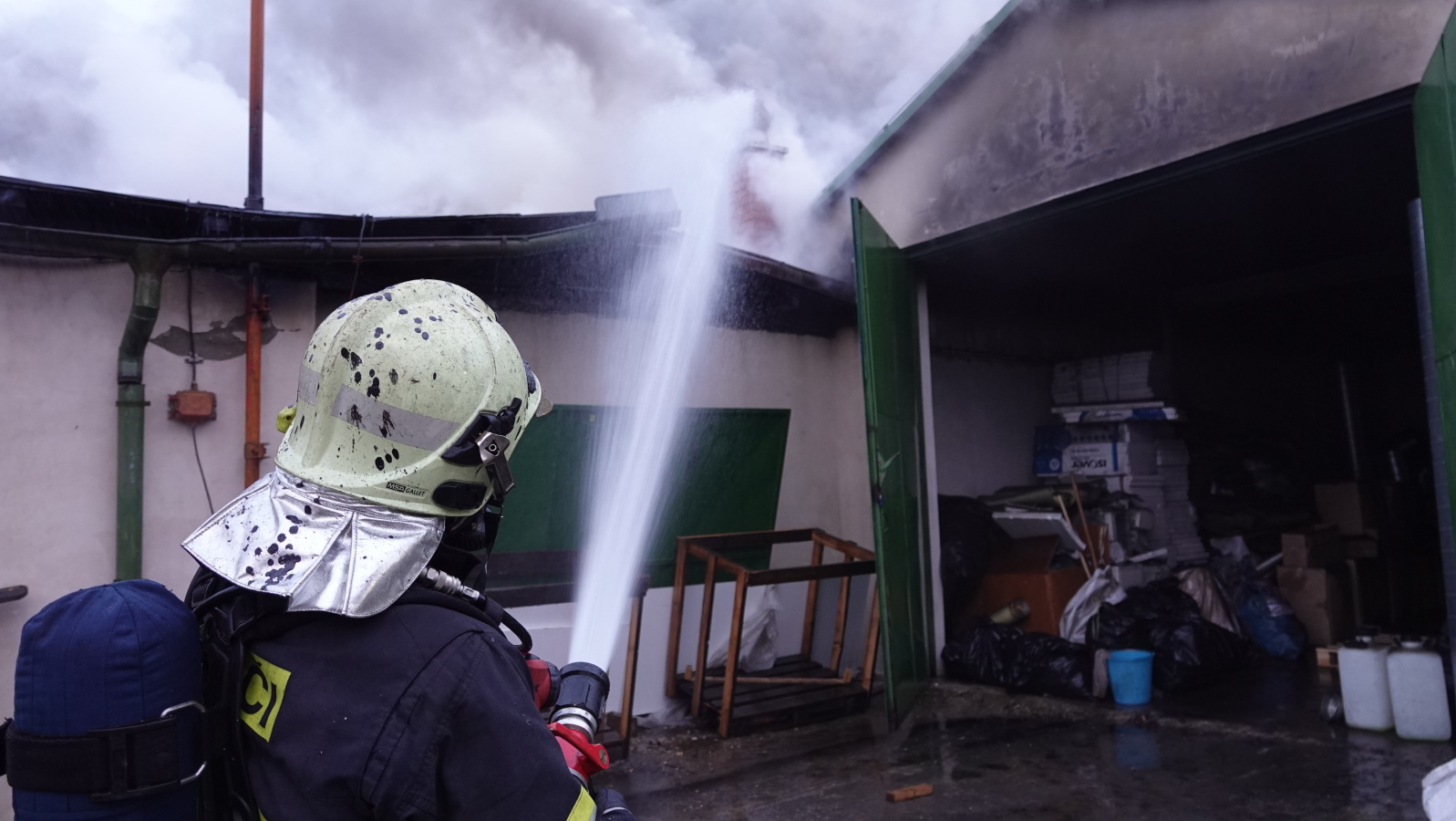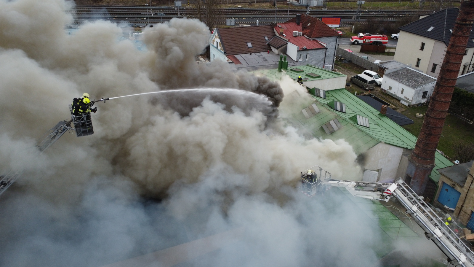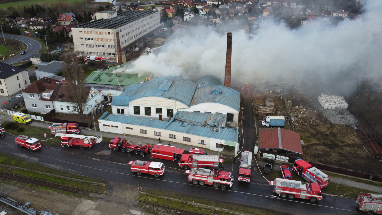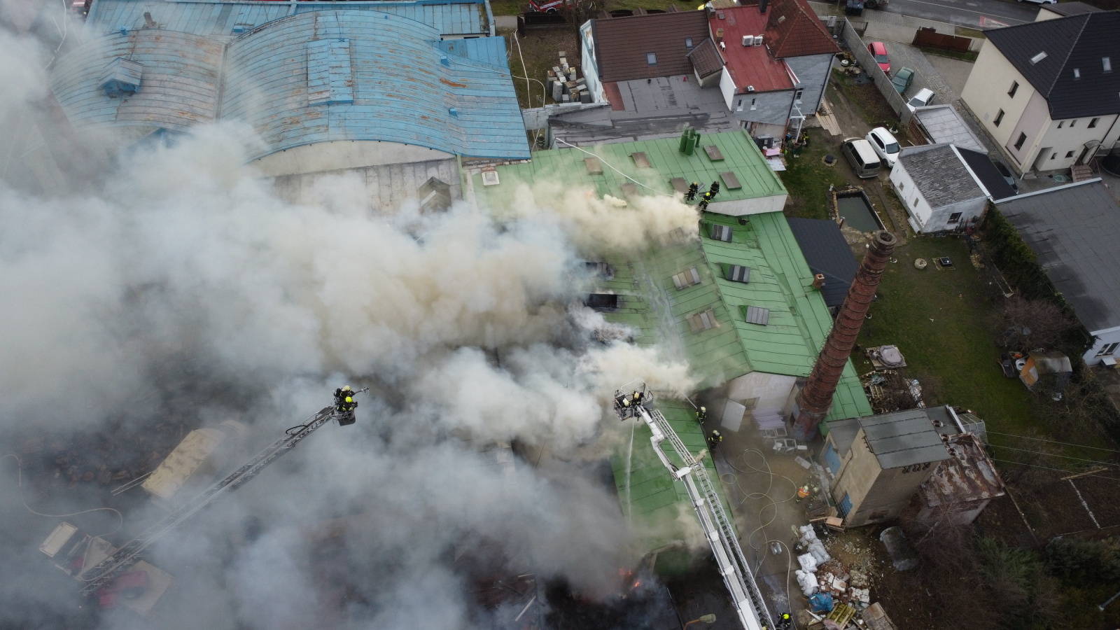 Podle oznamovatele se z areálu, kde v té době nebyli žádní zaměstnanci, valil hustý černý dým, ale plameny vidět nebyly. Vzápětí se požár objevil poté, když se na jednom z objektů propadla střecha. Operační středisko okamžitě zvýšilo poplachový stupeň a na místo vyslalo další jednotky.