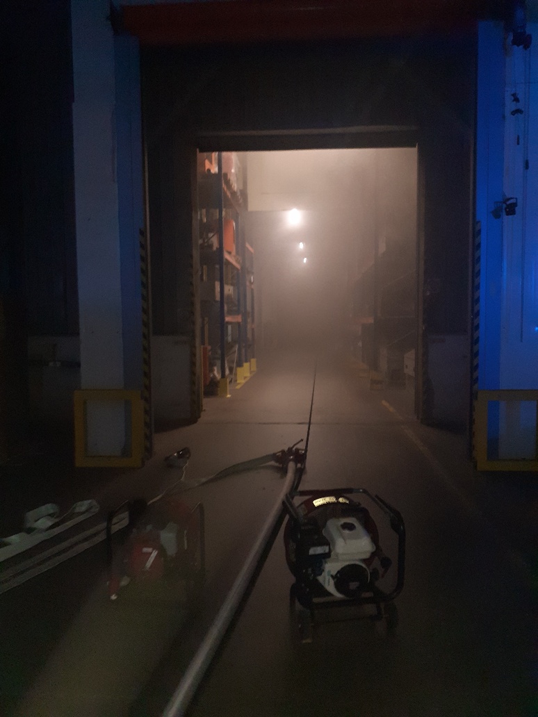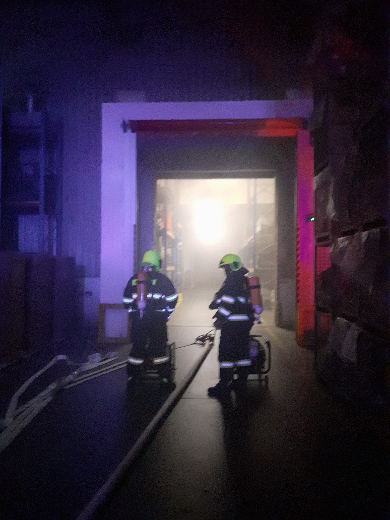 Na likvidaci plamenů hasiči nasadili práškový proud s využitím oxidu uhličitého. Zároveň se další skupina vydala na průzkum vedlejší haly, ve které sídlí jiná firma, ale vnitřní prostor byl také plný kouře. Všichni lidé., kteří uvnitř pracovali, vyšli ven včas, takže nikdo z nich nebyl zraněn. K odvětrání haly hasiči použili přetlakové ventilátory.