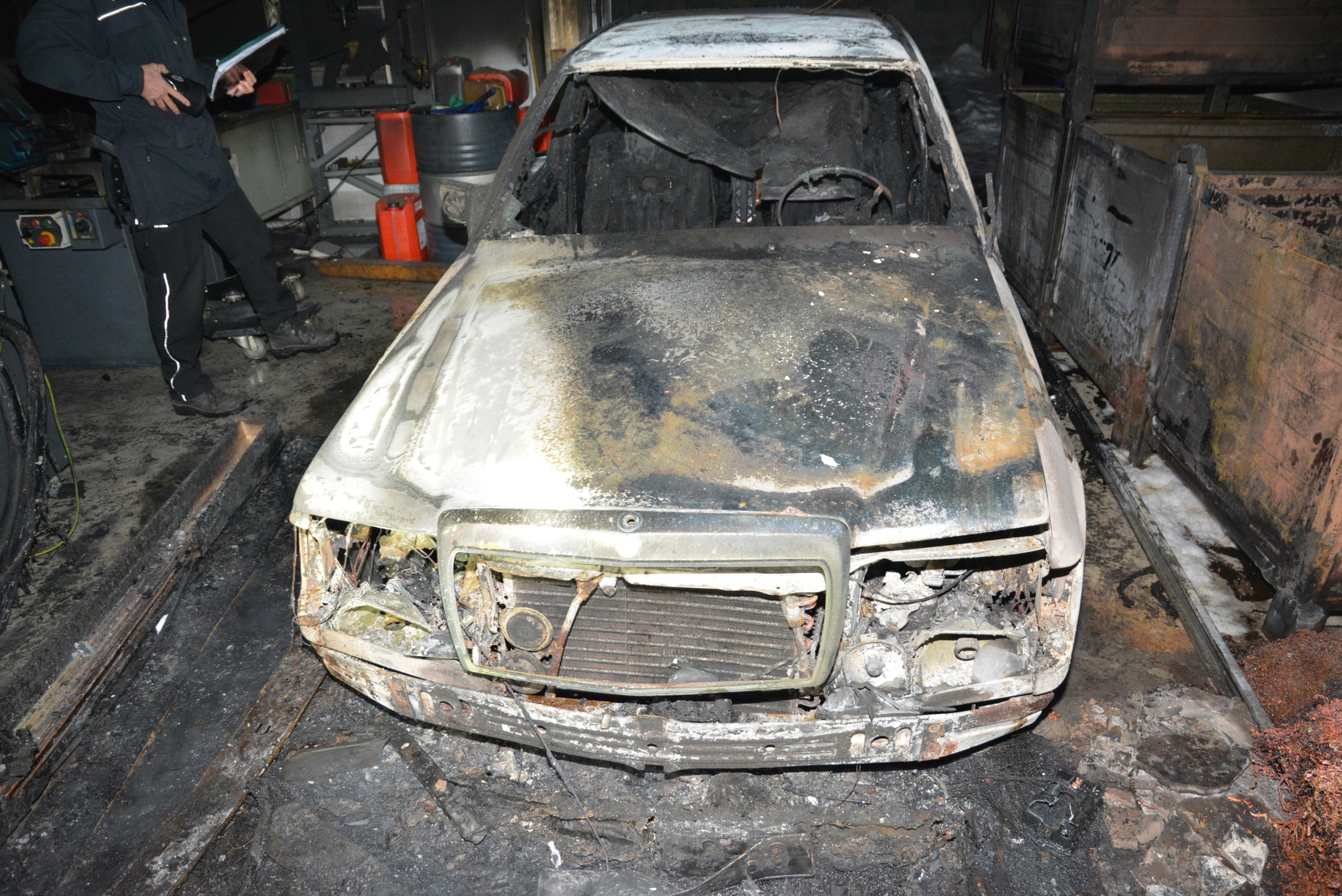Po příjezdu první jednotky a provedeném průzkumu velitel zásahu oznámil, že v hale o půdorysu 50x20 metrů hoří osobní vozidlo a v jeho těsné blízkosti je několik výrobních strojů. Veškeré osoby opustily budovu ještě před příjezdem hasičů. Při snaze o uhašení požáru se nadýchal zplodin hoření majitel, který musel být převezen zdravotnickou záchrannou službou do mladoboleslavské nemocnice na pozorování.