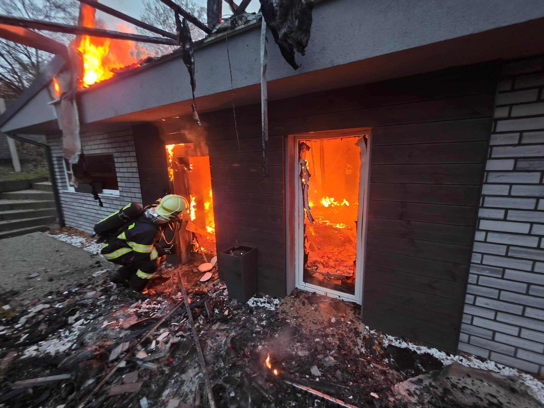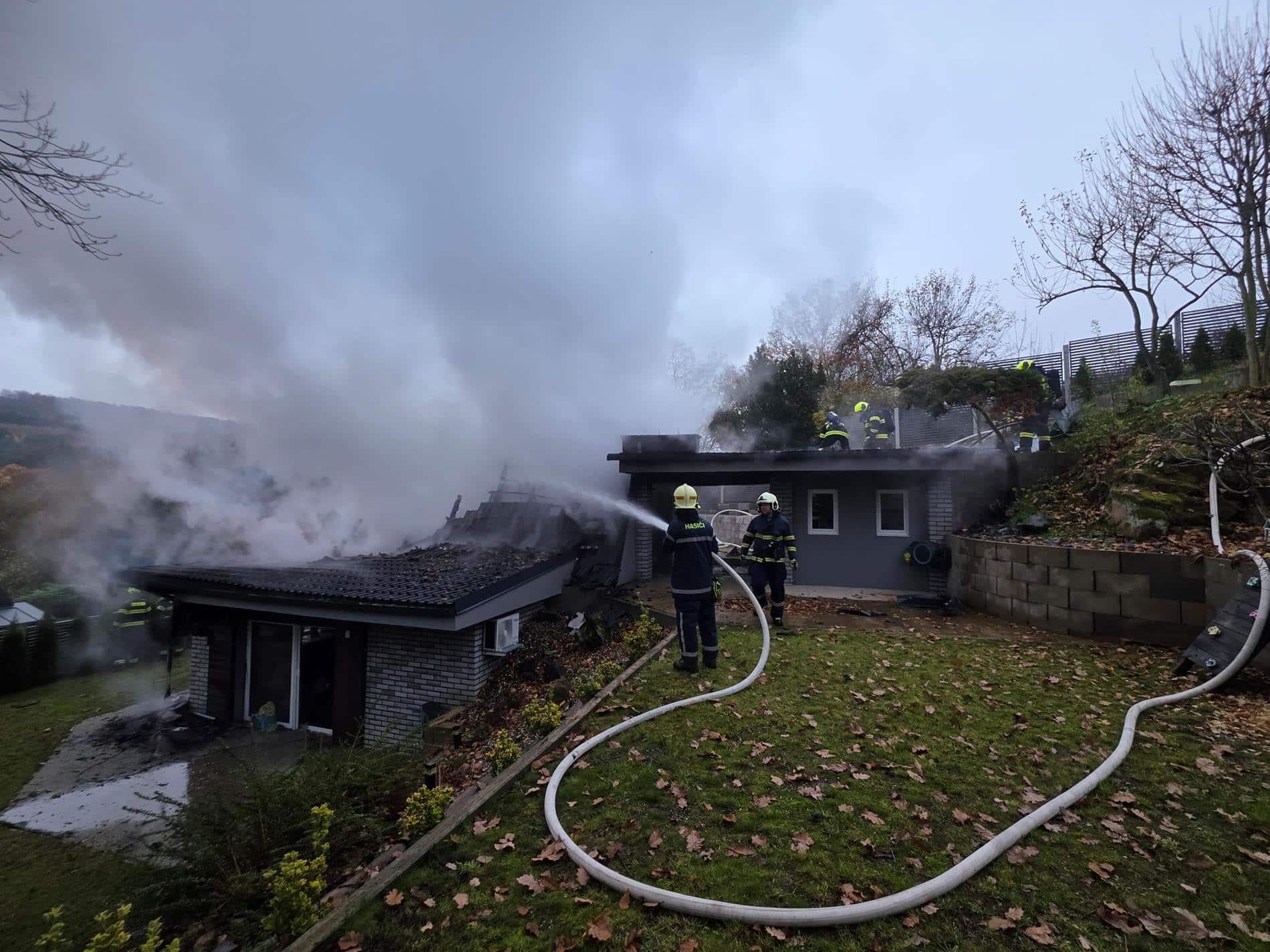 Střecha se propadla, dohašování trvalo dlouho