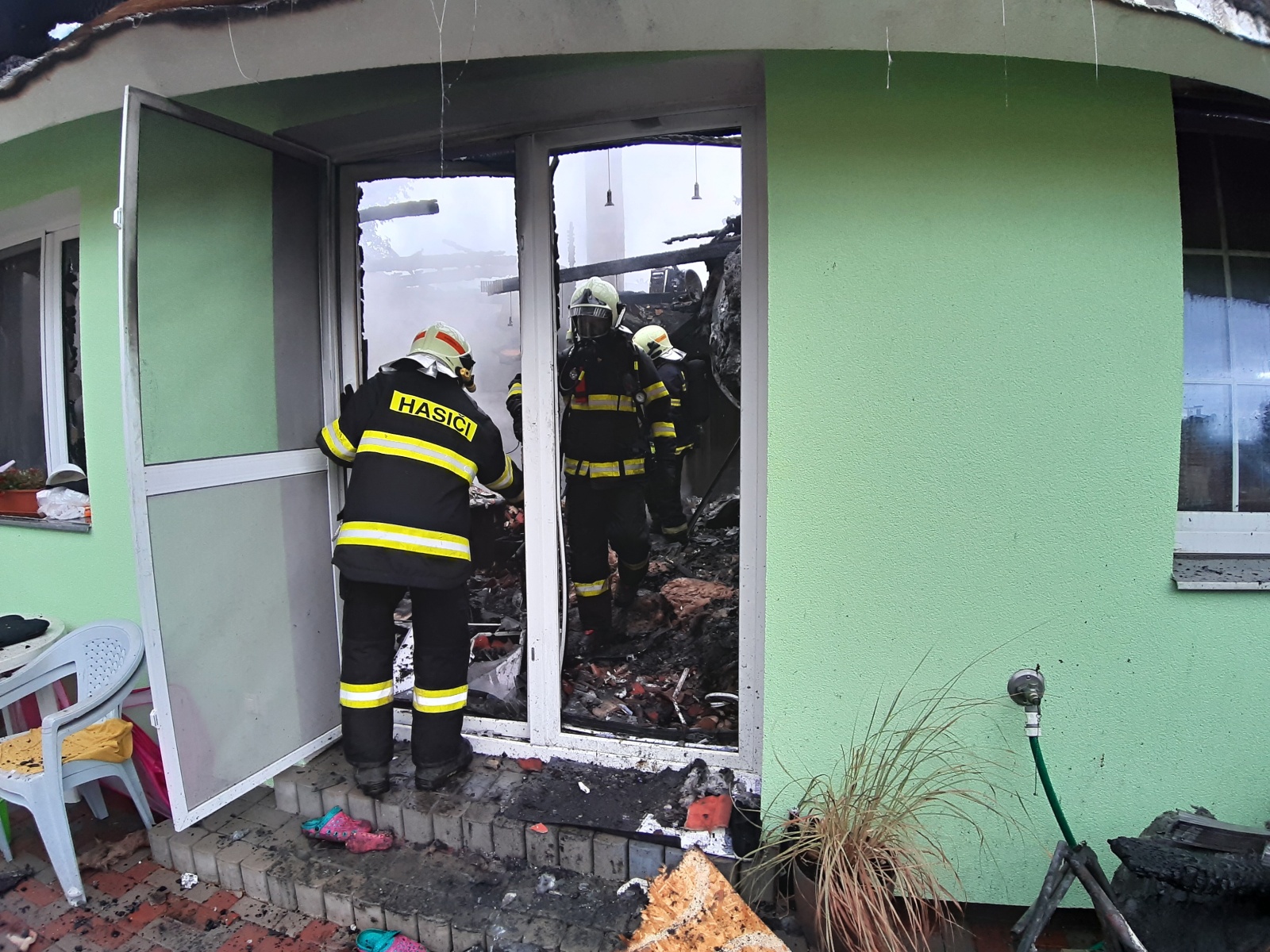 První jednotka byla na místě za patnáct minut od úvodního ohlášení. V době jejího příjezdu byl už dům o rozměrech cca 8x8 metrů požárem zcela zasažen. Podle sdělení uživatele se uvnitř nenacházela žádná další osoba. Hasiči za pomoci dopravního vedení a několika C proudů požár v 8.01 hodin lokalizovali.