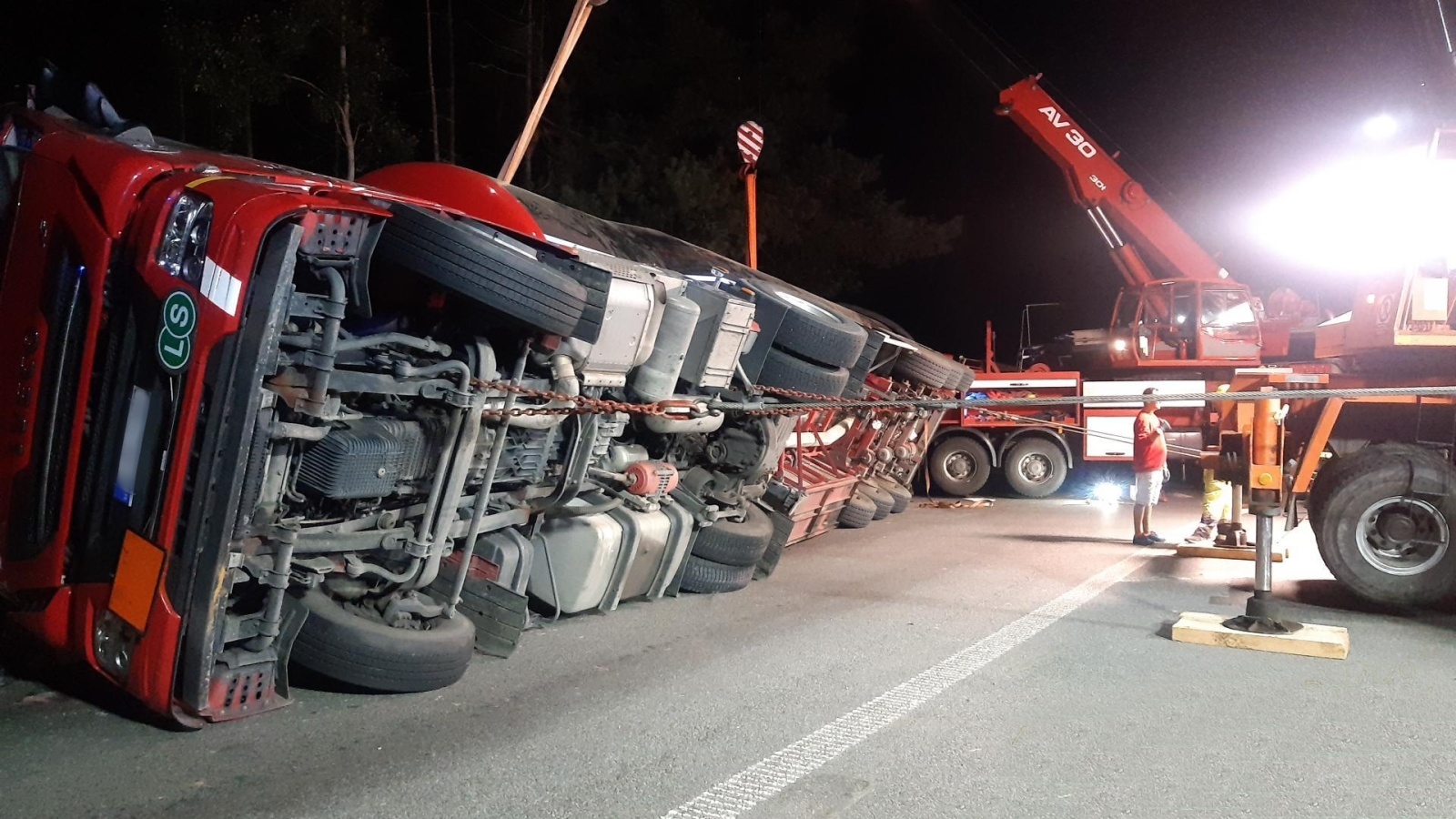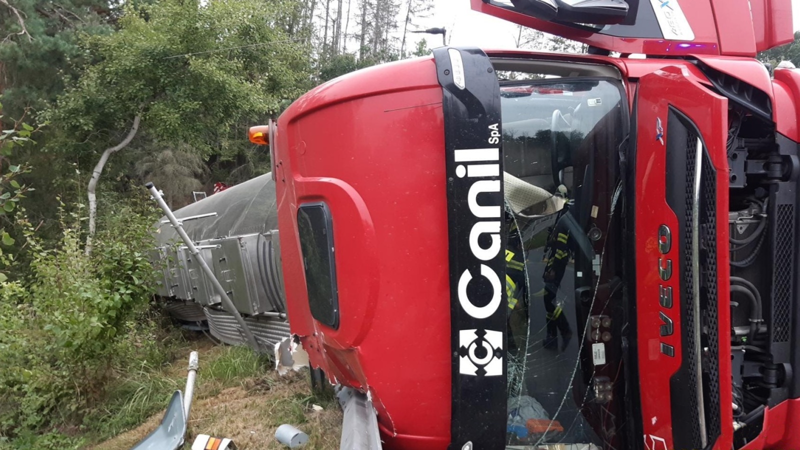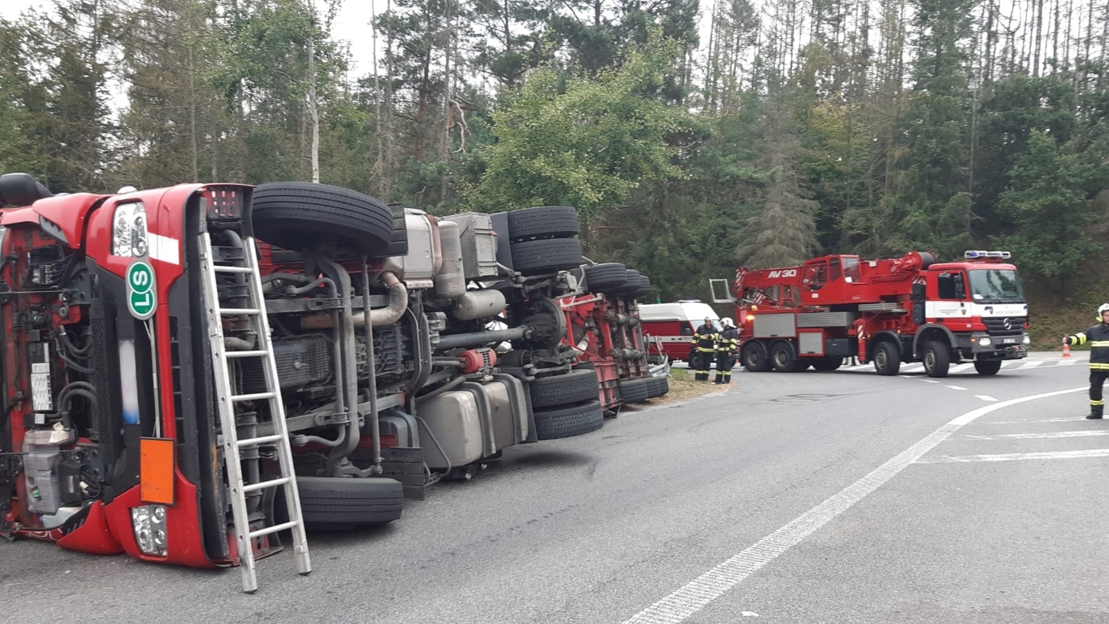 Po příjezdu první jednotky bylo velitelem potvrzeno, že cisterna leží na boku a řidič je nezraněn. Vzhledem k tomu, že hovořil pouze italsky, nebylo možné se s ním domluvit. Po dalším průzkumu se podle nákladových listů podařilo zjistit, že cisterna přepravuje jednadvacet tun kyseliny sulfanové, která je známější pod starším názvem sirovodíková.