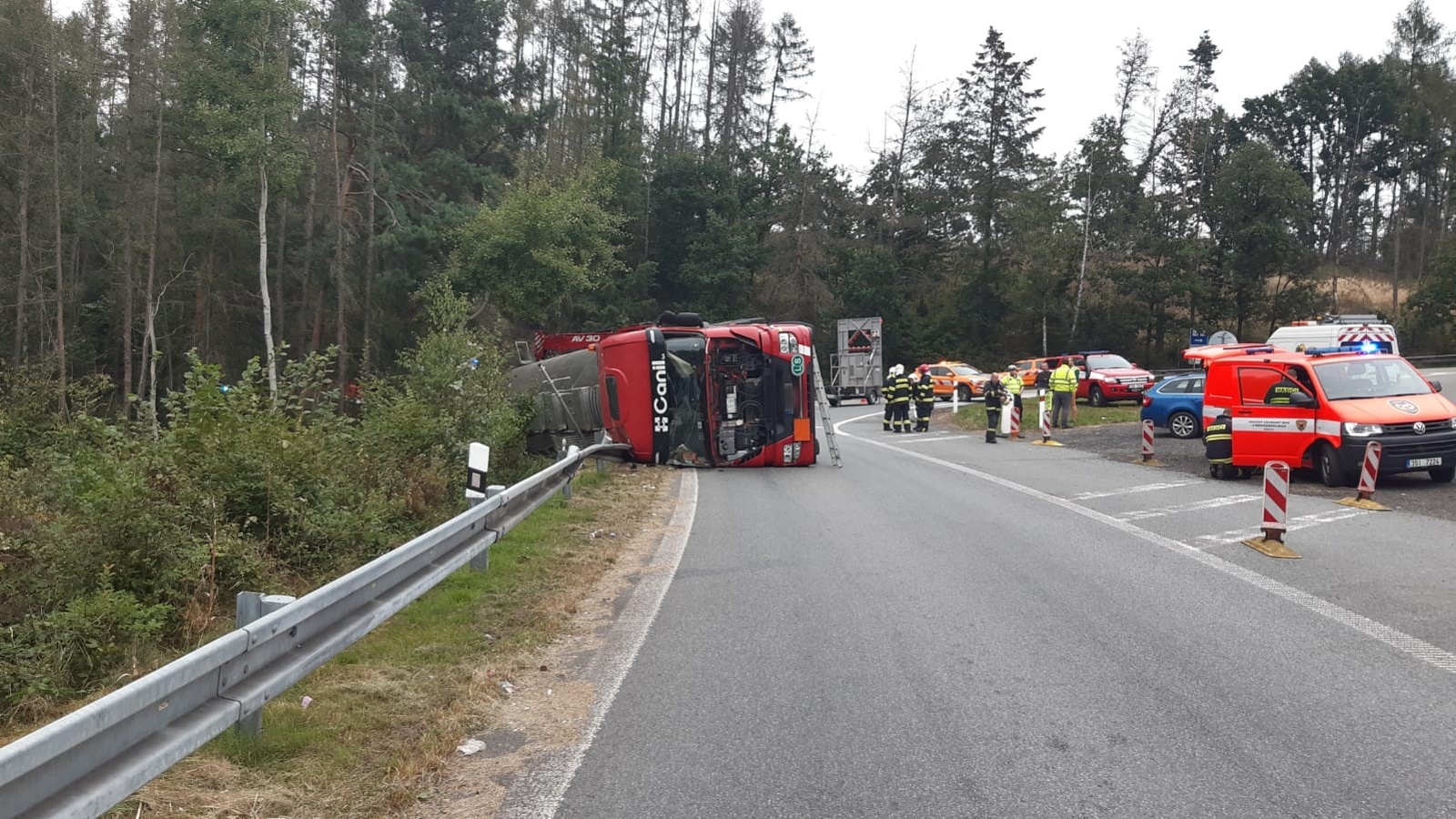 Ve čtvrtek 10. září krátce před devátou hodinou byla na linku tísňového volání Hasičského záchranného sboru Středočeského kraje oznámena nehoda kamionu, který se v katastru obce Vranov na Benešovsku na výjezdu od motorestu na brněnskou dálnici D1 převrátil na bok.