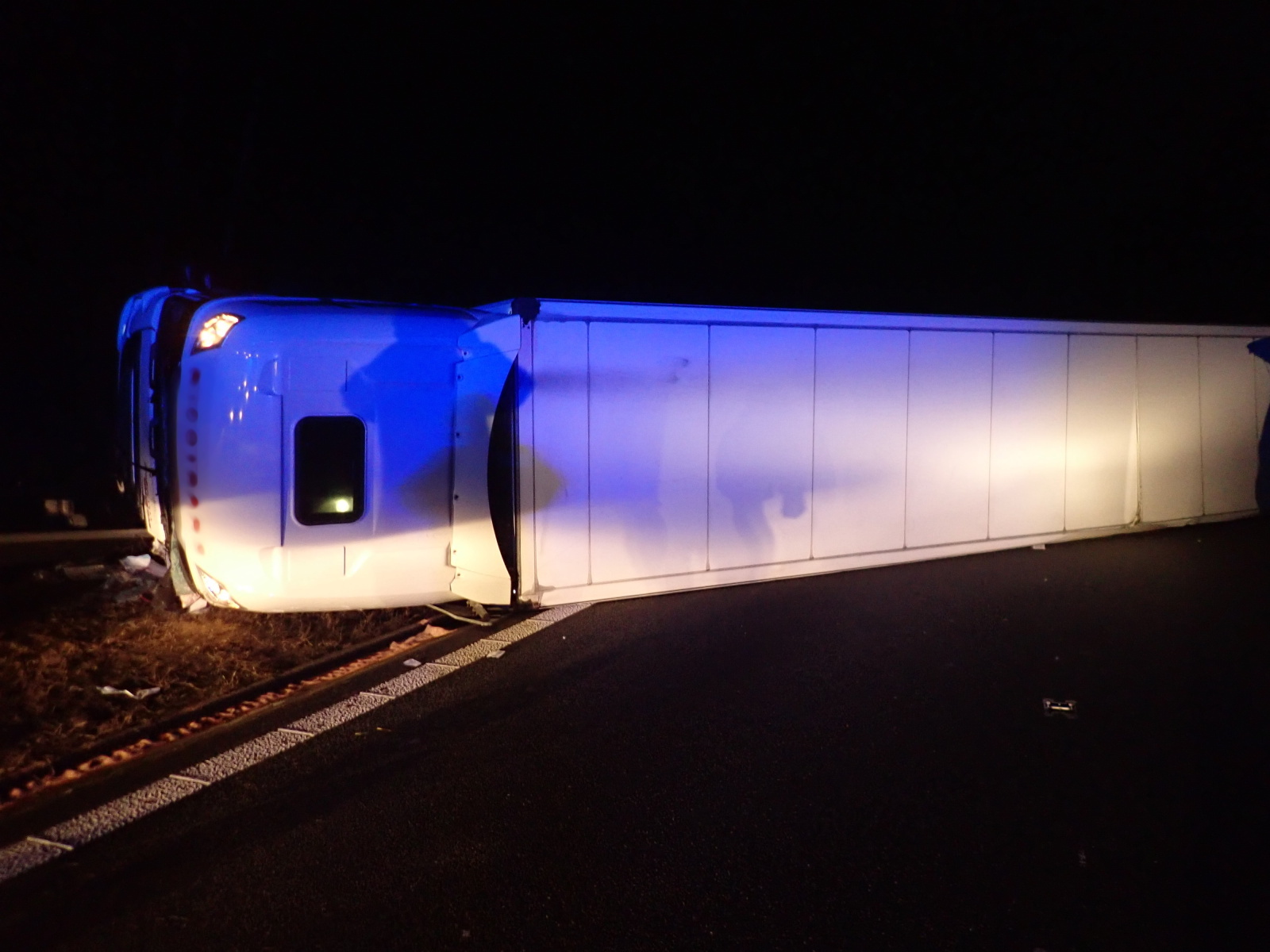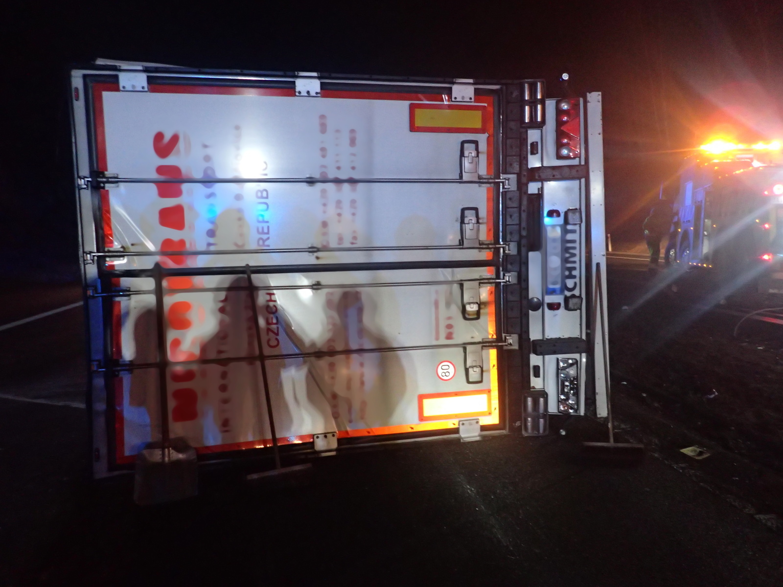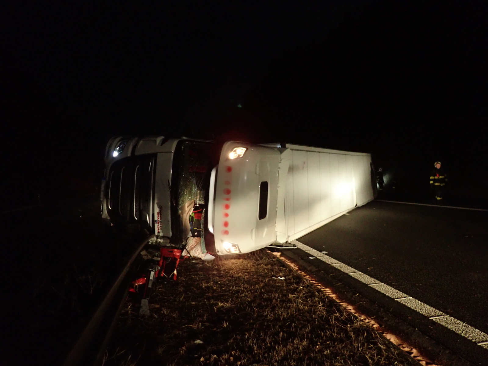 Hasiči dále zajistili místo dopravní nehody a provedli na vozidle protipožární opatření. Krátce po čtvrté hodině pak všechny jednotky zásah u nehody ukončily a předaly místo policii a správci komunikace. Vzhledem k tomu, že kamion byl plně naložený především potravinami, zajistil si majitel náhradní soupravu, do které byl náklad postupně přeložen. Teprve pak mohla začít specializovaná firma s vyproštěním tahače a návěsu.