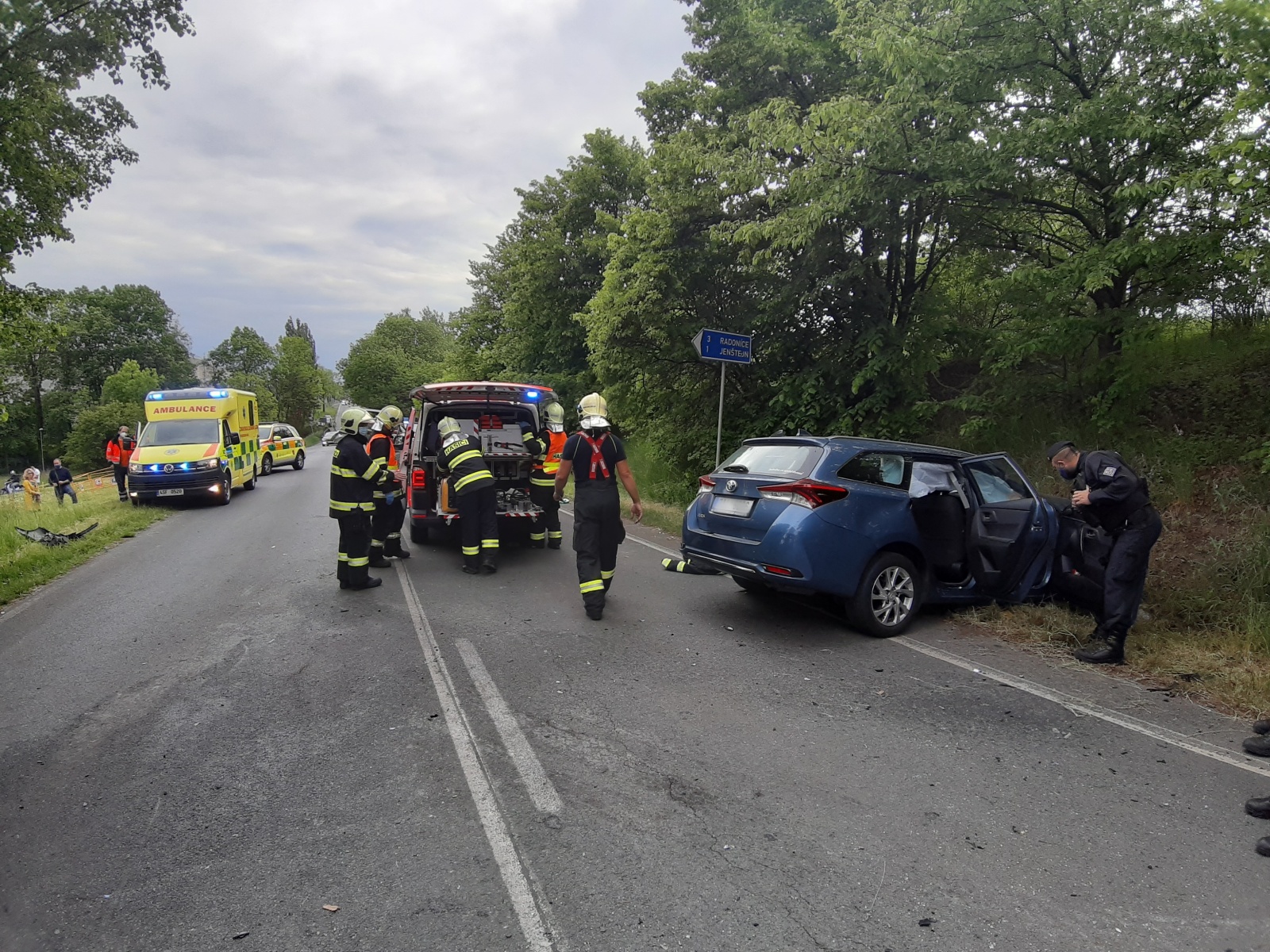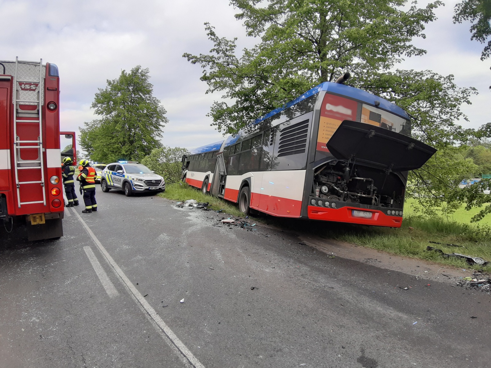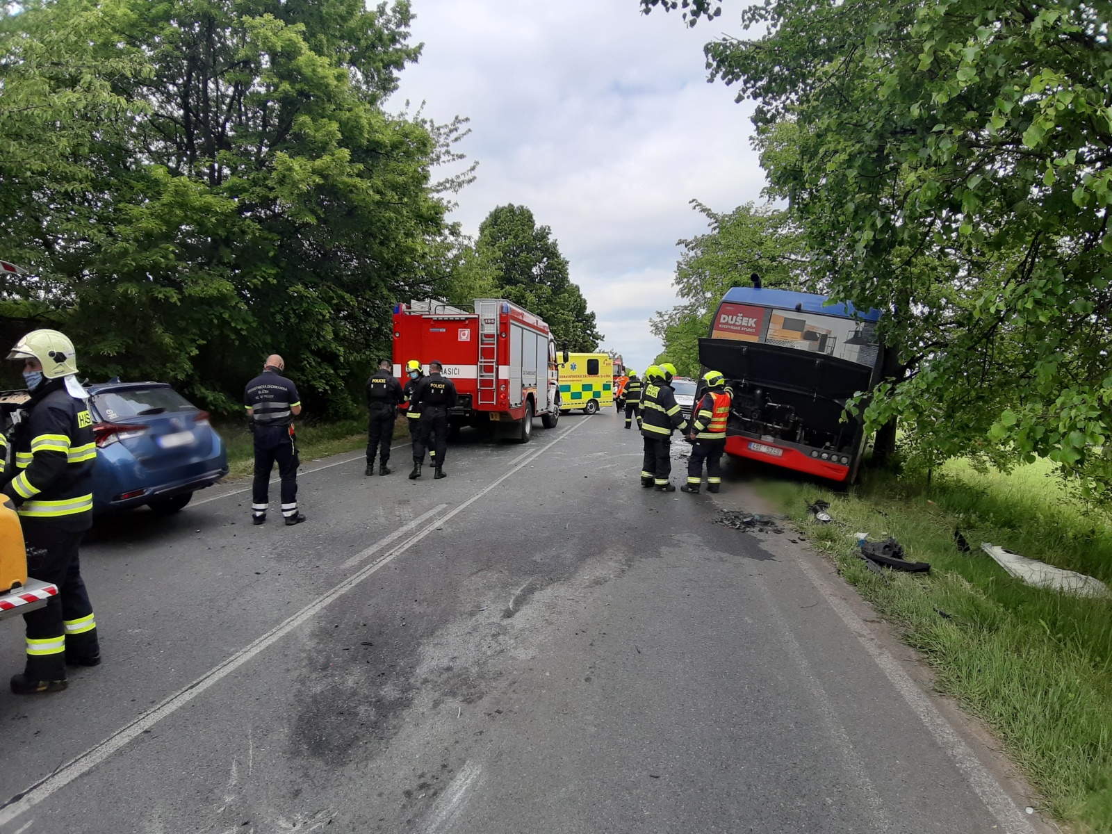 První jednotka byla na místě za dvanáct minut od ohlášení, přičemž bylo provedeným průzkumem zjištěno, že došlo k čelnímu střetu autobusu a osobního vozidla. Autobus po střetu ještě vyvrátil strom, na kterém zůstal částečně viset.