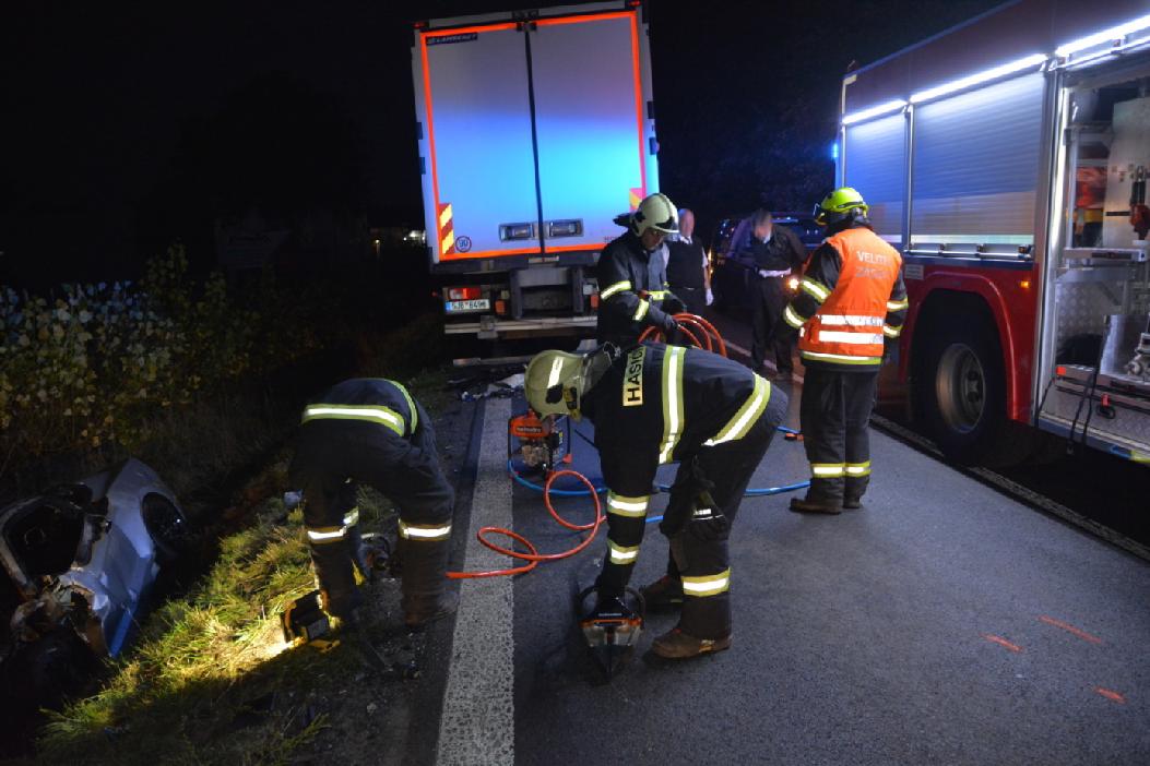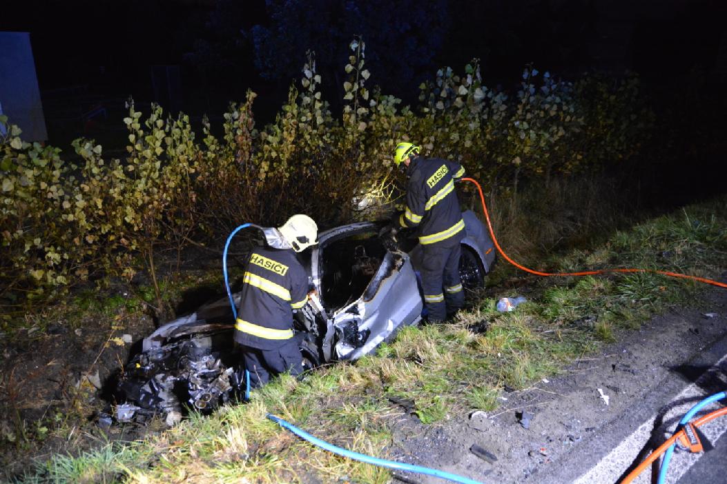 Nákladní automobil zůstal po nehodě na vozovce, v osobním vozidle, které skončilo v příkopu a začalo hořet, zůstal zaklíněný řidič. Před příjezdem hasičů se řidiče snažili zachránit svědci nehody, nehodou způsobená deformace vozidla to však neumožnila. Hasiči byli na místě velmi rychle, tři minuty od výjezdu ze stanice. Dvěma vysokotlakými proudy byl požár celého vnitřního prostoru vozidla uhašen během několika minut. Řidiče přesto už nebylo možné zachránit.