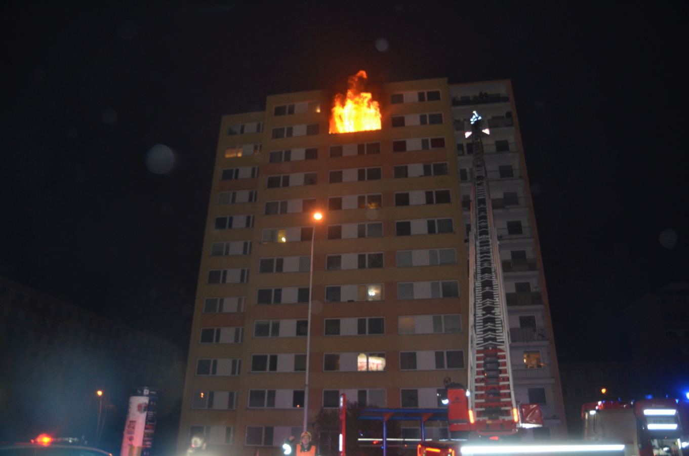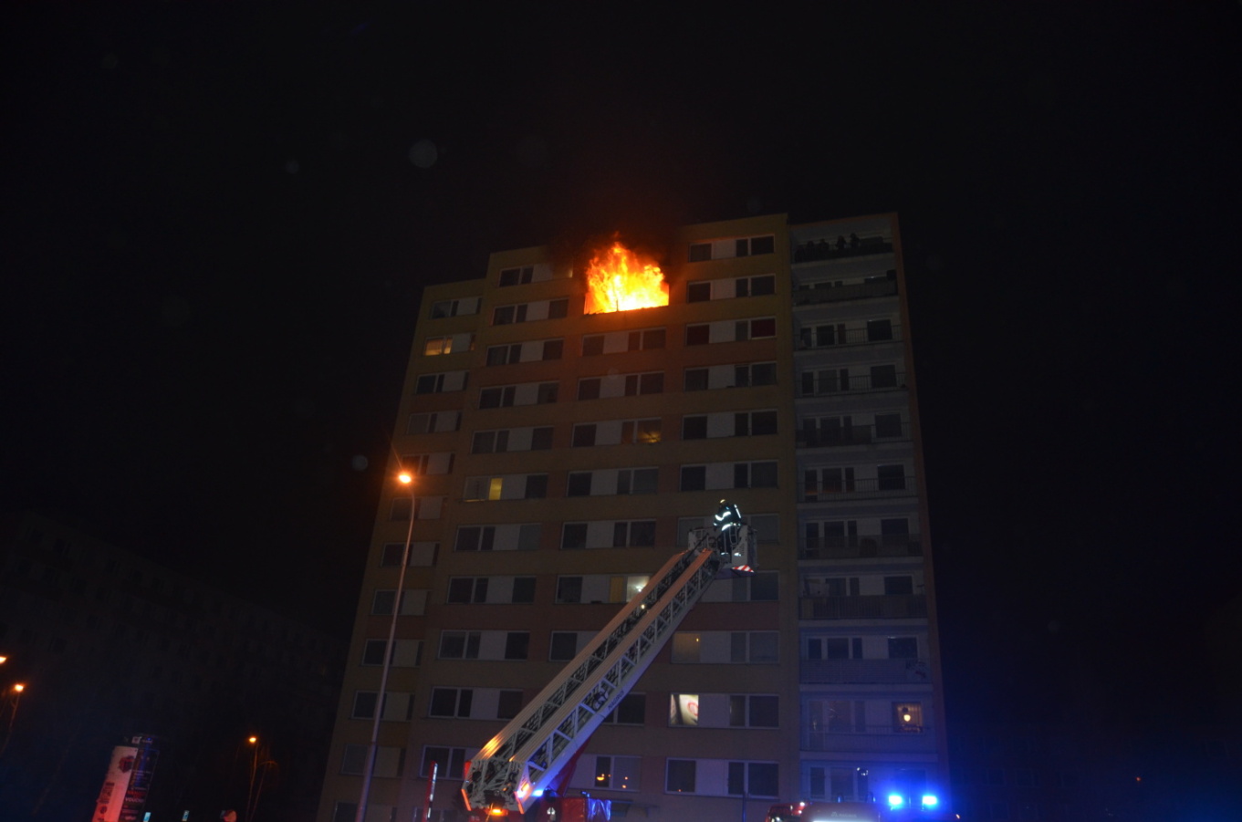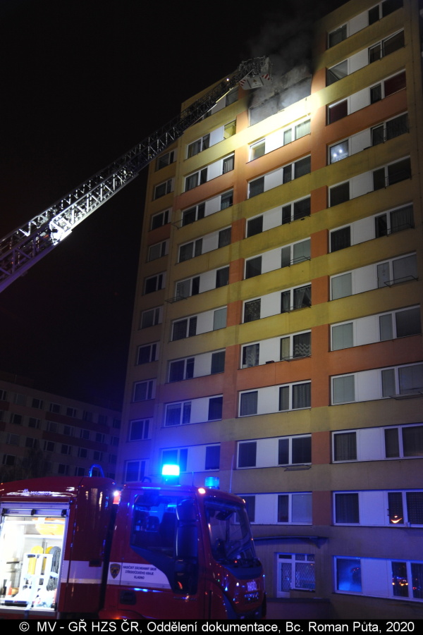 V sobotu 25. ledna v 3.25 hodin byl na linku tísňového volání Hasičského záchranného sboru Středočeského kraje oznámen požár bytu v předposledním patře dvanáctiposchoďového panelového domu v Americké ulici v Kladně.