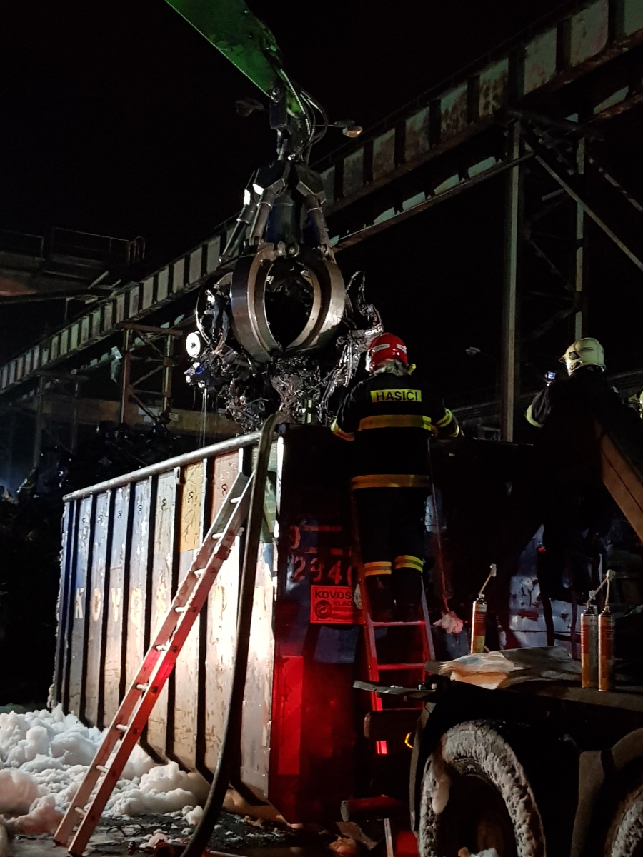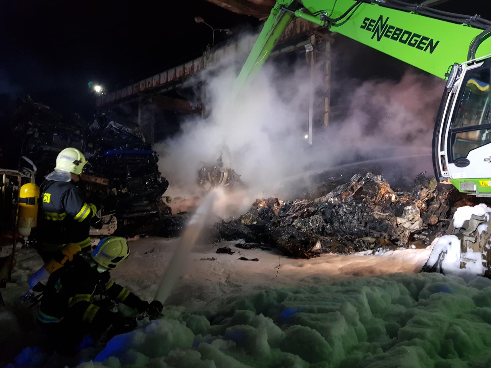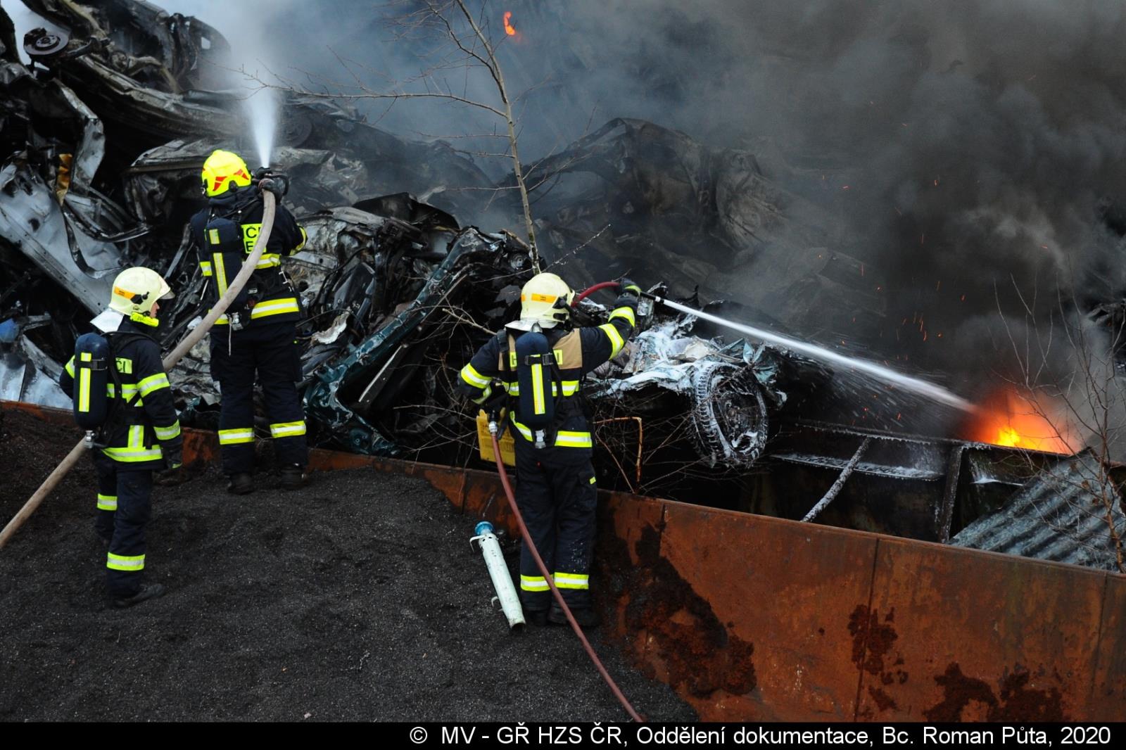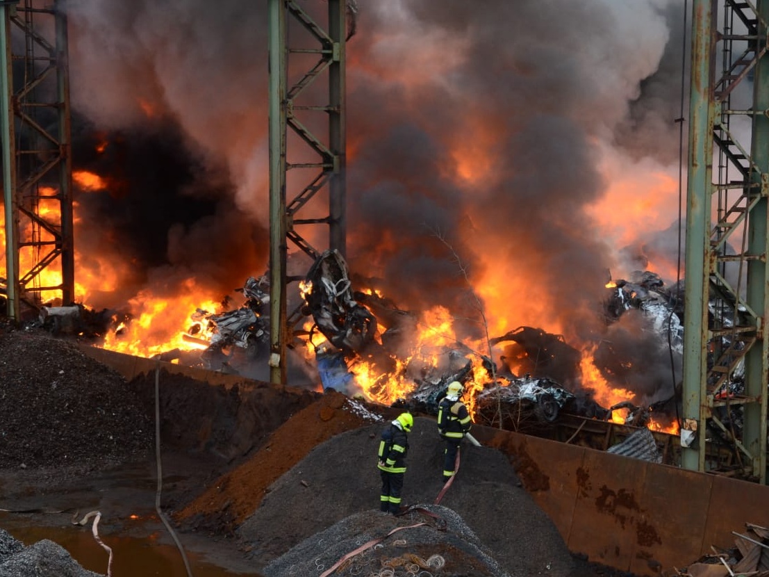 Video: Požár autovraků v kovošrotu Kladno 14. února 2020