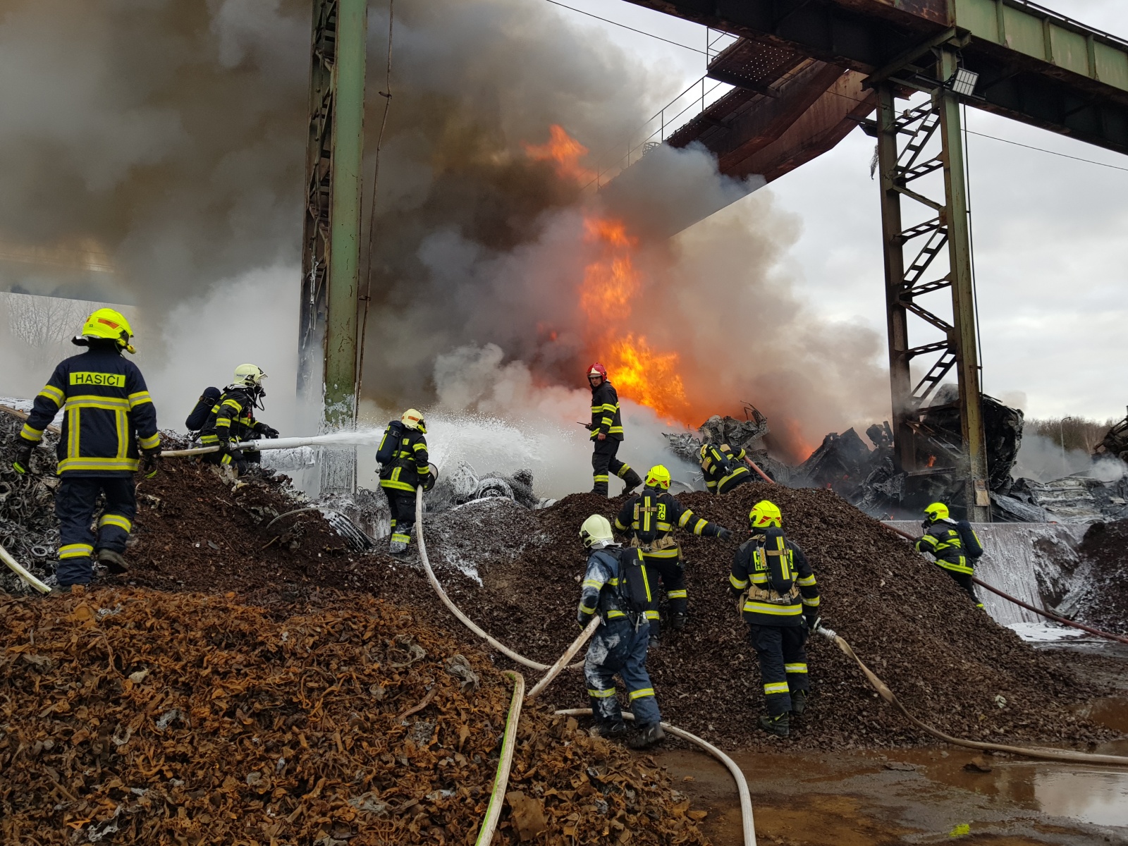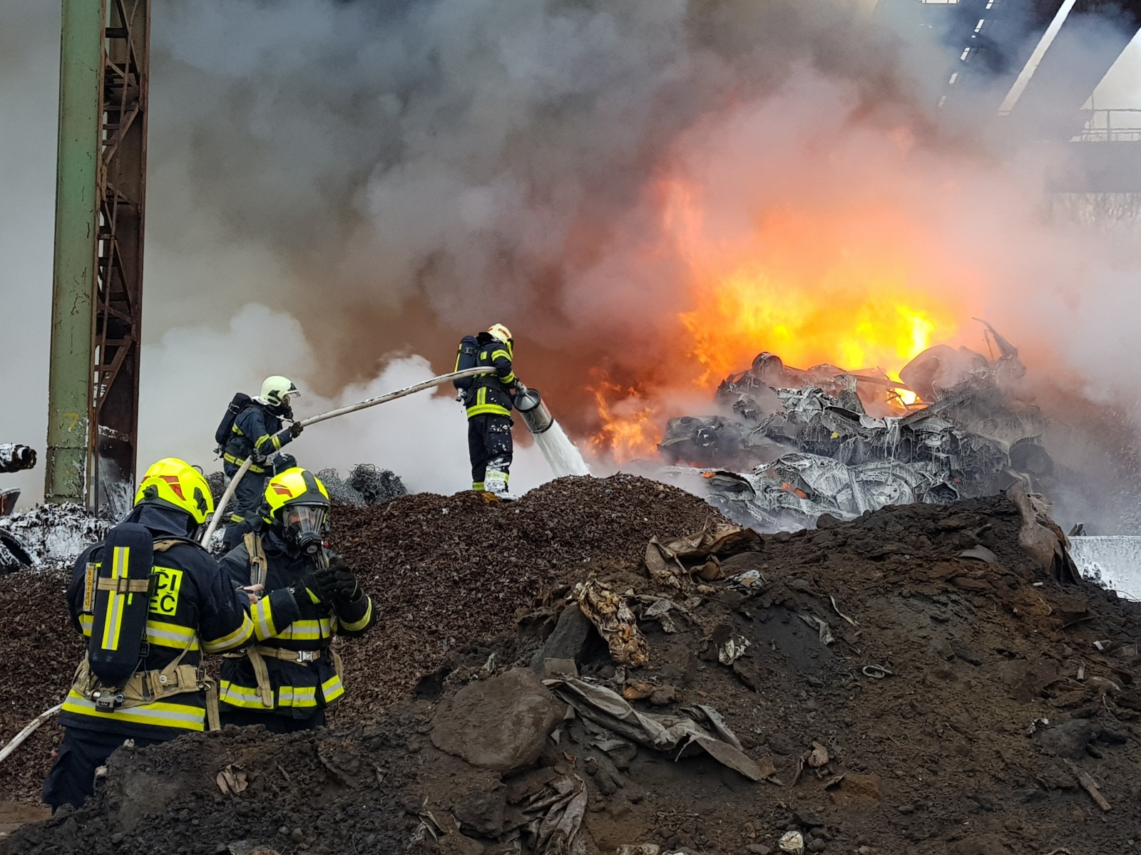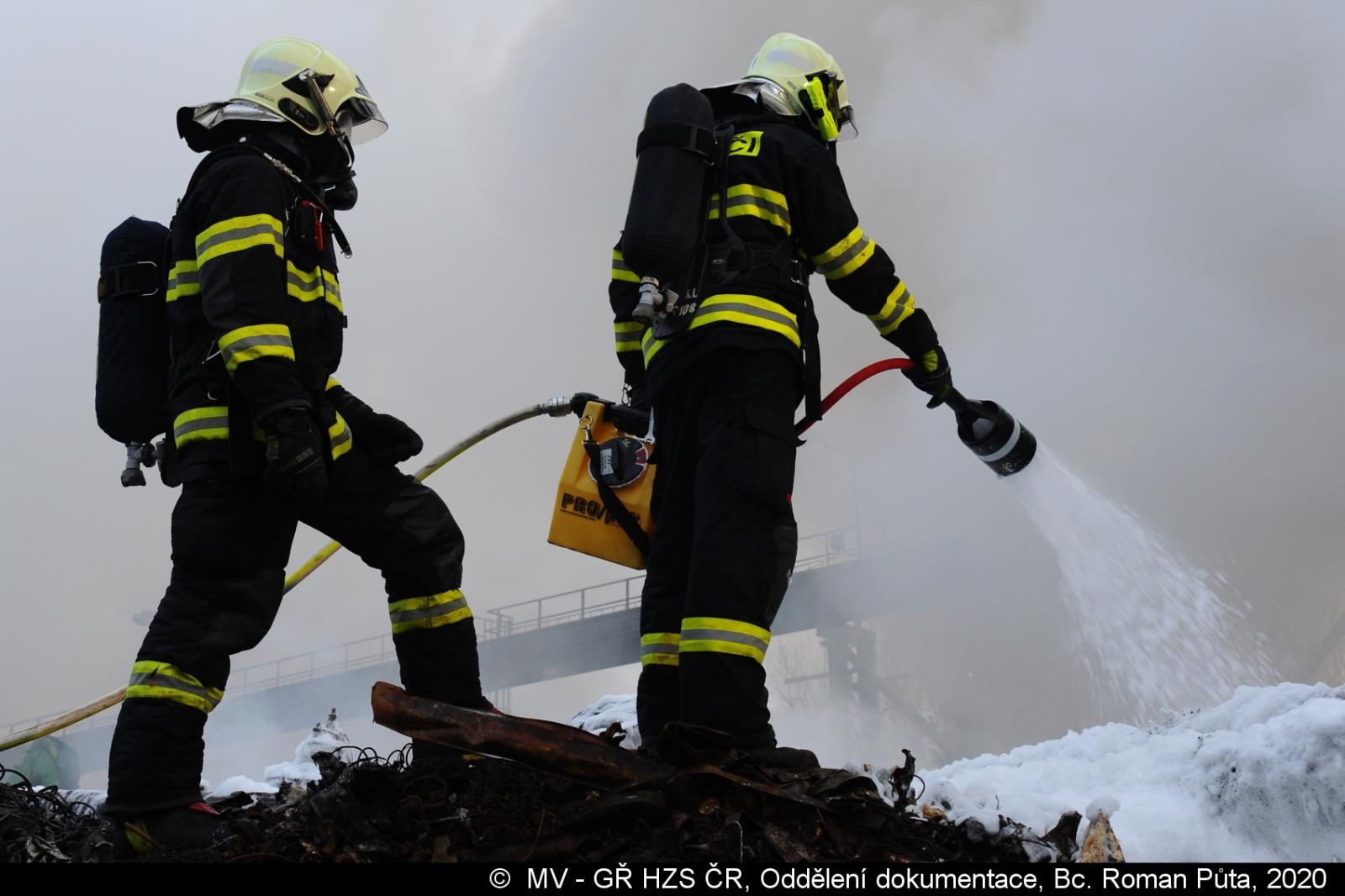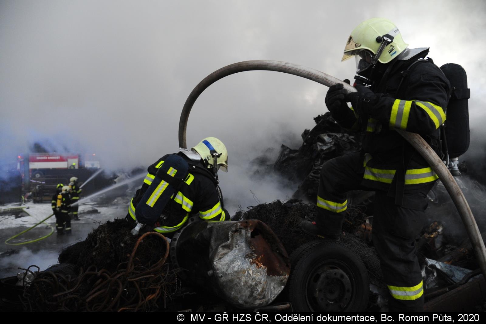 Video: Požár autovraků v kovošrotu Kladno 14. února 2020