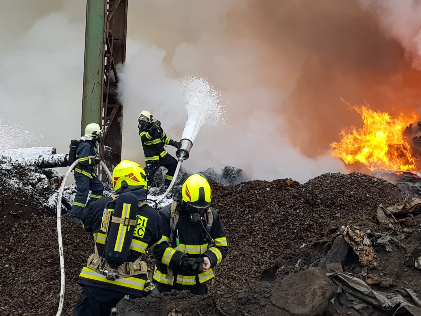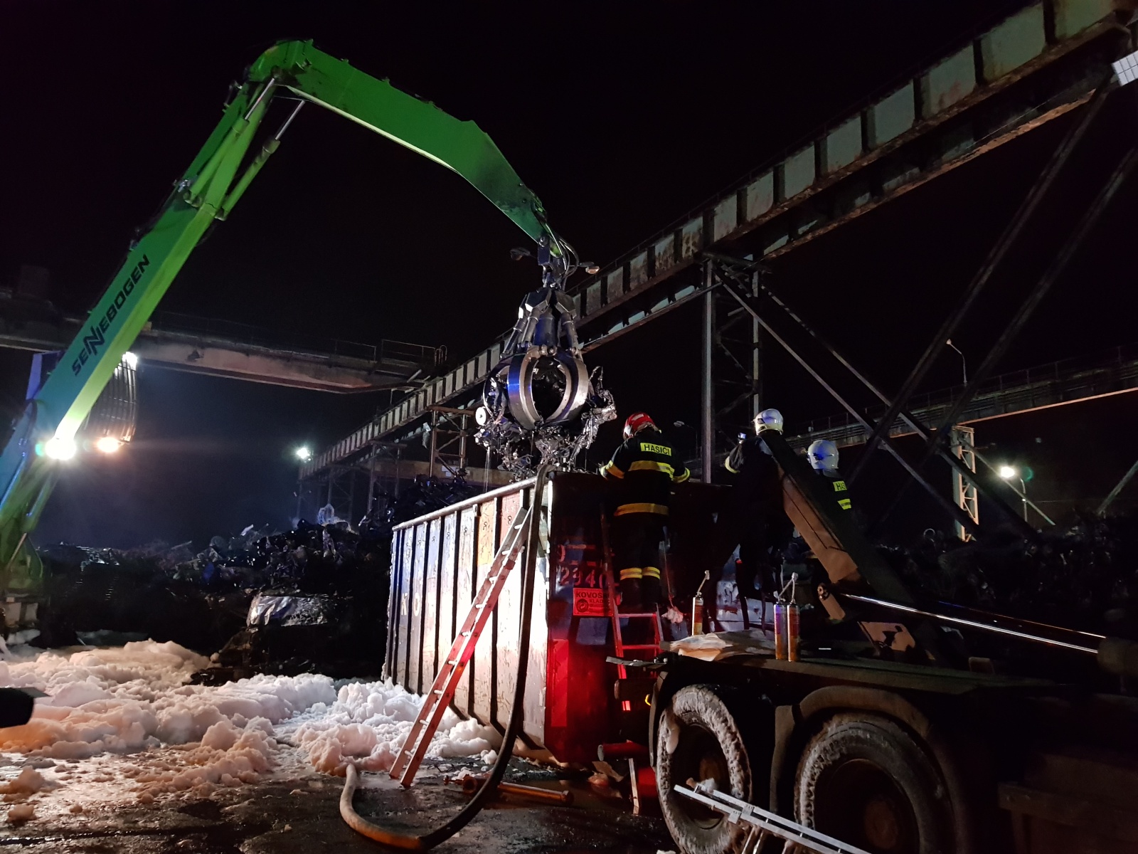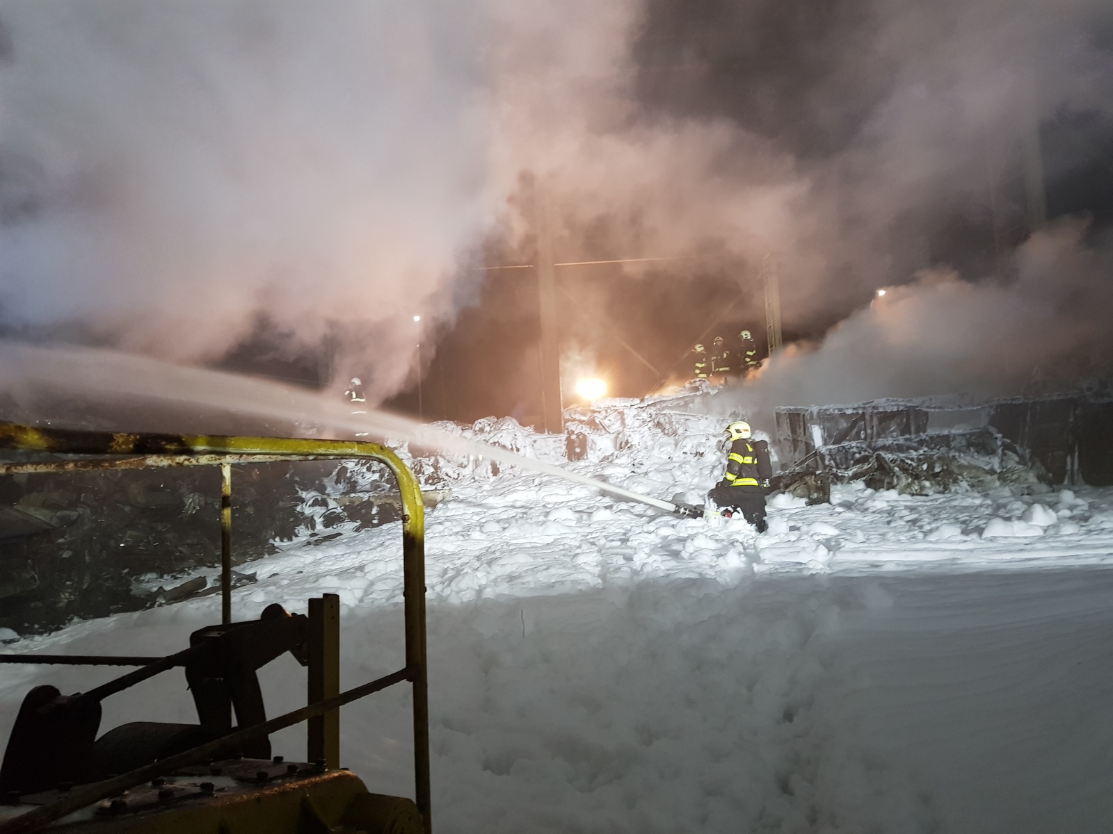 V místě zásahu byl problém s dodávkou hasební vody, proto byl povolán větší počet jednotek. Vodu tak bylo nutné dovážet kyvadlově z hydrantů v Kladně. Postupně tak byl vyhlášen druhý a poté třetí stupeň požárního poplachu.