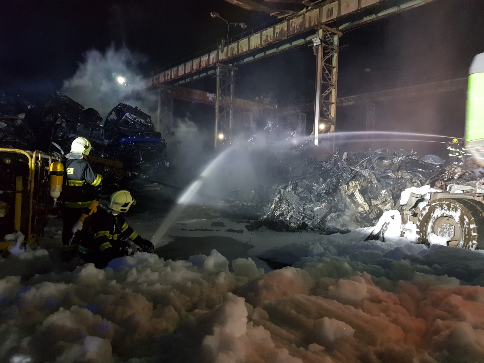 Po příjezdu na místo bylo zjištěno, že autovraky určené k sešrotování jsou naskládány na hromadě o přibližných rozměrech 60x30 metrů a výšce přes tři metry. Požár zasáhl celou hromadu, ve které bylo podle vyjádření zástupce majitele asi 80 vraků. Hasiči se snažili dostat oheň pod kontrolu za pomoci sedmi C proudů s těžkou pěnou.