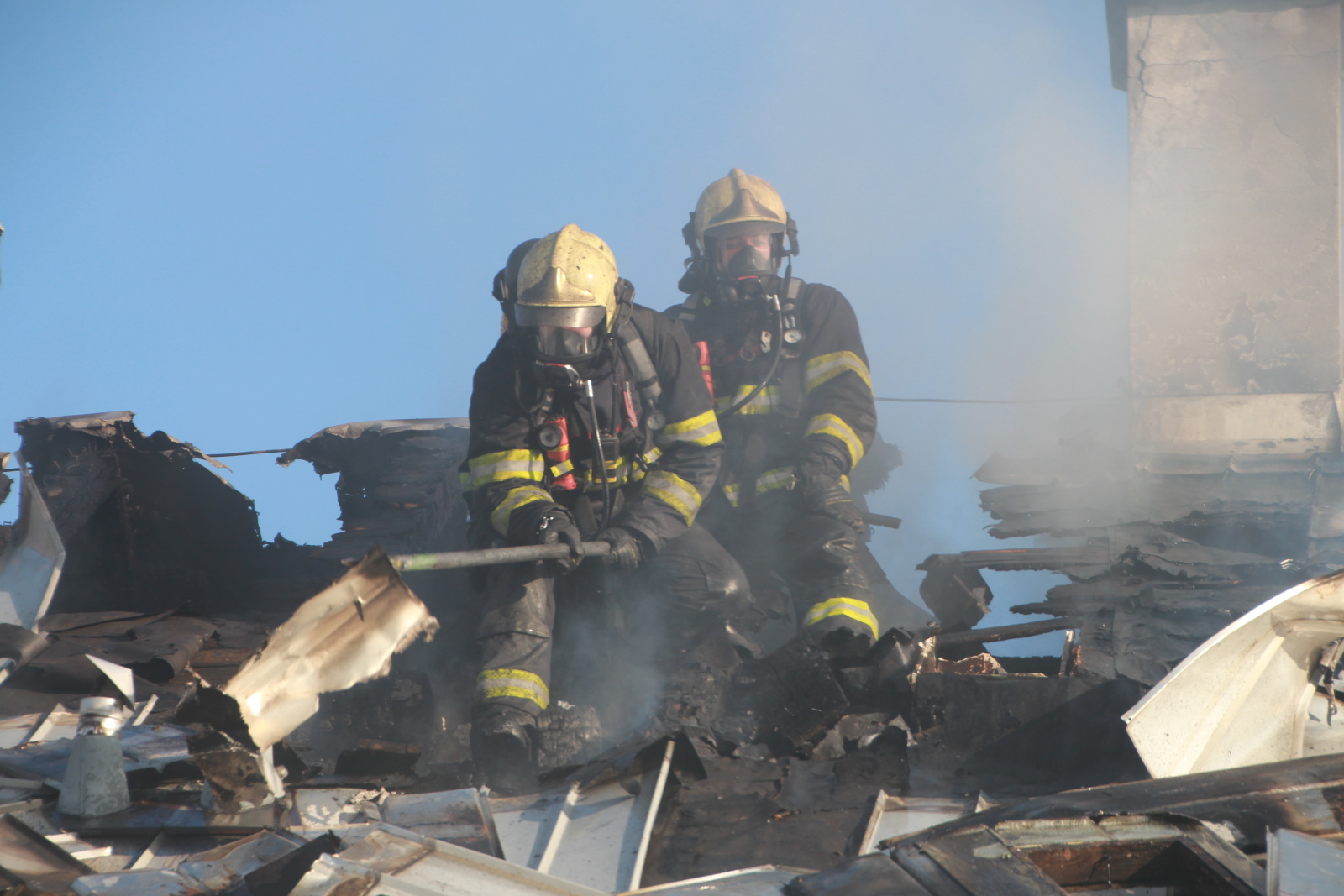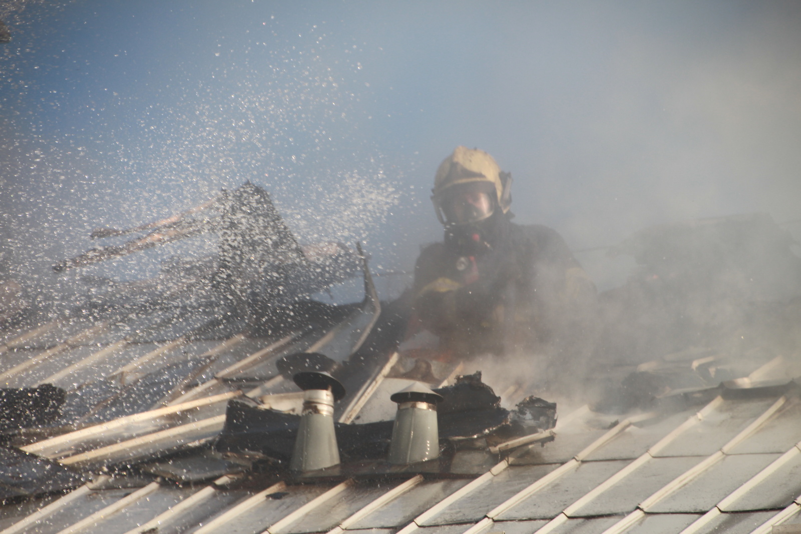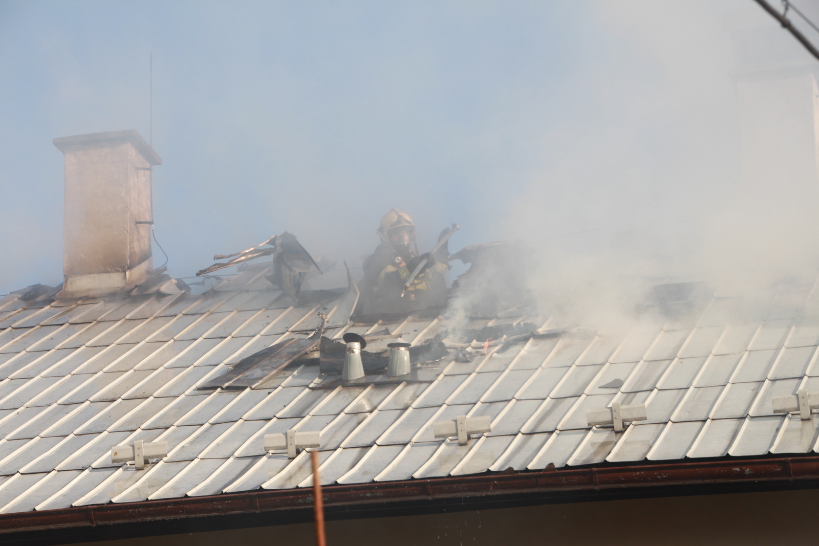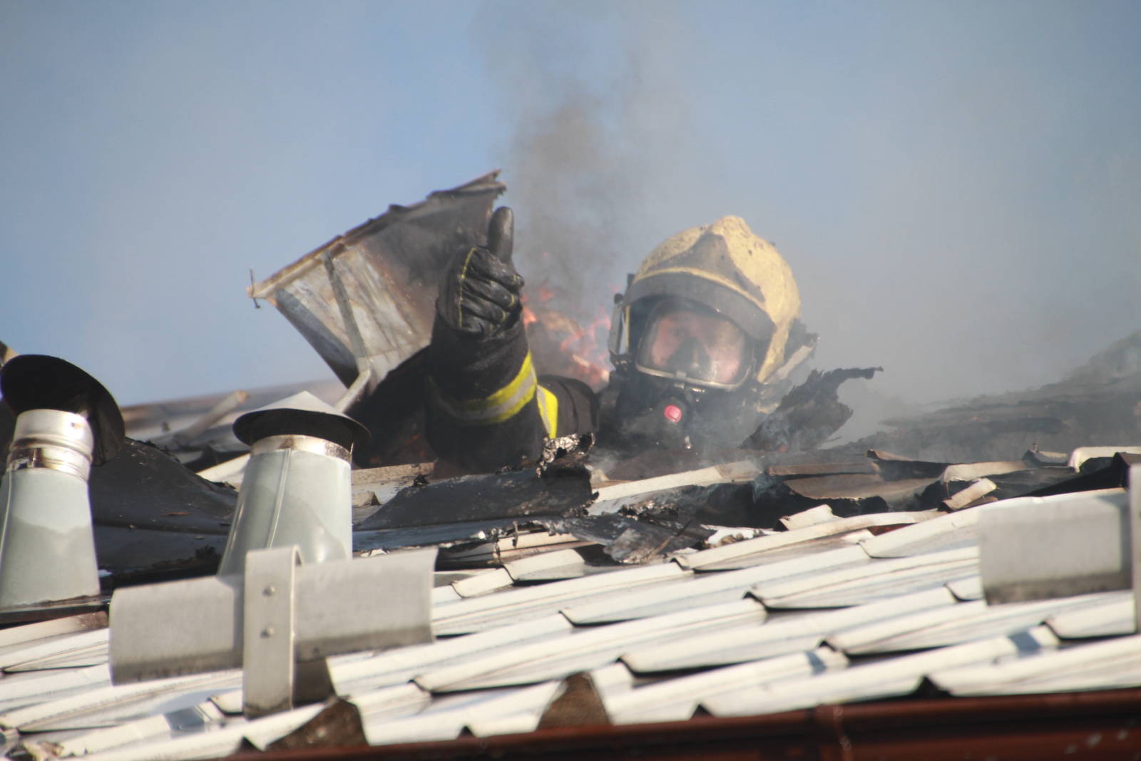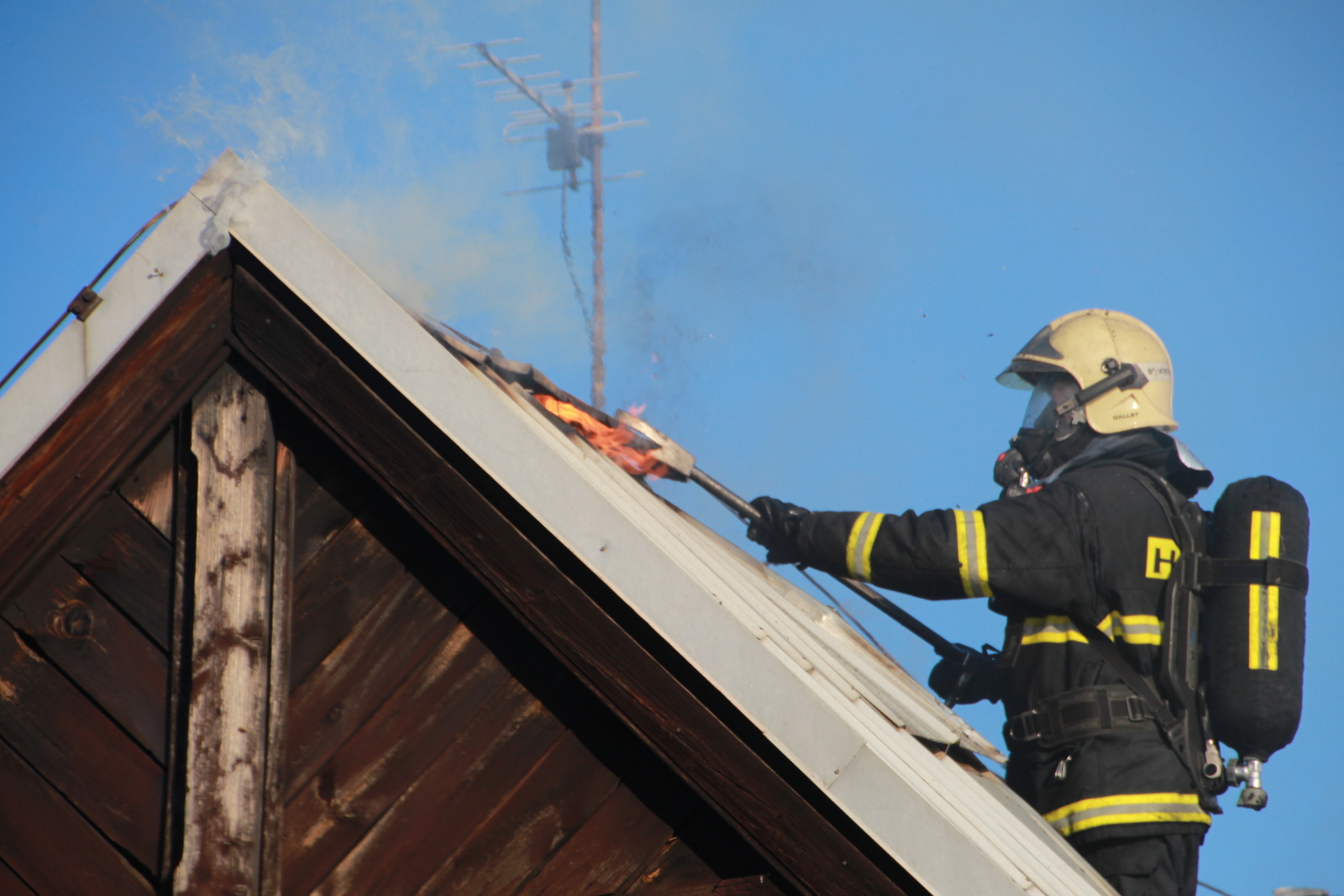 ventilace. Hasiči z domu vynesli jednu propanbutanovou láhev. Vzhledem k nemožnosti nasadit výškovou techniku z důvodu špatné příjezdové cesty využili hasiči nastavovací žebříky. Po lokalizaci na hasiče čekal úkol nejtěžší, a to dohašování skrytých ohnisek a postupné rozebrání plechové krytiny střechy.