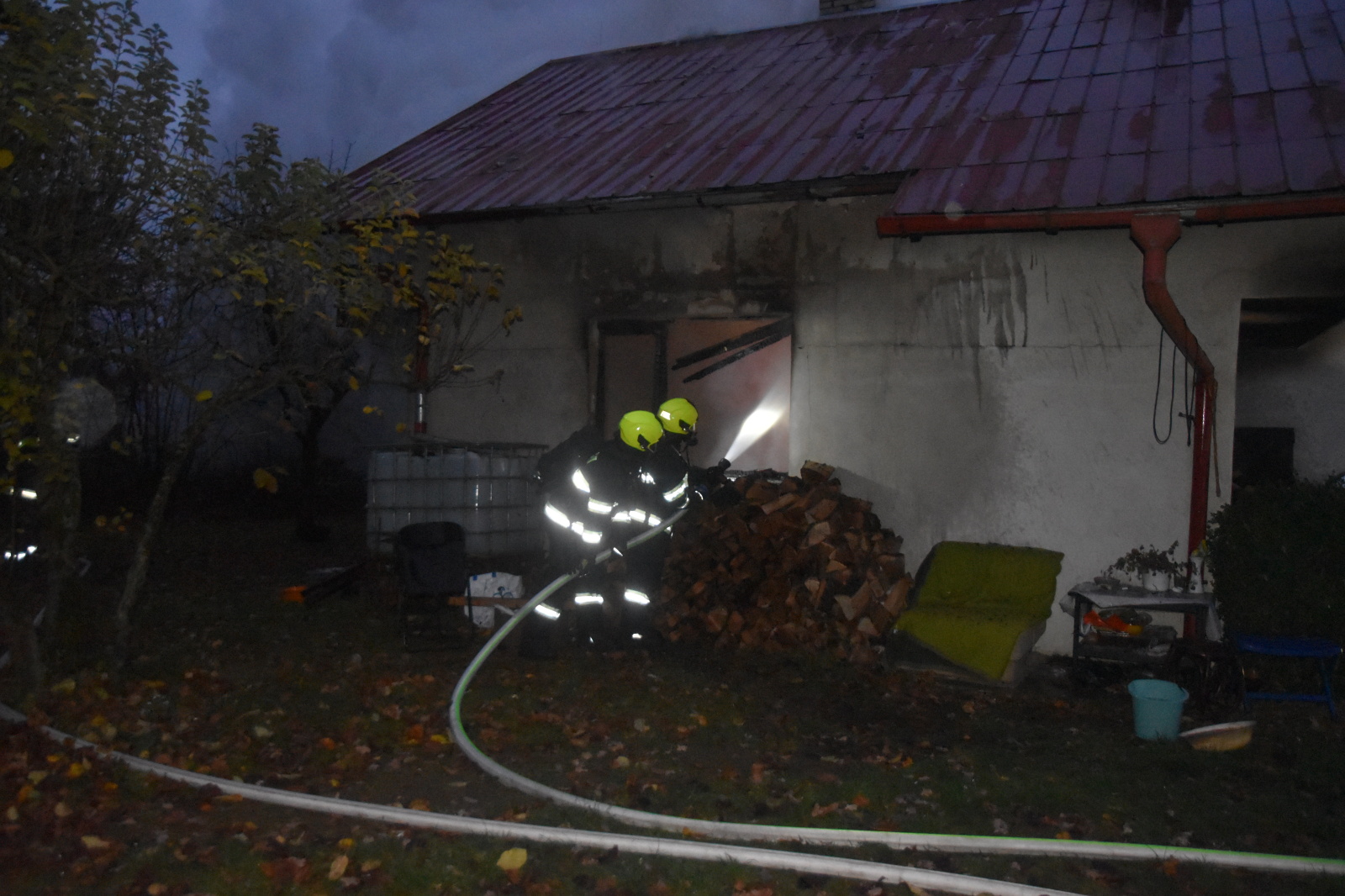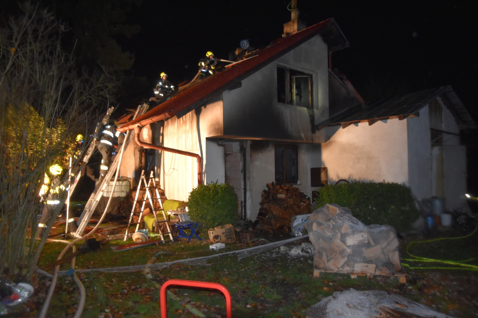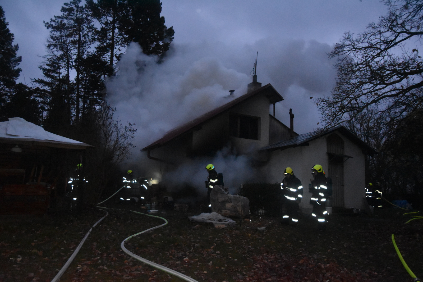 Po příjezdu první jednotky a rychlém průzkumu bylo potvrzeno, že zděný rekreační objekt je celý zasažen požárem. Popálená osoba, která se nadýchala i kouře, byla po dojezdu posádky zdravotnické záchranné služby předána do její péče.
