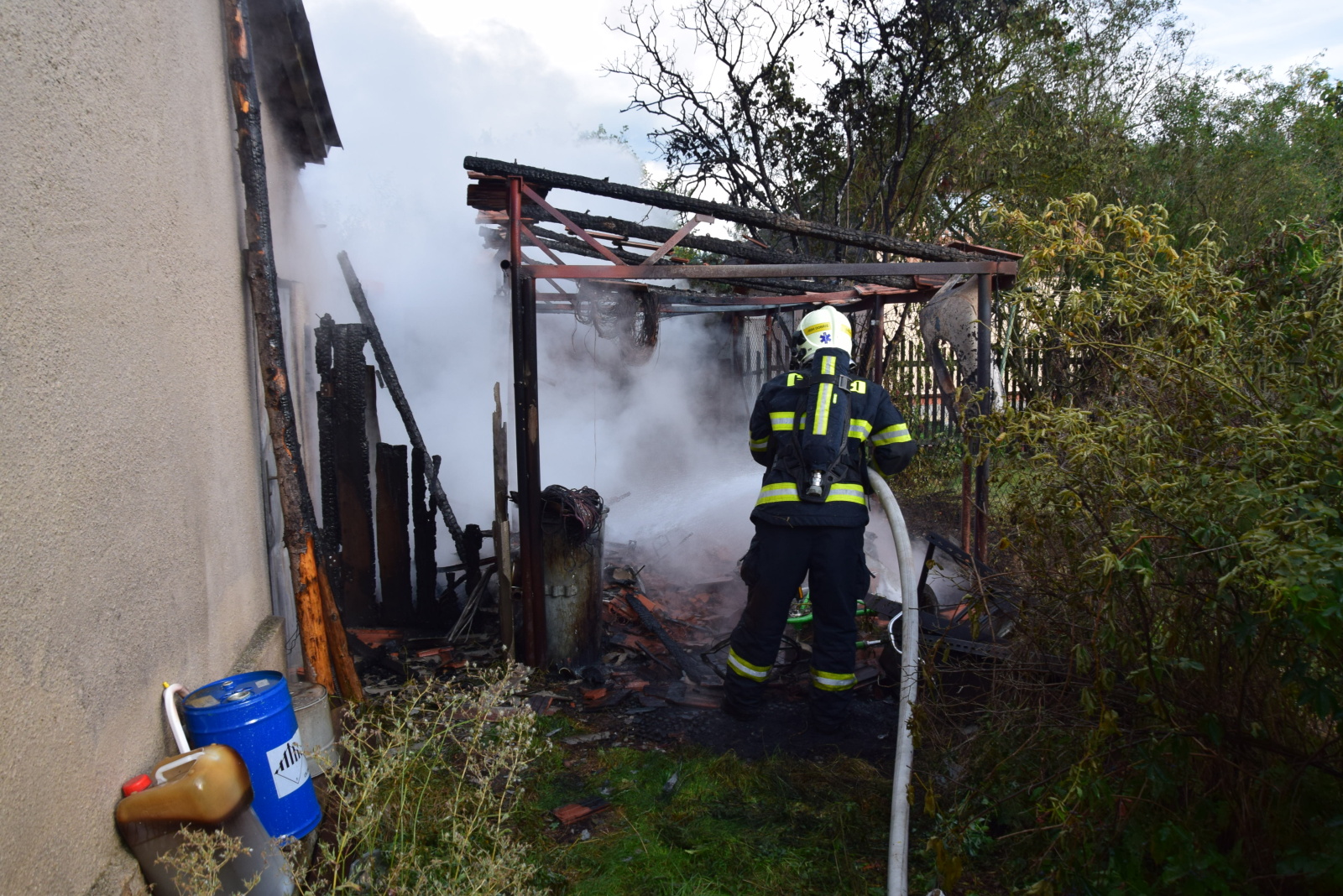 První jednotka dorazila na místo za devět minut od ohlášení události. Průzkumem bylo zjištěno, že požárem je zasažen hospodářský přístavek rodinného domu s navazující garáží a dílnou, ze které se ozývaly menší výbuchy, zřejmě od uskladněných barev, ředidel a dalších materiálů. Pro zasahující hasiče hrozilo nebezpečí hlavně v podobě pěti tlakových lahví s propan-butanem, které se jim však podařilo včas vynést a spolu s nalezeným kanystrem s olejem ochlazovat.