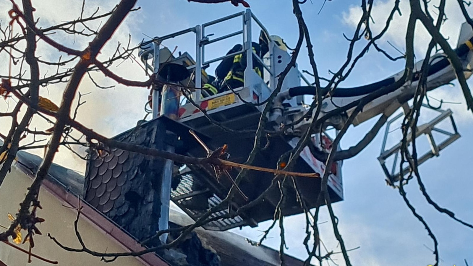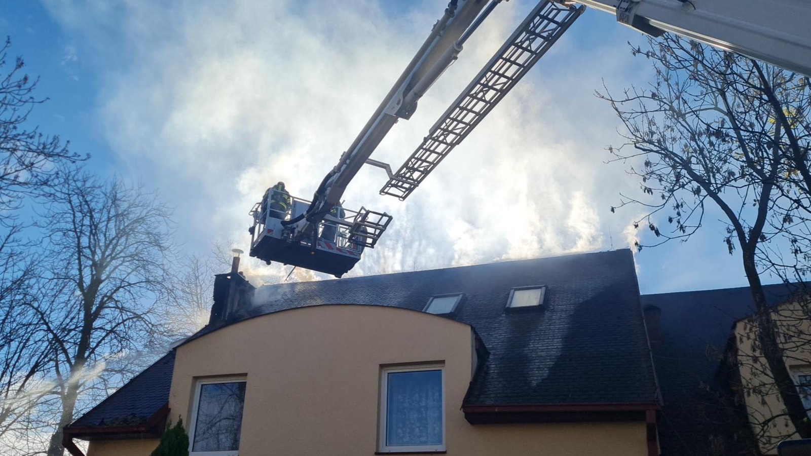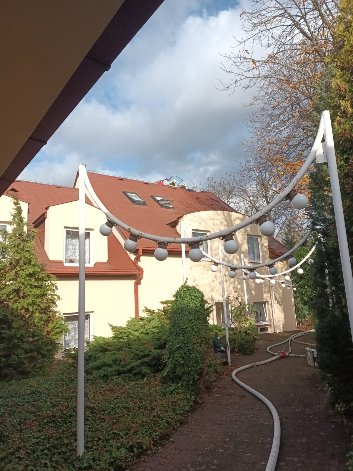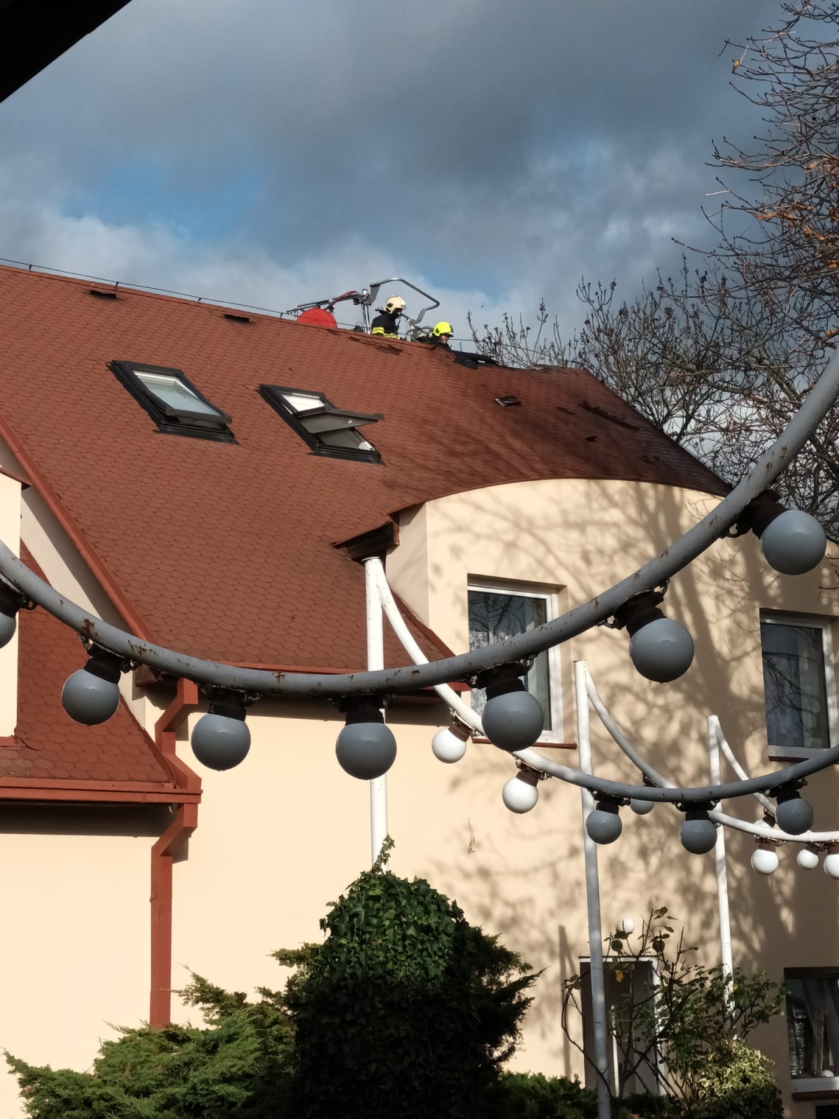 Při dalším průzkumu bylo zjištěno, že se požár rozšířil i do půdního prostoru. Hasiči proto začali rozebírat střešní krytinu, aby se dostali ke konstrukci krovu, kudy plameny postupovaly. Na chodbě sanatoria u vstupního prostoru bylo mezitím shromážděno dvacet osob včetně sedmi imobilních. Nikdo nebyl zraněn ani se nenadýchal kouře.
