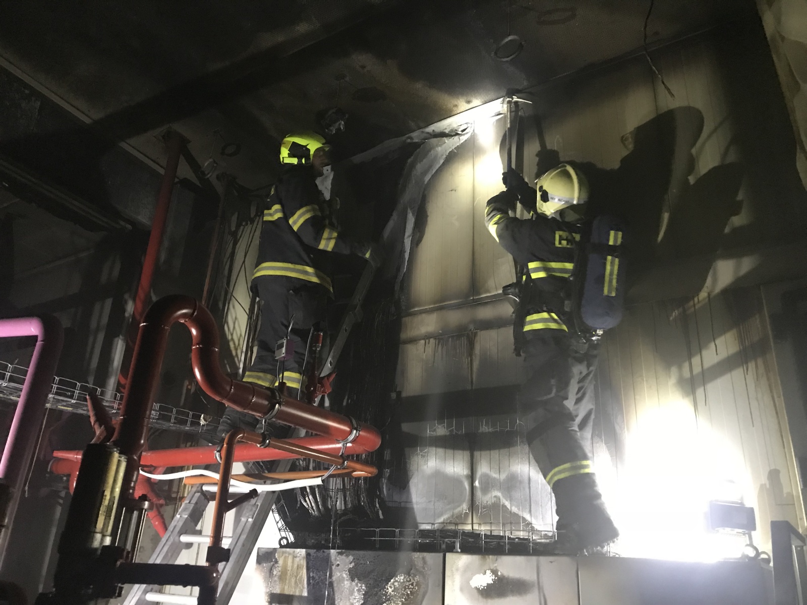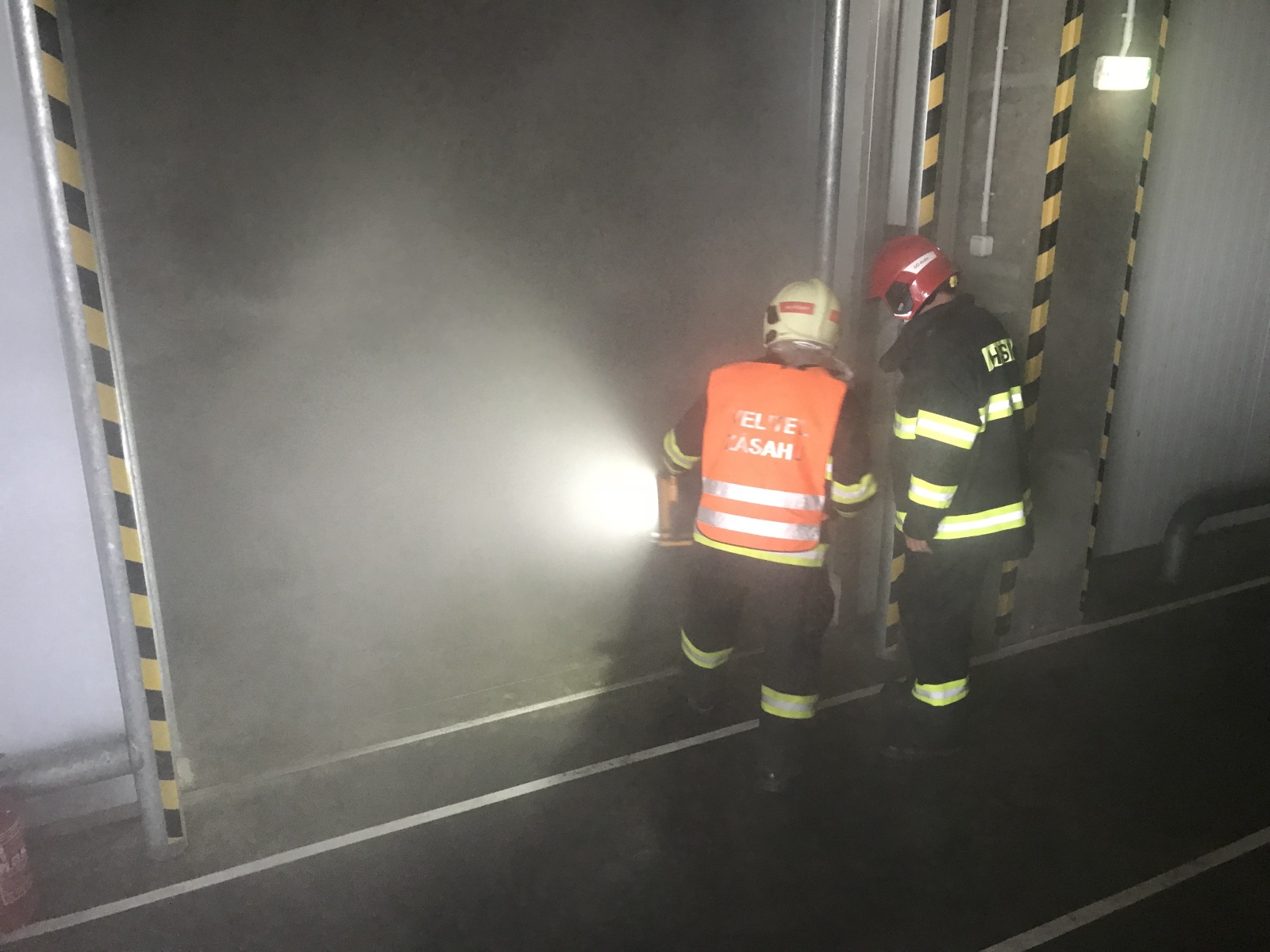 silně zakouřená a požár se šíří z prvního patra, kde je elektrorozvodná místnost. Ještě před příjezdem hasičů se požár pokoušeli likvidovat sami majitelé a zaměstnanci pomocí hasicích přístrojů. Vzhledem k velkému výskytu kouře se dva z nich nadýchali zplodin hoření a museli být prohlédnuti a ošetřeni přivolanou posádkou zdravotnické záchranné služby.