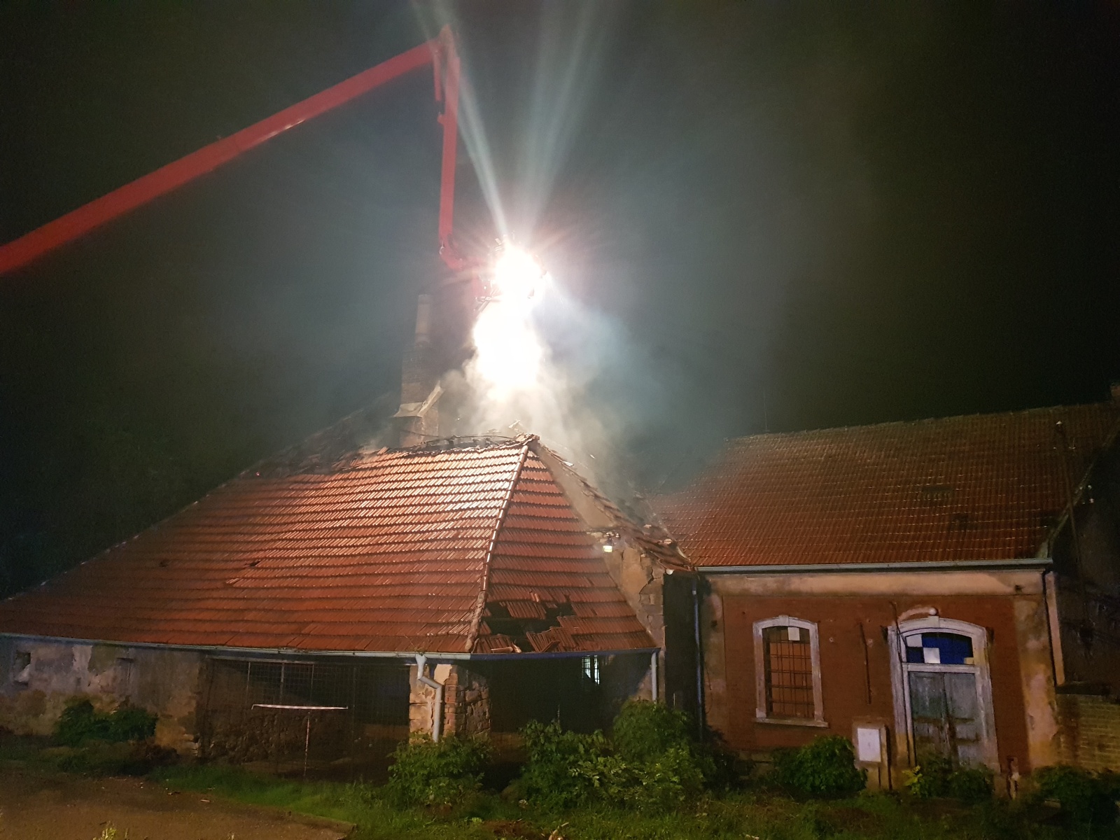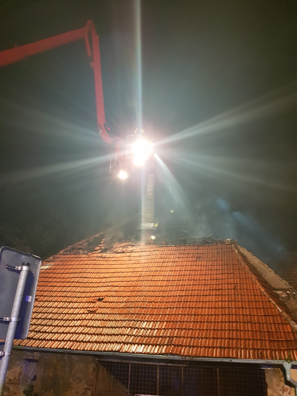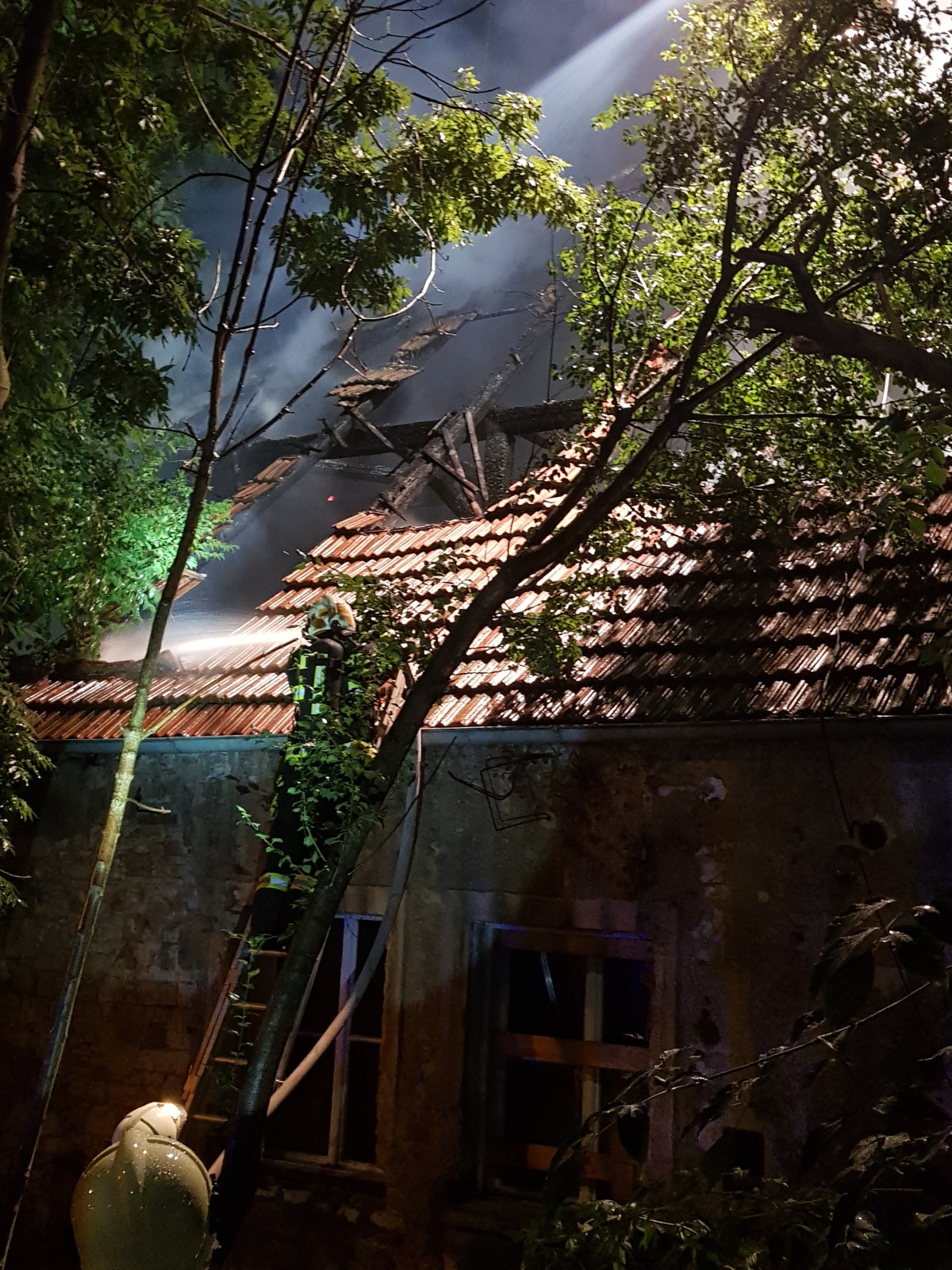 Střecha budovy o půdorysu 10x15 metrů byla ohněm zasažena přibližně z poloviny. Objekt je dlouhodobě neobydlený, ale přebývají v něm lidé bez domova, kteří se zde nacházeli i tentokrát. Jednu lehce popálenou osobu si převzala do péče zdravotnická záchranná služba. Hasiči zasahovali pěti vodními C proudy, z toho jedním z výškové techniky. Po uhašení plamenného hoření se jednotky zaměřily na rozebírání střešní konstrukce a vyhledávání skrytých ohnisek za pomoci termokamery s následným dohašováním.