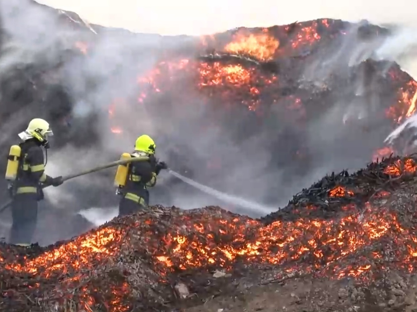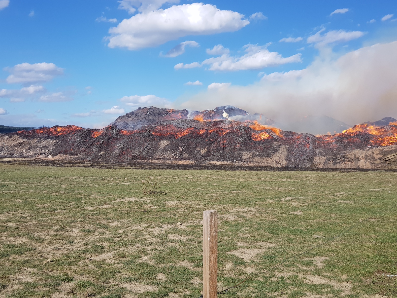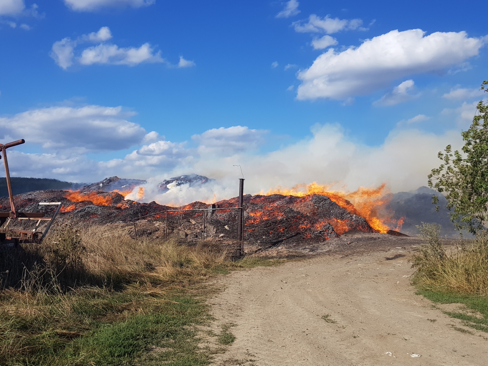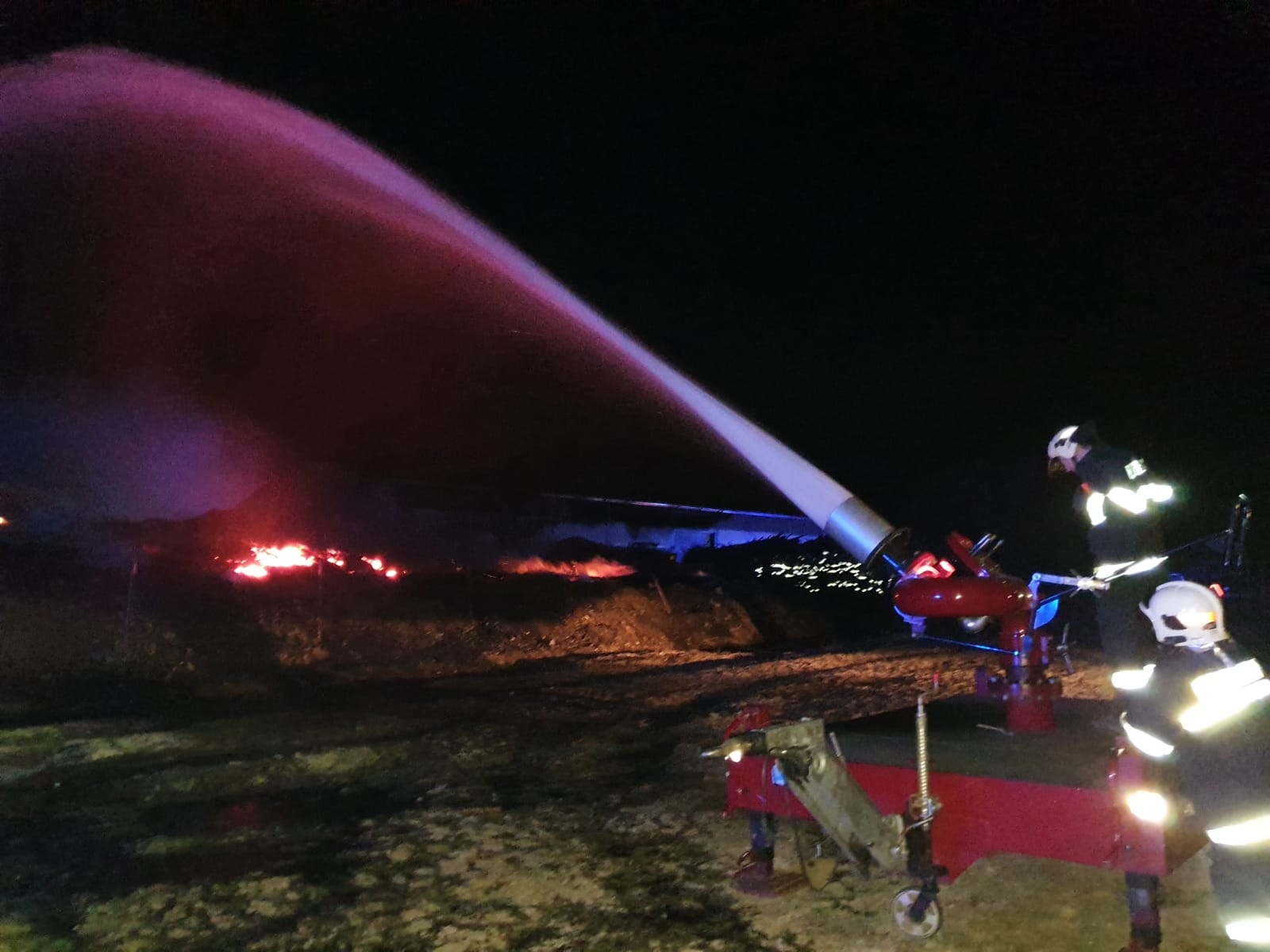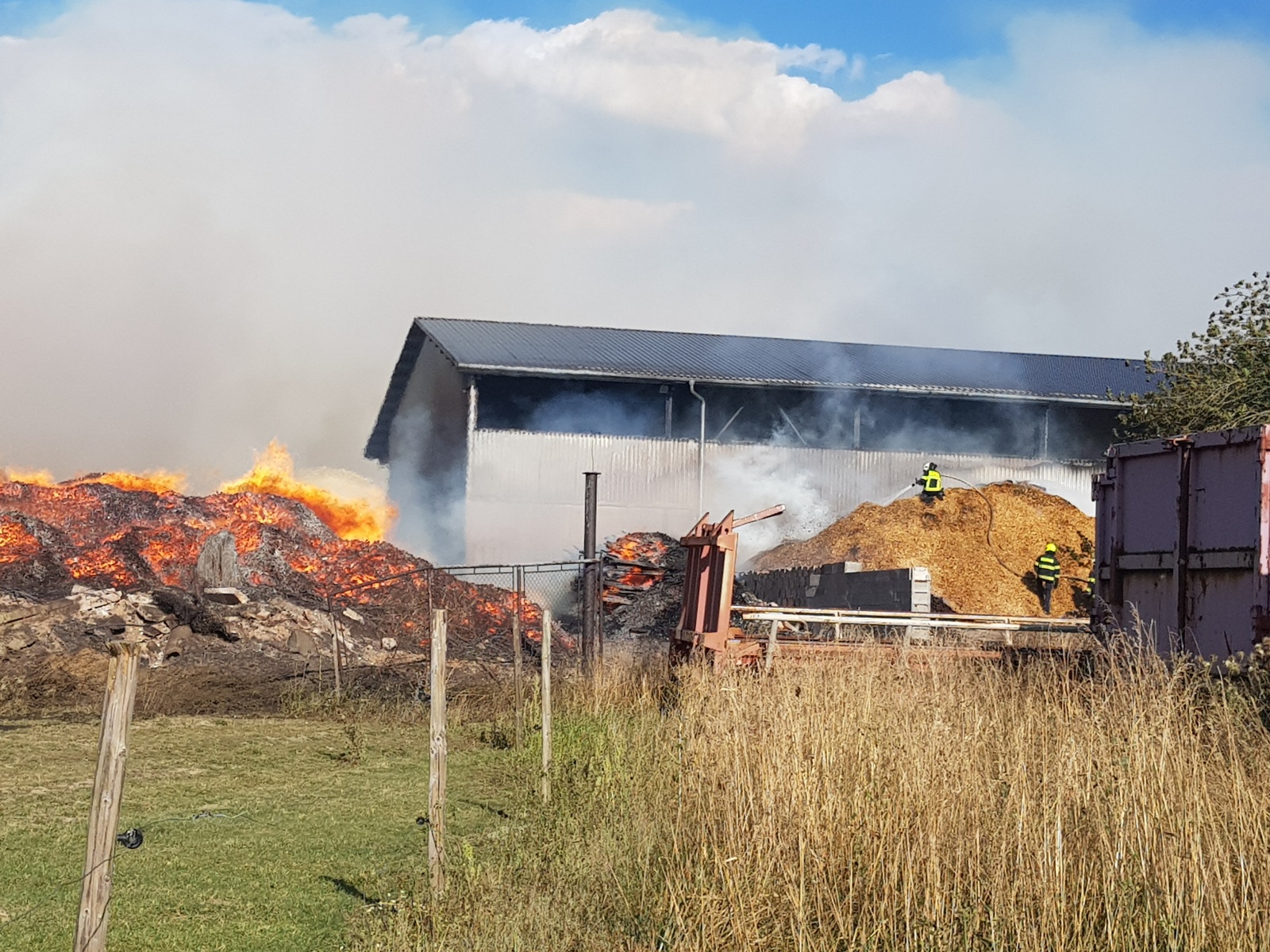 Operační důstojník k události vyslal profesionální hasiče ze stanice Příbram a jednotky sboru dobrovolných hasičů obcí Březnice a Rožmitál pod Třemšínem. Po příjezdu na místo velitel zásahu upřesnil, že se požár vlivem velice silného větru neustále rozšiřuje a kromě veliké hromady štěpky hoří i balíky slámy. Celková plocha požáru tak měla rozlohu fotbalového hřiště. Plameny už začaly ohrožovat i přilehlé objekty, ve kterých je ustájen skot, a také drůbežárnu.