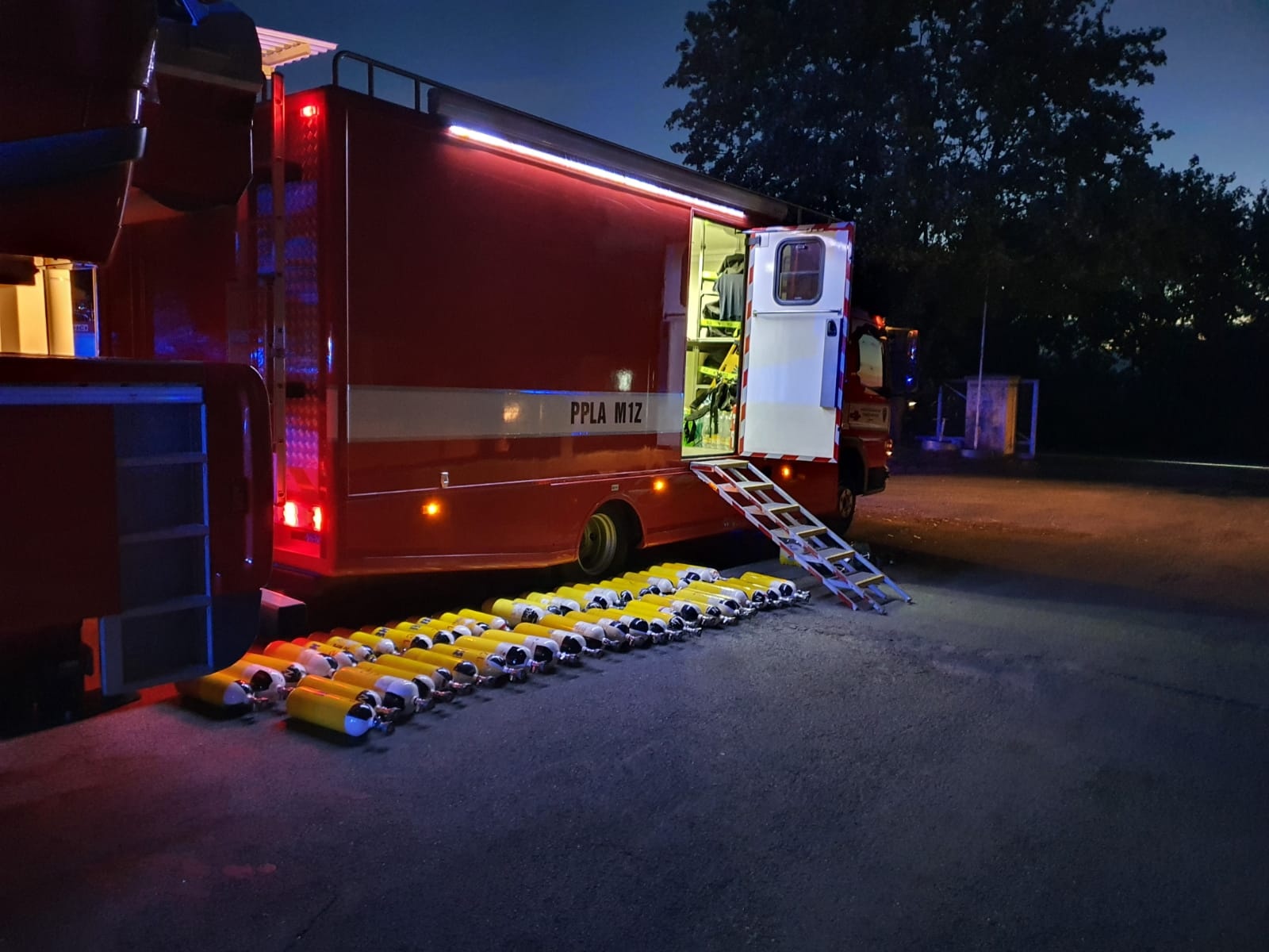 Kolem 20. hodiny byl zřízen štáb velitele zásahu a současně bylo rozhodnuto o nasazení velkokapacitního čerpadla Somati, které je schopné dálkovým vedením dopravit do hasicího monitoru Ambasador 4000 litrů vody za minutu. Zároveň byla povolána speciální těžká technika ze Záchranného útvaru HZS ČR – rypadlo CAT 336F, UDS Tatra 815-7 a velkokapacitní cisternová stříkačka Titan CV 40 – T 815-7 10x10.1 s nádrží na 21 000 litrů vody. Díky nasazení této techniky a také ustávajícímu větru se podařilo požár dostat pod kontrolu a po třetí hodině lokalizovat.