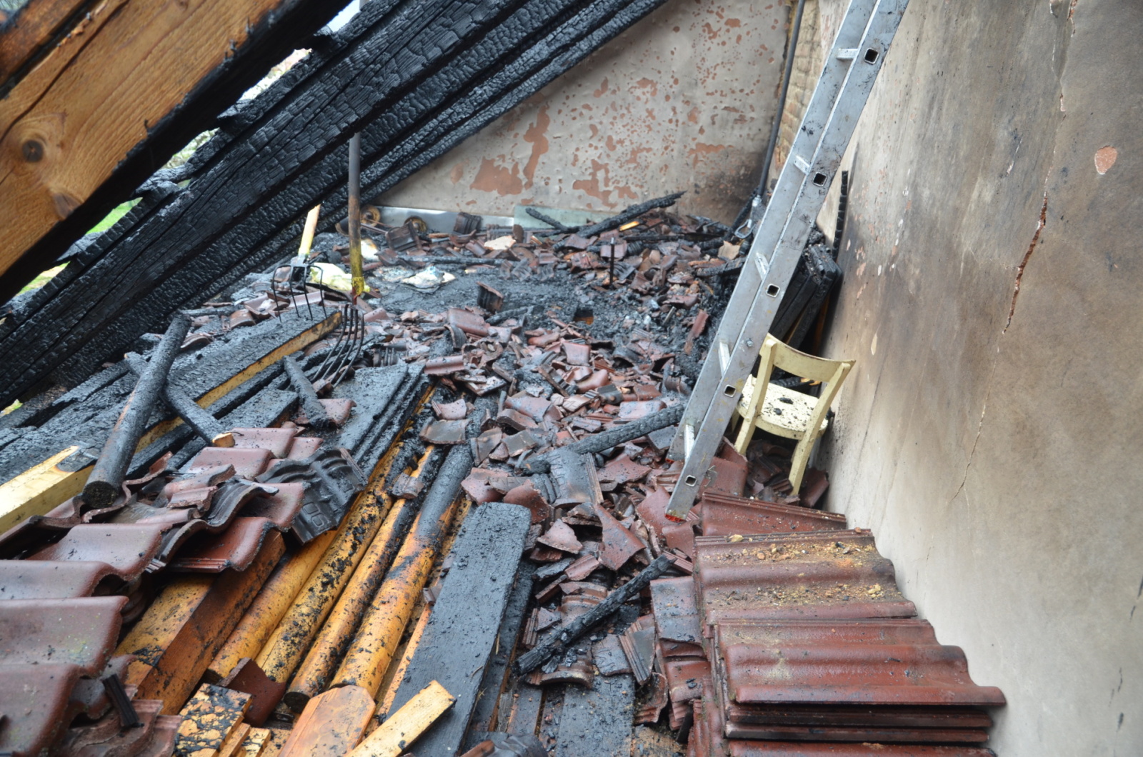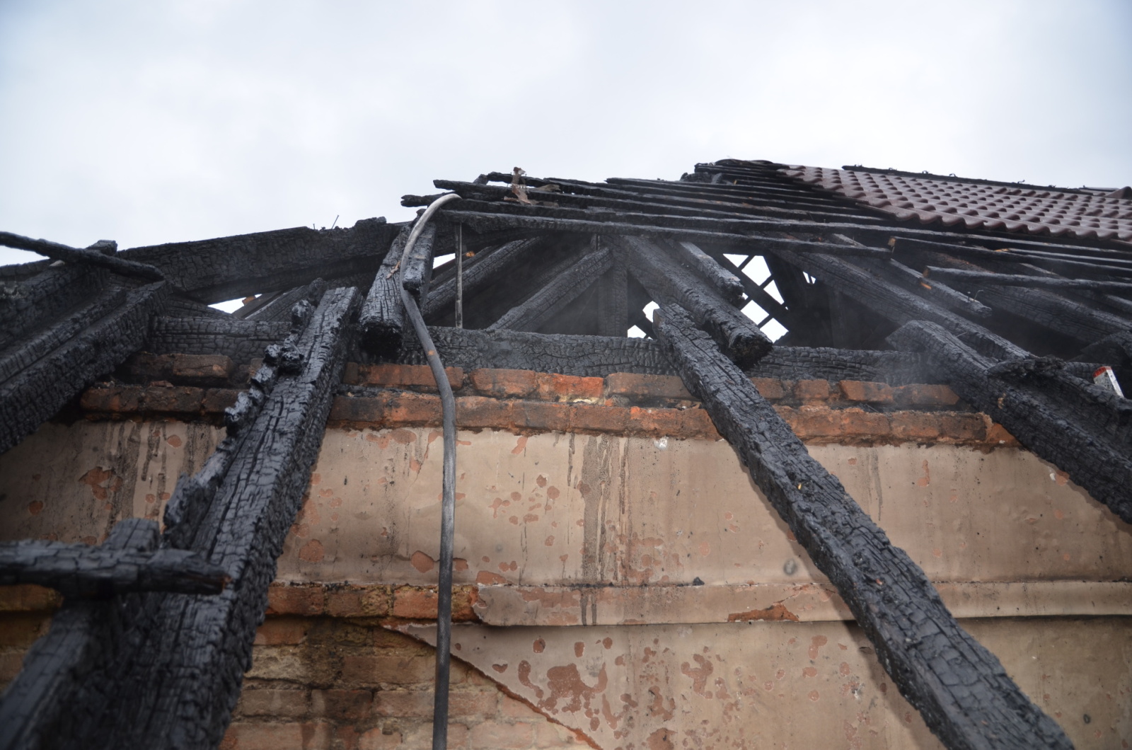 Průzkumem hasiči zjistili částečně rozvinutý požár střešní konstrukce a dřevěného seníku. Hasební zásah, v jehož průběhu byla vyhledávána skrytá ohniska požáru, rozebírána střecha a prováděno dohašování, byl veden v dýchací technice dvěma proudy C a dvěma proudy D.