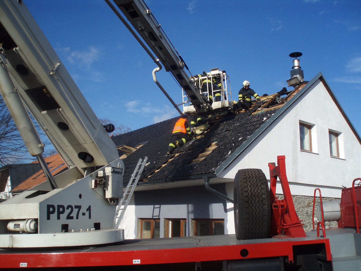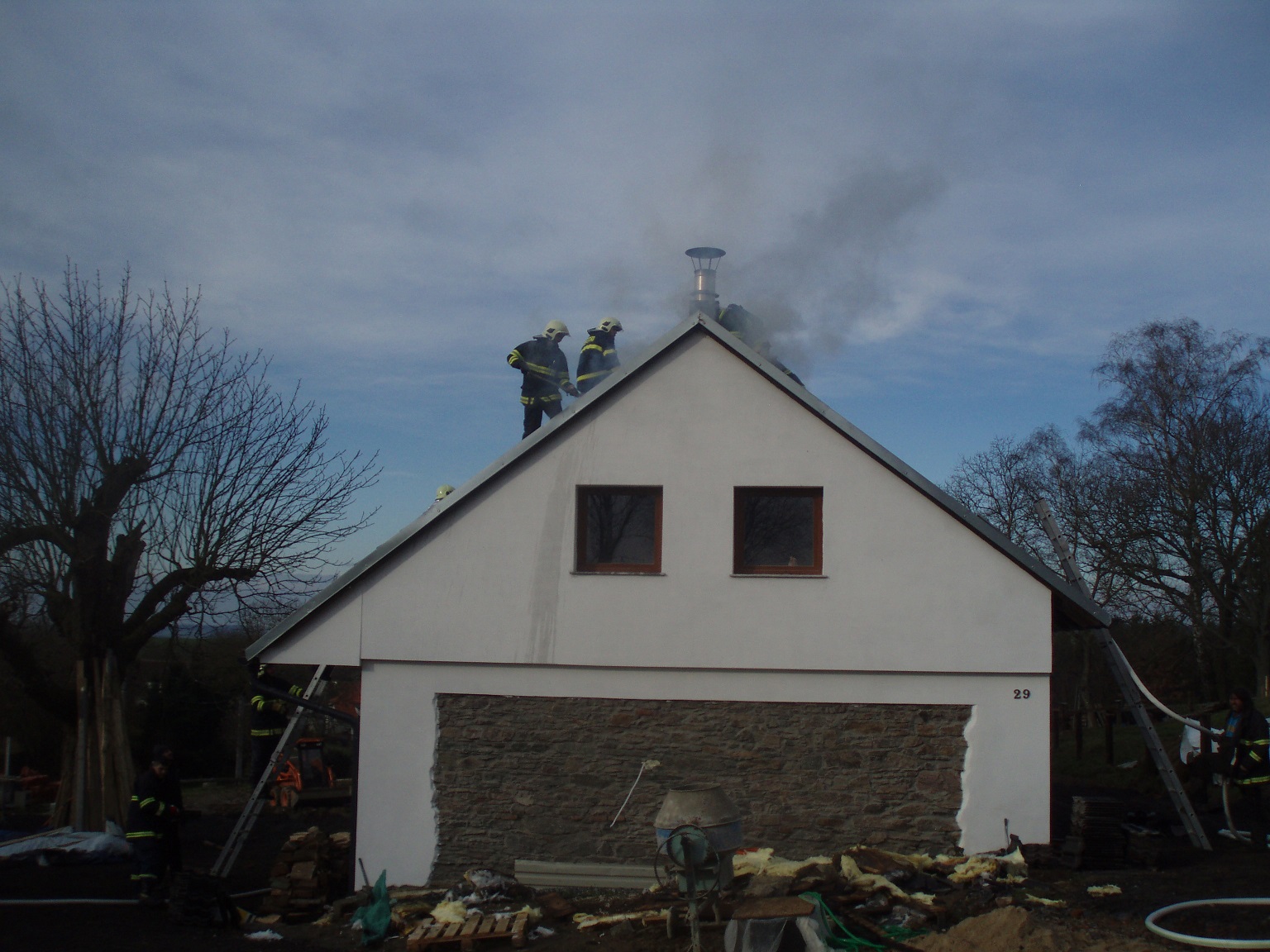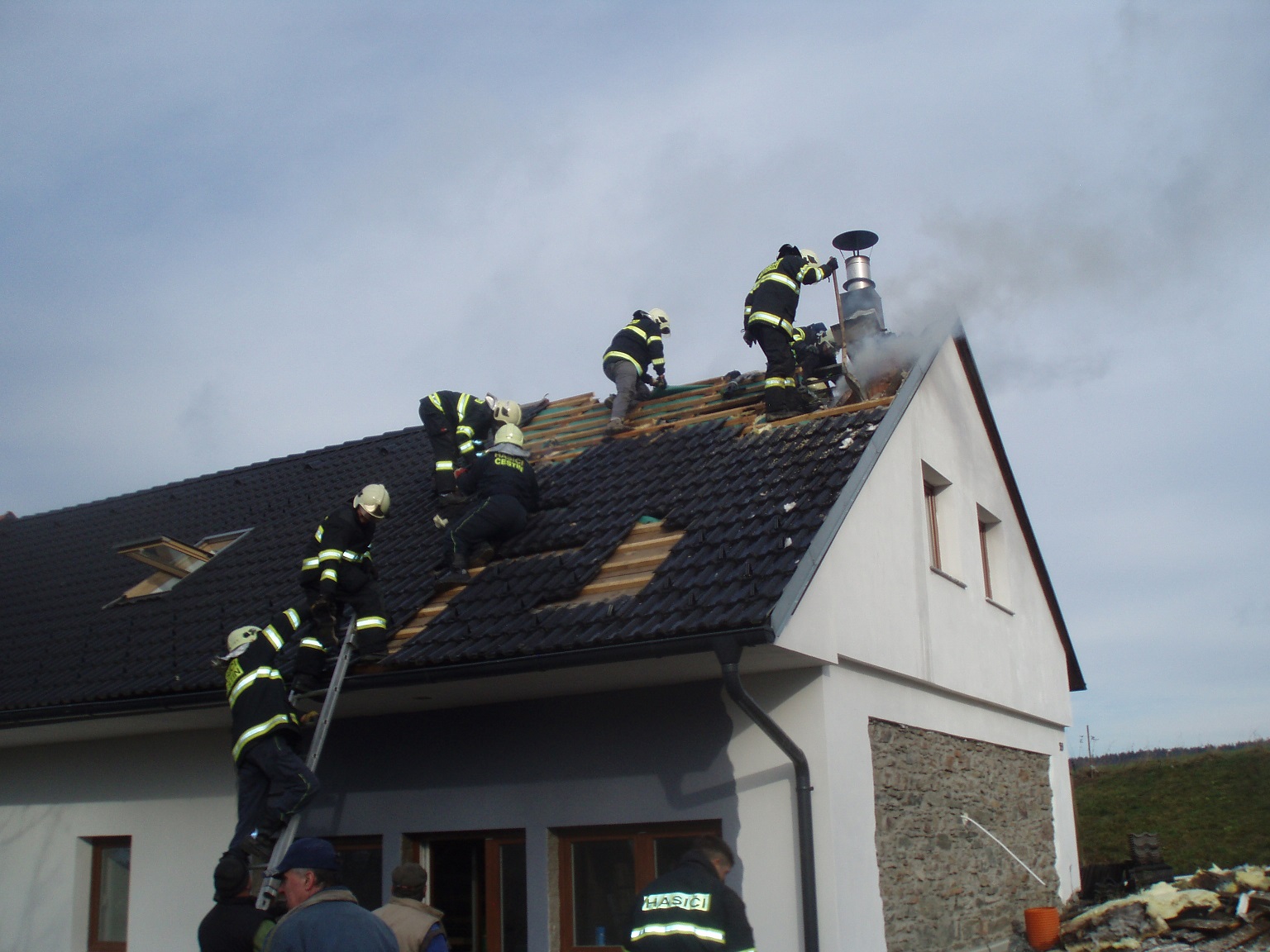 Po příjezdu na místo byl průzkumem zjištěn požár střešní konstrukce v okolí komínového tělesa. Velitel zásahu nechal na střechu nasadit jeden vodní proud a bez poškození střešní krytiny byla část střechy rozebrána. Požár se hasičům podařilo lokalizovat přesně za hodinu od jeho nahlášení, za několik dalších minut byla operačnímu středisku ohlášena i likvidace.