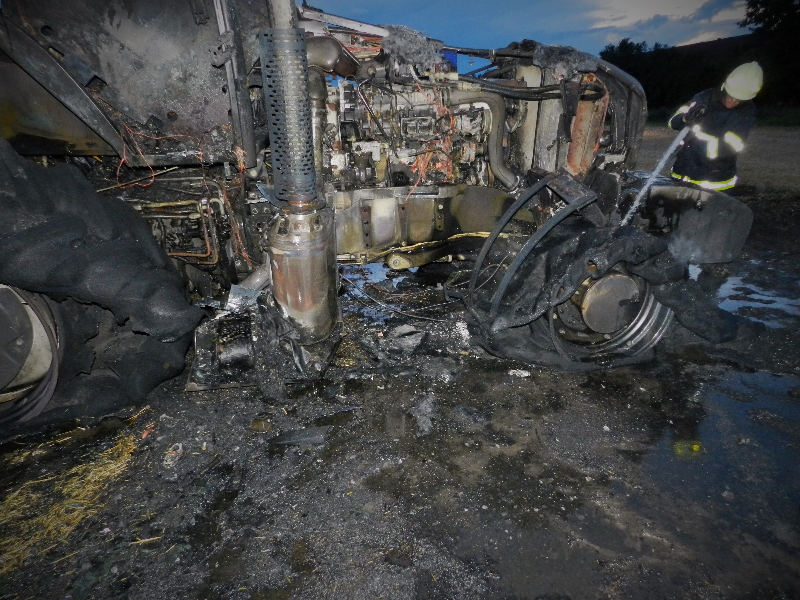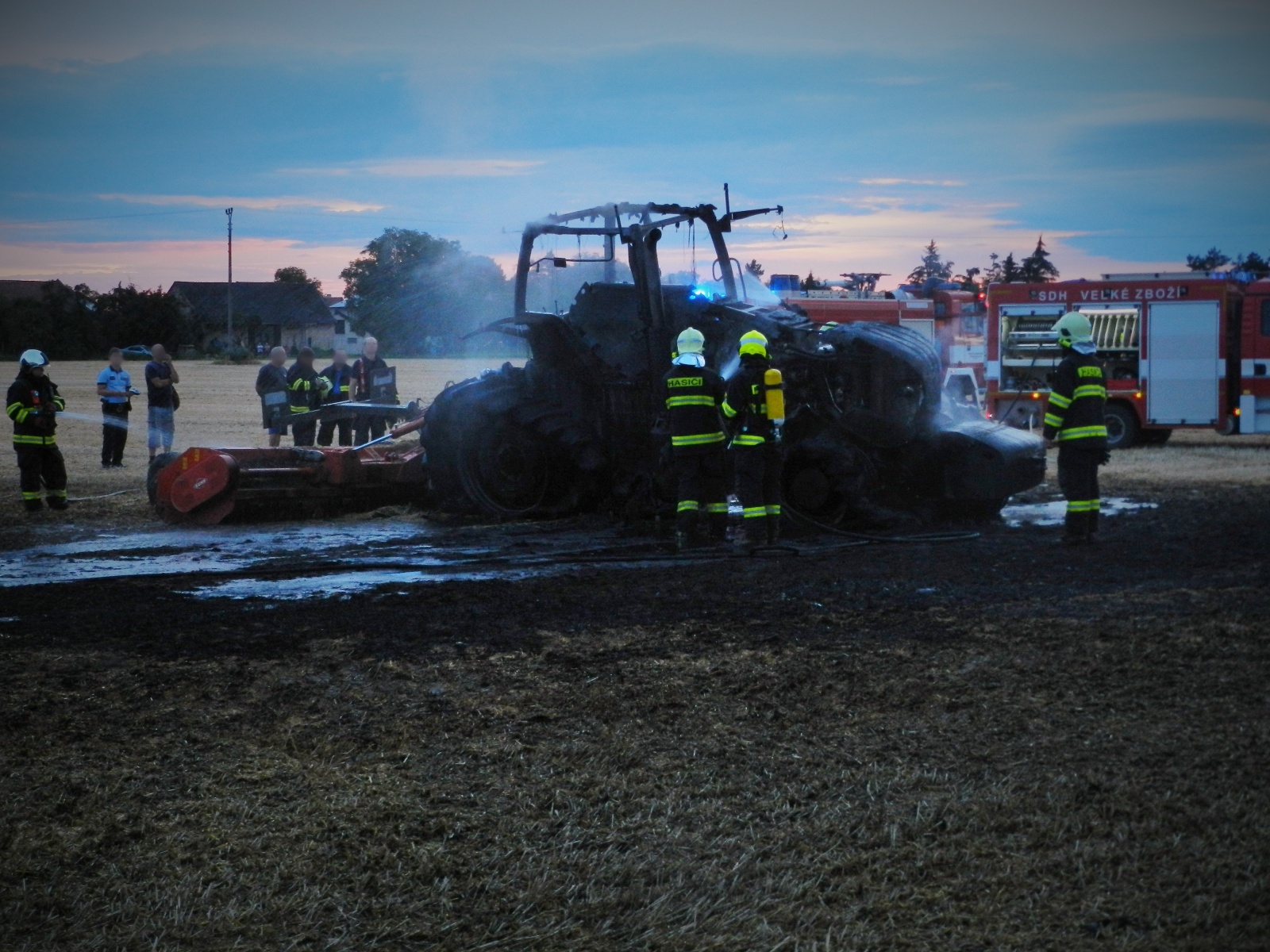 V době příjezdu první jednotky byl traktor požárem už zcela zasažen a plameny se stihly rozšířit i na strniště o přibližné ploše 10x20 metrů. Hasiči dostali požár pod kontrolu pomocí dvou vysokotlakých proudů během pár minut. Následovalo dohašování požáru a kontrola termokamerou. Majitel pole požářiště pro jistotu ještě oboral.