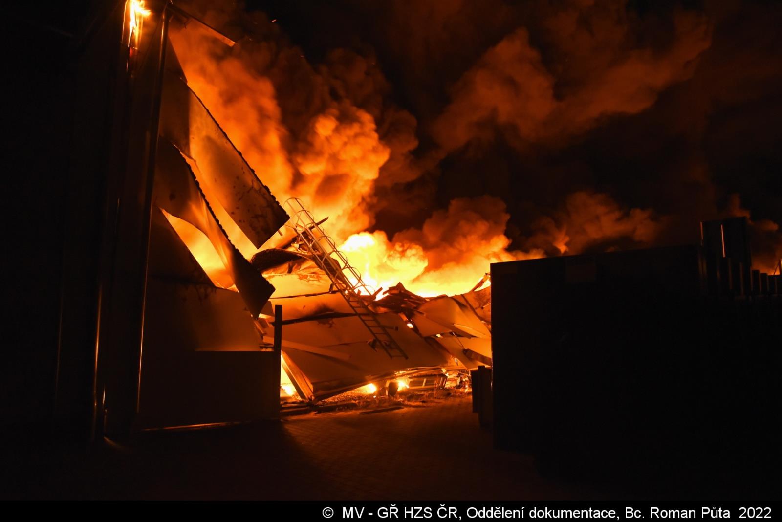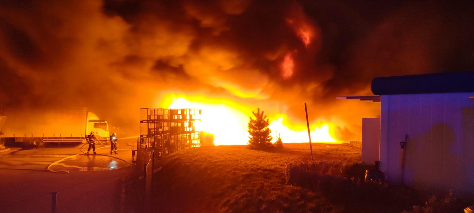 Oznamovatel při nahlášení uvedl, že požár zasáhl palety naskladněné do výšky zhruba 10 metrů. Tyto se navíc nacházely v těsném sousedství od skladovacích a výrobních hal. Než první jednotky dojely na místo, stihl se požár rozšířit na jednu z těchto hal o půdorysu 50x20 metrů. Velitel zásahu okamžitě zvedl poplachový stupeň na druhý a požádal operační středisko o vyslání dalších jednotek k události.