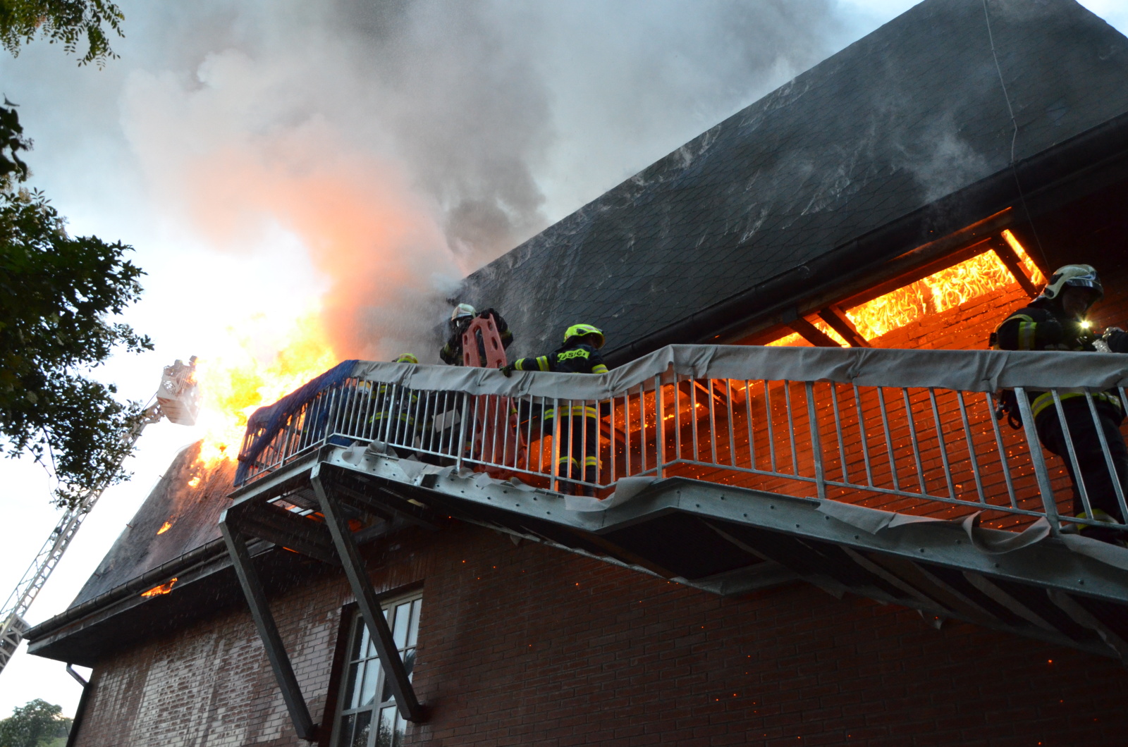 První jednotky, které dojely na místo zásahu, se zaměřily na záchranu osob, které zůstaly uvězněny uvnitř. Evakuace probíhala okny za pomoci nastavovacích žebříků ze zadní části budovy, protože veškeré vnitřní prostory byly silně zakouřeny. Zároveň probíhal hasební zásah z vnějšku budovy za pomoci výškové techniky. V 19:40 nechal velitel zásahu zvýšit poplachový stupeň na třetí a povolal k požáru další jednotky. Zároveň požádal o vyslání evakuačního autobusu. K zajištění plynulé dodávky vody k hašení bylo na Vltavě zřízeno čerpací stanoviště a voda byla na požářiště dopravována kyvadlově cisternami.