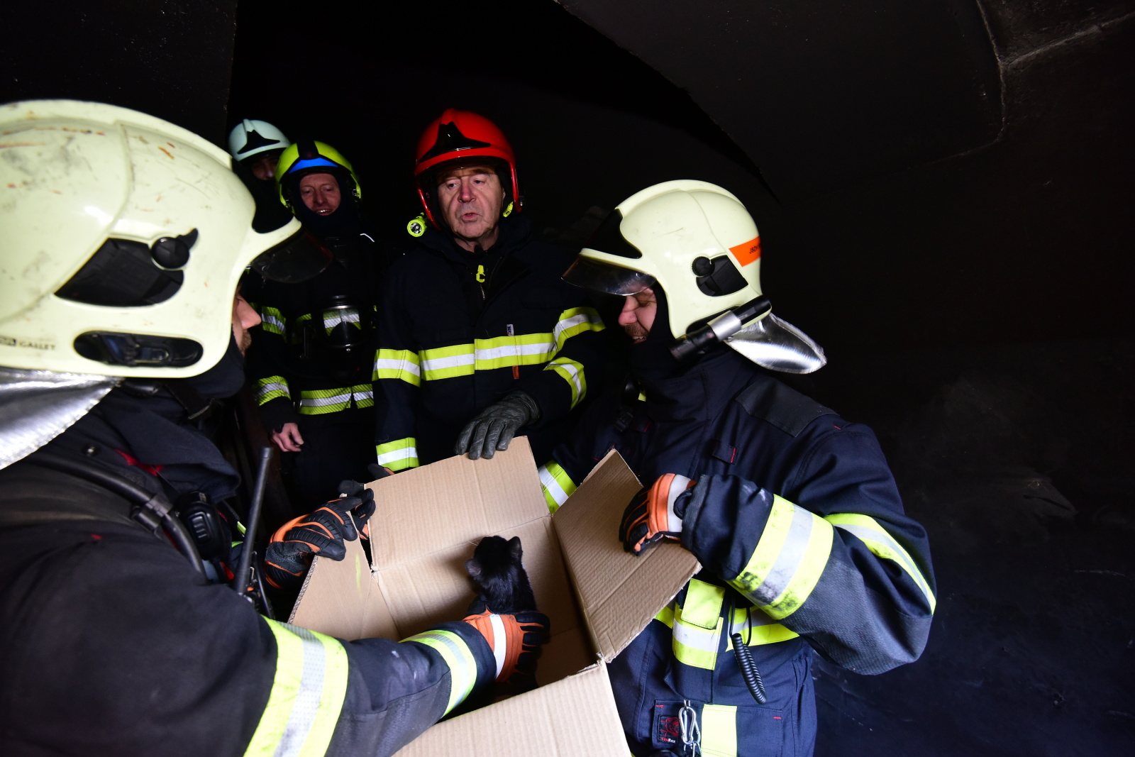 Po dojezdu první jednotky k požáru bylo potvrzeno, že celá třípatrová budova je zadýmena kouřem, který se valí z oken, a lidé nemohou ven. Hasiči ihned započali záchranné práce pomocí nastavovacích žebříků, kterými pomáhali lidem slézt z oken. Kde nešlo ustavit žebřík, museli hasiči pomocí vyváděcích masek vyvést osoby přes evakuační schodiště. Společně se záchrannými pracemi byl započat i hasební zásah. Šlo o požár odpadu pod schodištěm. Z důvodu velkého počtu zachráněných osob byl na místo povolán evakuační autobus ze Slaného, který v těchto mrazivých dnech skýtal všem osobám dočasné zázemí a tepelný komfort.