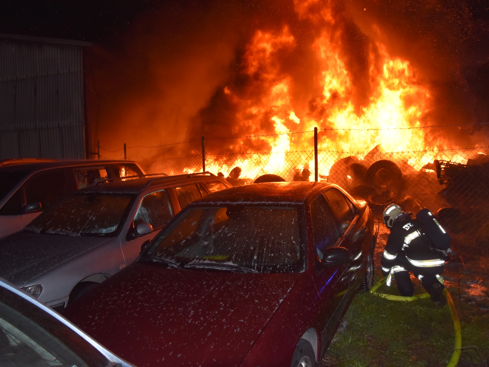 Prvotně bylo důležité dostat pod kontrolu hromadu hořících pneumatik, jelikož oheň ohrožoval vozidla na sousedním pozemku, která jsou zde uskladněna v depozitu. Další nebezpečí představovaly dráty vysokého napětí, které vedly nad areálem. Proto byl povolán technik rozvodných závodů, aby elektrické vedení odpojil.