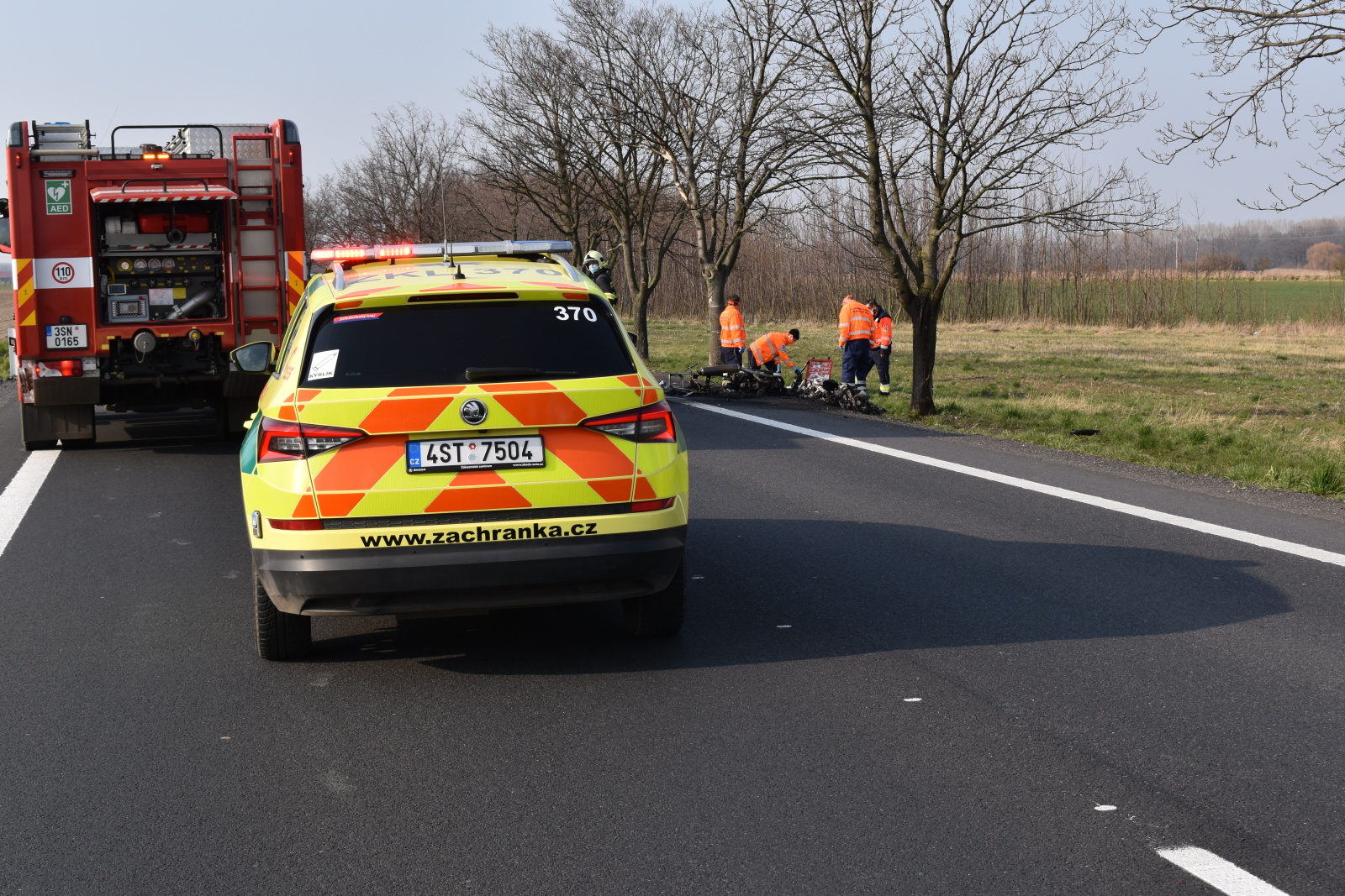 V sobotu 28. března ve čtvrt na čtyři odpoledne byla na linku tísňového volání Hasičského záchranného sboru Středočeského kraje ohlášena vážná dopravní nehoda dvou motocyklů na silnici číslo 38 na úrovni Poděbrad poblíž místní části Polabec. Podle oznamovatele obě motorky začaly ihned po nehodě hořet.