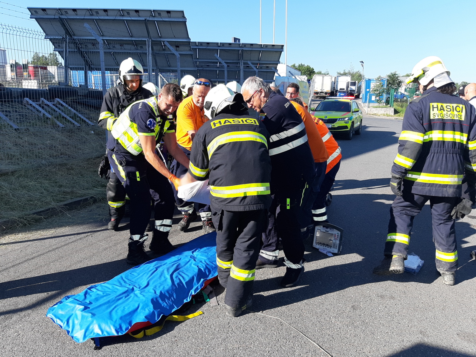 Při cestě k zásahu bylo upřesněno, že tlaková láhev ani nic dalšího už nehoří, ale na místě je silně popálená osoba. Současně s hasiči dorazila také zdravotnická záchranná služba, která si ihned popáleného muže převzala do péče. Vzhledem k charakteru a rozsahu zranění byl na místo vyslán také vrtulník letecké záchranné služby, který osobu transportoval na popáleninové centrum Fakultní nemocnice Královské vinohrady.
