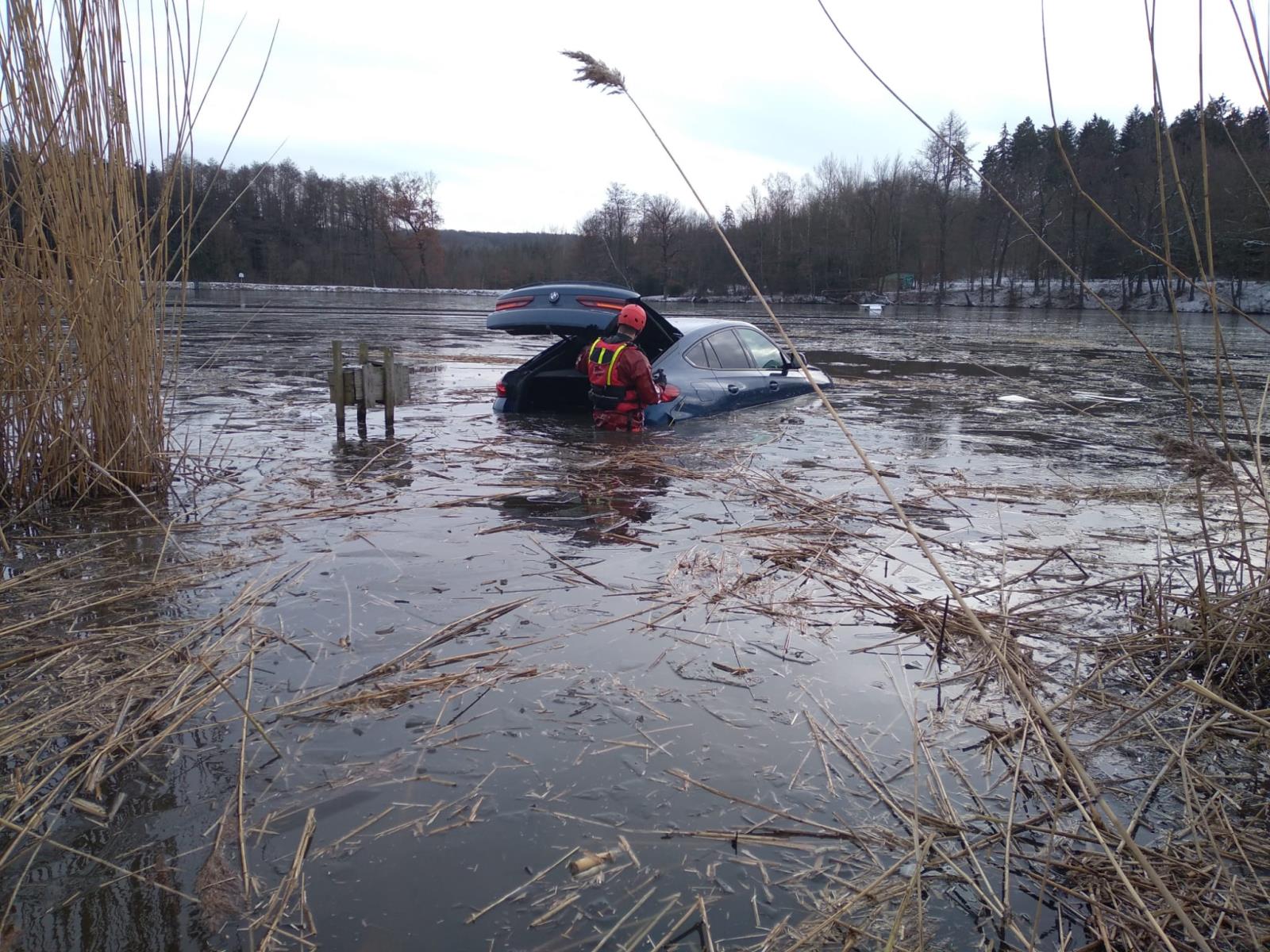 V pátek 7. ledna pár minut před půl druhou hodinou odpoledne byla na tísňovou linku středočeských hasičů oznámena dopravní nehoda, při které sjel osobní automobil do rybníka Pařez mezi obcemi Vyžlovka a Louňovice v okrese Praha-východ.