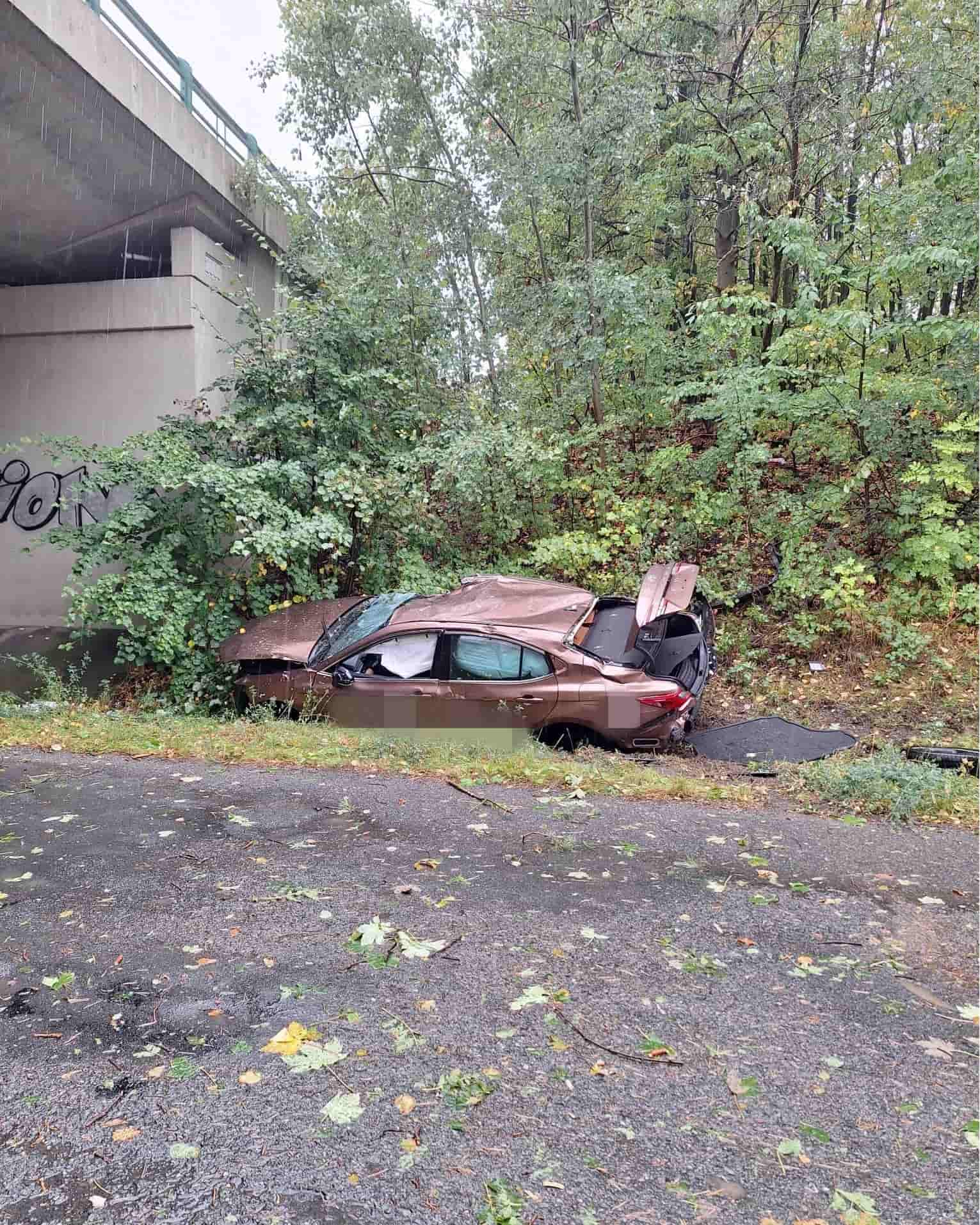 Řidič osobního automobilu, který jel směrem na Prahu, při havárii projel svodidly a skončil pod mostem. Nízký průlet přes komunikaci Buštěhrad–Číčovice byl tvrdý, ale řidič vyvázl díky rychlému zásahu zraněný. Svodidla byla poškozena již před nehodou při předchozím incidentu, místo bylo přesto řádně označené.
