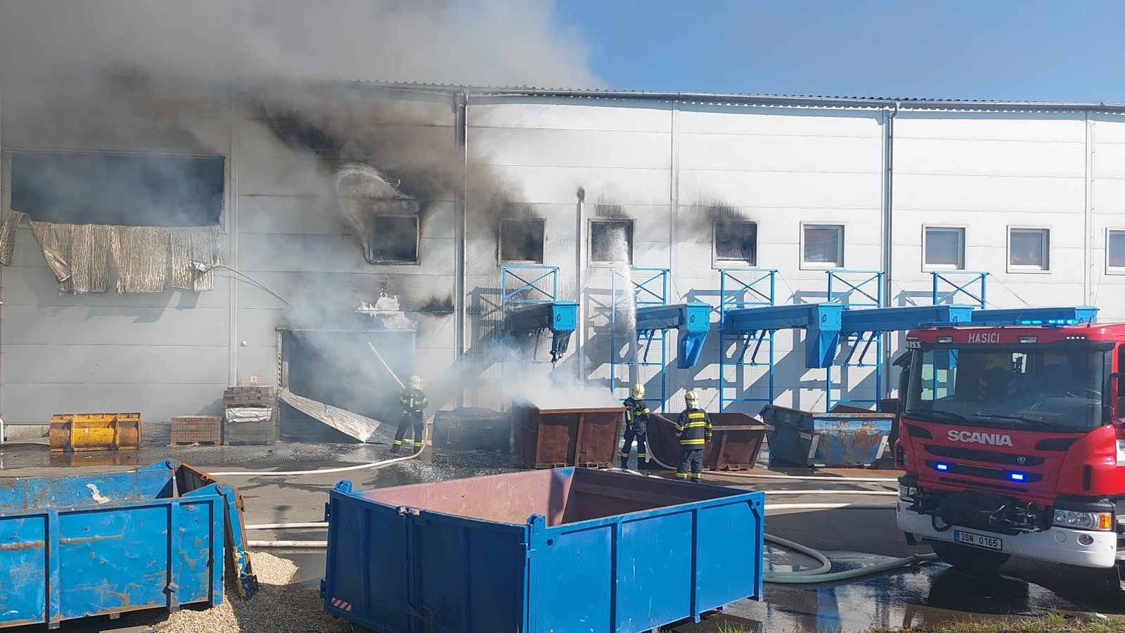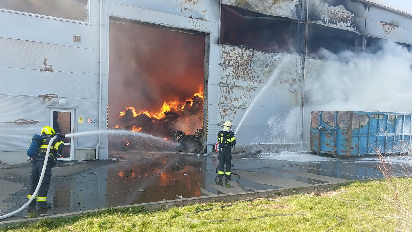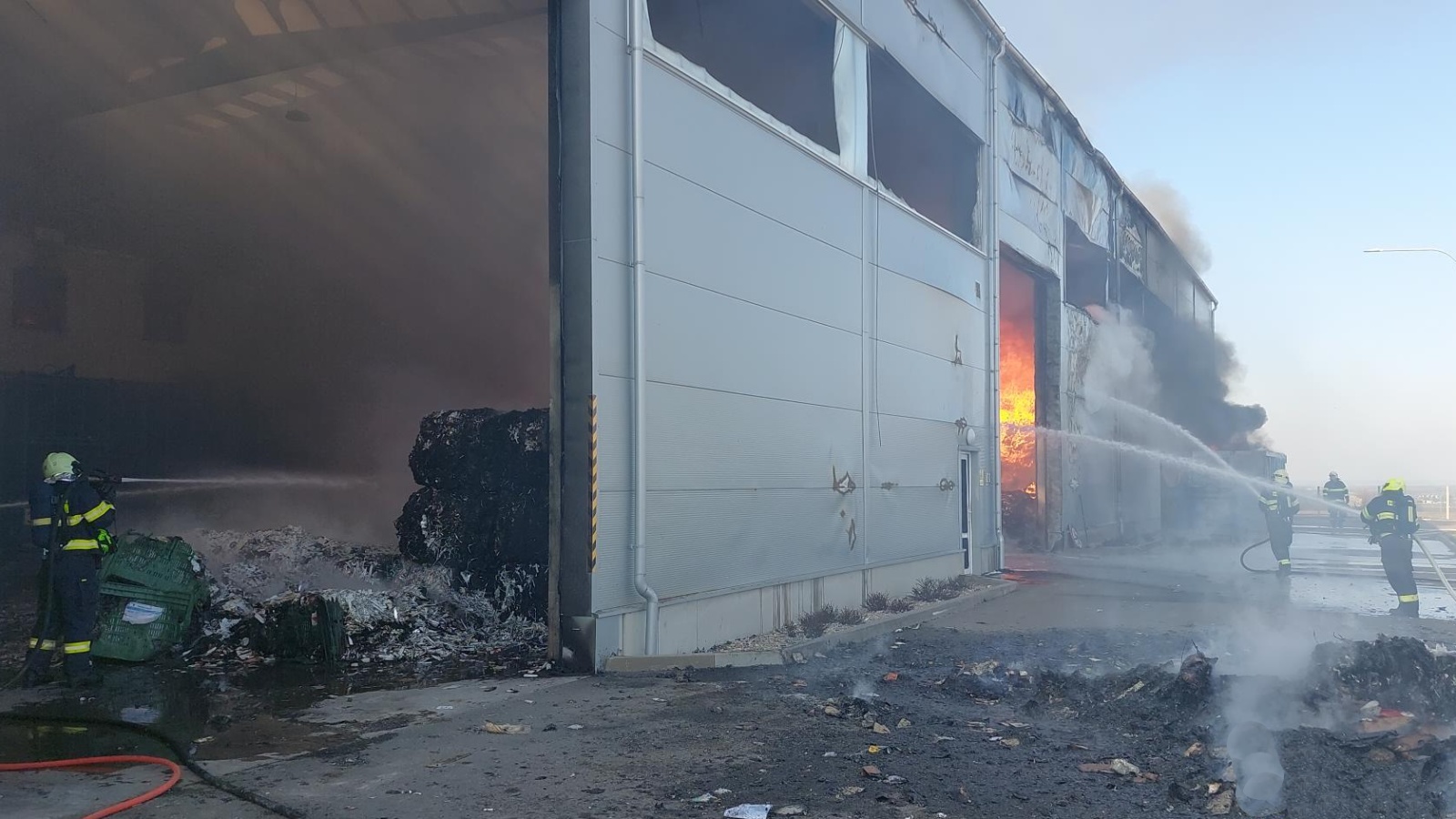 Po dojezdu jednotek podal velitel zásahu zprávu, že požárem je z větší části zasažena jednopodlažní hala o přibližných rozměrech 80x30 metrů, ve které byla umístěna linka na třídění plastového a papírového odpadu. Po informaci od operačního střediska o počtu jednotek mířících na místo si velitel vyžádal ještě další posilové jednotky (Ratenice a Kouřim). Velitel dále požádal o dron z centrální hasičské stanice Mělník a jednotku z Chemické laboratoře HZS Středočeského kraje v Kamenici, aby monitorovala koncentrace škodlivin v ovzduší. Zásah jednotky zahájily v dýchací technice čtyřmi vysokotlakými proudy a čtyřmi C proudy. Řídící důstojník územního odboru Kolín, který se dostavil na místo, si převzal velení a rozdělil místo zásahu na dva bojové úseky.