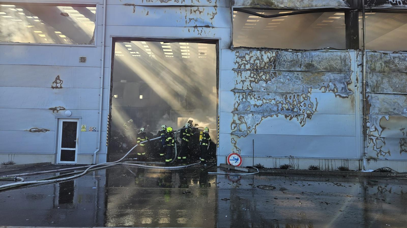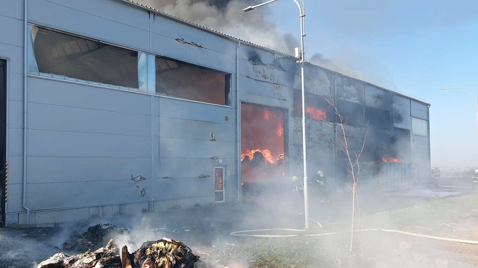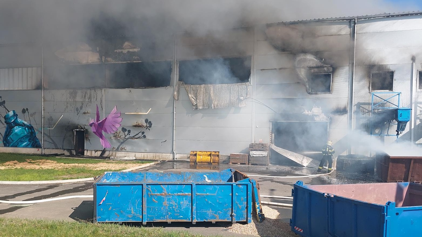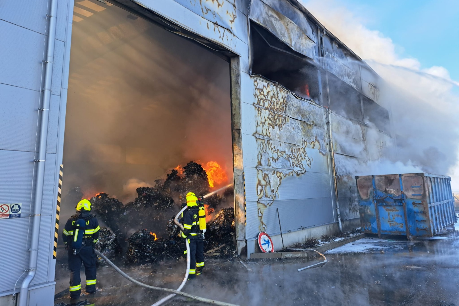 Po dojezdu jednotek podal velitel zásahu zprávu, že požárem je z větší části zasažena jednopodlažní hala o přibližných rozměrech 80x30 metrů, ve které byla umístěna linka na třídění plastového a papírového odpadu. Po informaci od operačního střediska o počtu jednotek mířících na místo si velitel vyžádal ještě další posilové jednotky (Ratenice a Kouřim). Velitel dále požádal o dron z centrální hasičské stanice Mělník a jednotku z Chemické laboratoře HZS Středočeského kraje v Kamenici, aby monitorovala koncentrace škodlivin v ovzduší. Zásah jednotky zahájily v dýchací technice čtyřmi vysokotlakými proudy a čtyřmi C proudy. Řídící důstojník územního odboru Kolín, který se dostavil na místo, si převzal velení a rozdělil místo zásahu na dva bojové úseky.