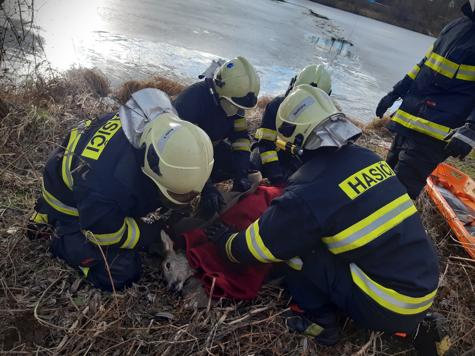 Ve čtvrtek 4. února před půl třetí odpoledne oznámila pozorná žena na tísňovou linku středočeských hasičů dvě topící se srny. Zpozorovala je na Sedlčanské retenční nádrži na Příbramsku. Srny došly po tenkém ledu přibližně do poloviny šířky nádrže, kde se pod nimi led prolomil.