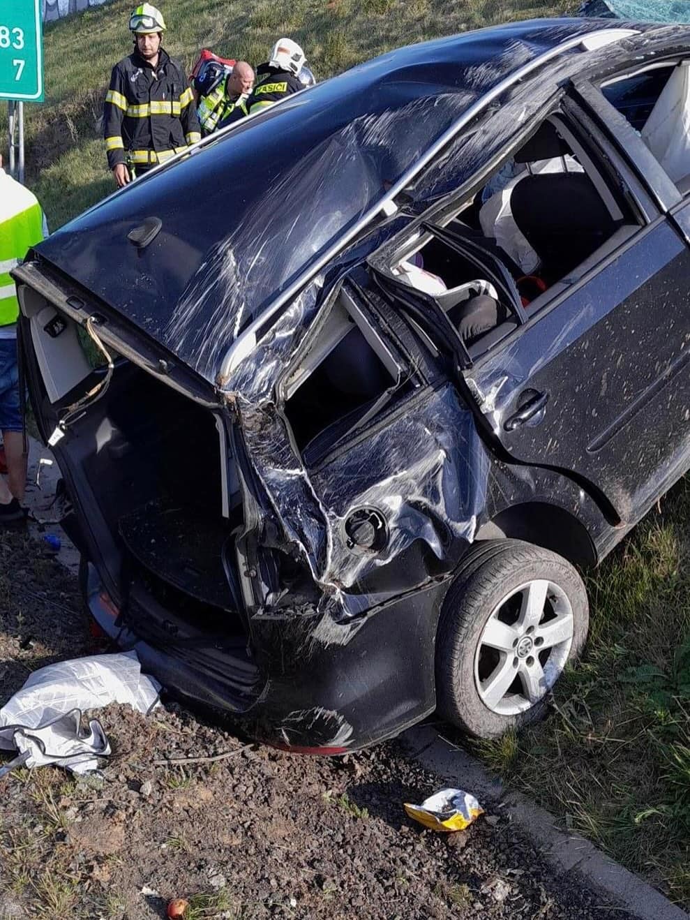 Převrácené auto na D6 u Nového Strašecí