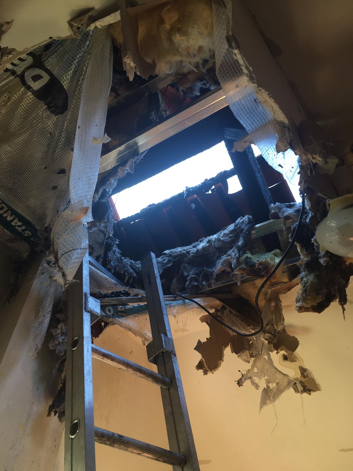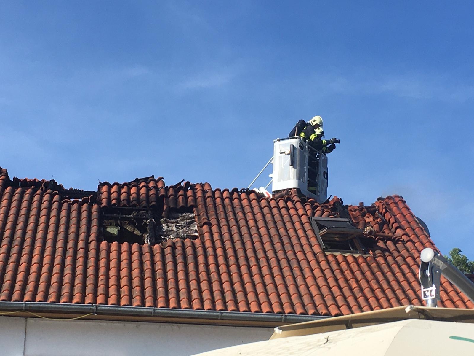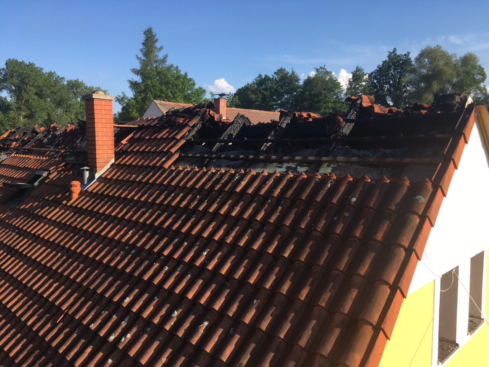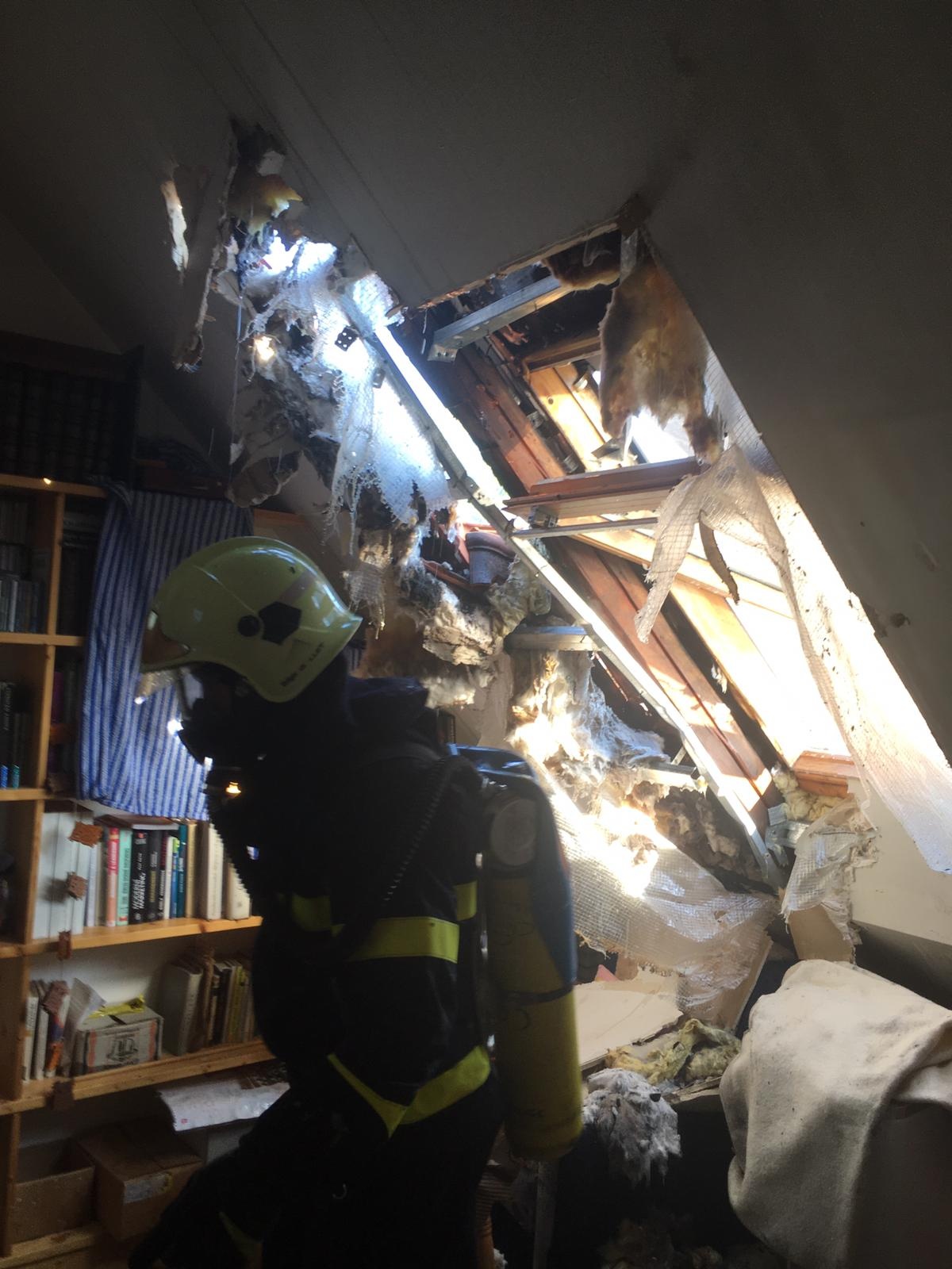 Provedeným průzkumem bylo zjištěno, že požárem je zasaženo podkroví budovy a vazný trám. Jeho poškozením došlo k částečnému propadnutí střechy, zásah proto musel probíhat s ohledem na bezpečnost. Hasiči se snažili k ohnisku požáru dostat přes sádrokarton, který museli rozebrat. Krátce po 18. hodině byla nahlášena lokalizace a za další hodinu likvidace.
