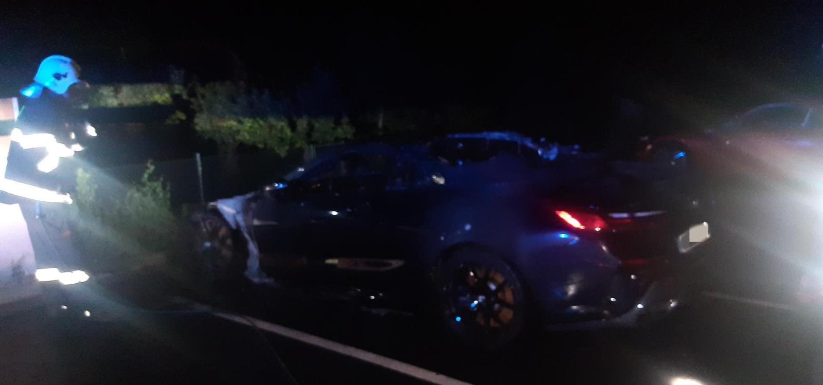 K požáru osobního automobilu v Hřiměždicích na Příbramsku vyjeli profesionální hasiči z Dobříše a Příbrami a dobrovolní hasiči z Hřiměždic necelých dvacet minut před půlnocí. Při příjezdu jednotek k události byla přední část vozidla požárem zcela zasažena. Hasiči k likvidaci plamenného hoření nasadili vysokotlaký vodní proud. Krátce po půlnoci se jim podařilo dostat požár pod kontrolu a byla nahlášena jeho lokalizace. Za další hodinu byl zcela zlikvidován. Škoda byla předběžně vyčíslena na čtyři a půl milionu korun. Příčinou požáru se kromě hasičského vyšetřovatele budou v dopoledních hodinách zabývat experti z Technického ústavu požární ochrany v Praze.