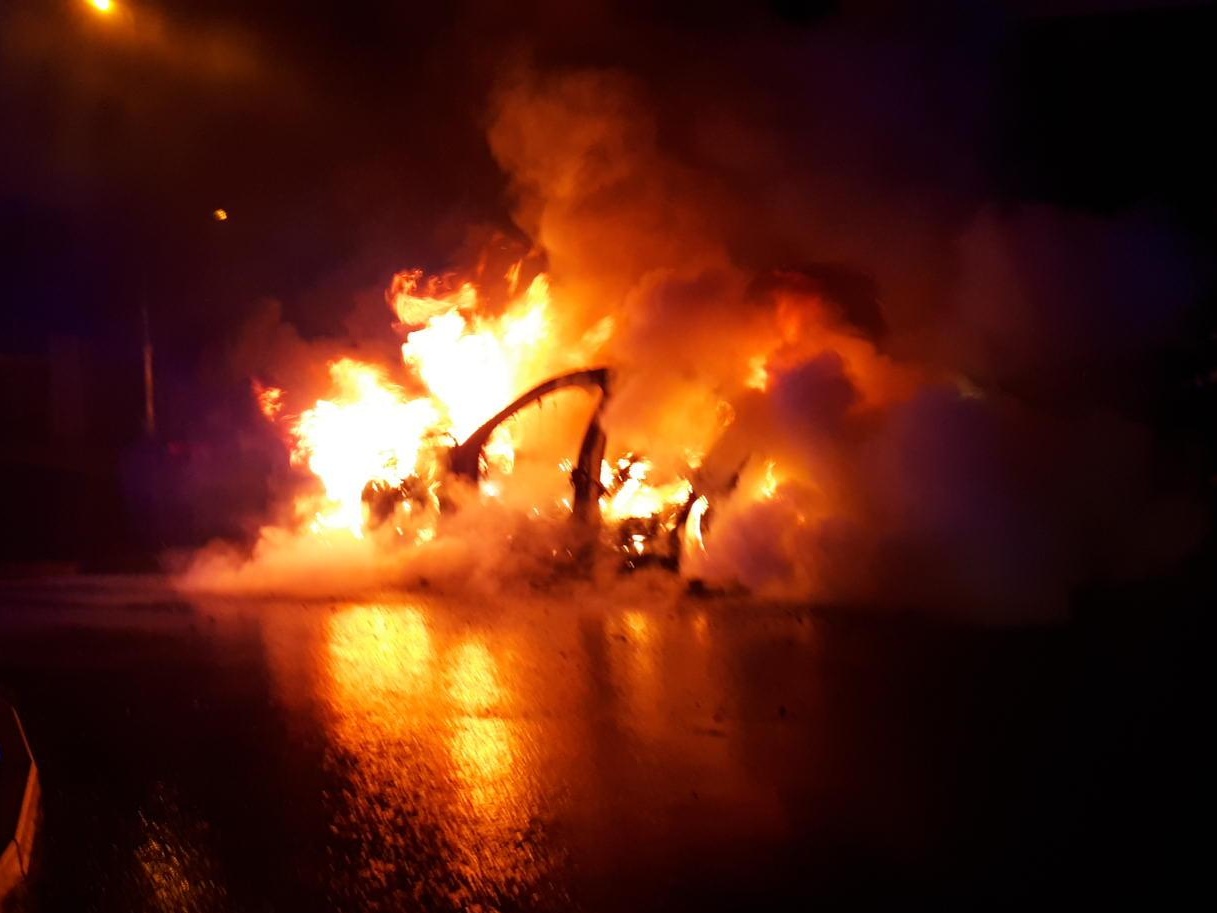 K druhému nahlášenému požáru osobního automobilu vyjeli v půl třetí v noci do Levína na Berounsku profesionální hasiči z Berouna spolu s dobrovolnou jednotkou obce Králův Dvůr. Už při ohlášení události oznamovatel uvedl, že vozidlo je celé v plamenech. To potvrdila provedeným průzkumem první jednotka, která dojela na místo. Hasiči k likvidaci požáru nasadili několik vodních proudů. Pár minut po třetí hodině ranní byl požár lokalizován a za další necelou hodinu zcela zlikvidován. Zde byla škoda předběžně vyčíslena na 1,3 milionu korun. Příčina požáru je předmětem dalšího vyšetřování.