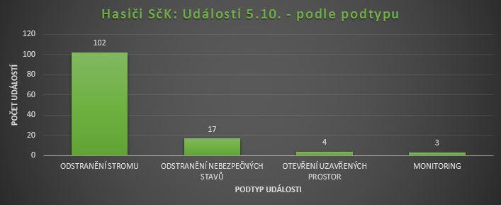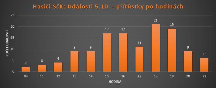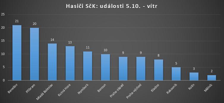 Hasiči řešili celkem 126 událostí, z toho ve 102 případech se jednalo o spadlé stromy nebo větve. Nejvíce výjezdů bylo na okresech Benešov a Příbram, větrné počasí zasáhlo celý kraj. Zasahující hasiči a jejich operační středisko byli nejvíce vytíženi mezi 18. a 20. hodinou. V té době bylo ohlášeno 40 nových událostí, což je více než dlouhodobý průměrný počet zásahů za 24 hodin.