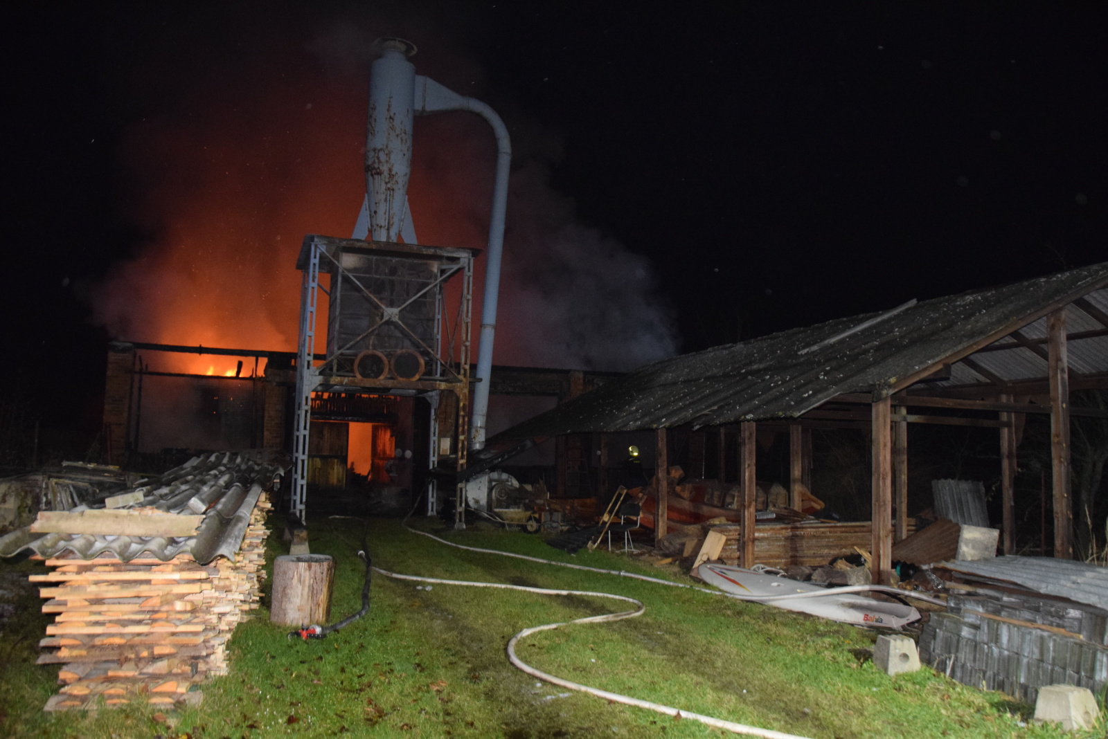 Hasiči v dýchací technice nasadili na zdolání plamenů téměř deset vodních proudů. Zásah však byl poměrně komplikovaný, protože celý areál byl tvořen několika na sebe navazujícími trakty o celkovém půdorysu 15 x 40 metrů. Navíc se v nich začaly bortit stropy a hrozilo velké nebezpečí zranění hasičů. Jednotky se zároveň soustředily i na uchránění nezasažených sousedních objektů, které byly v těsné blízkosti truhlárny.