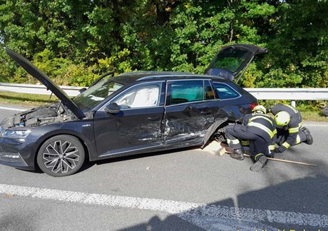 Srážka dvou osobních vozidel zastavila provoz na dálnici