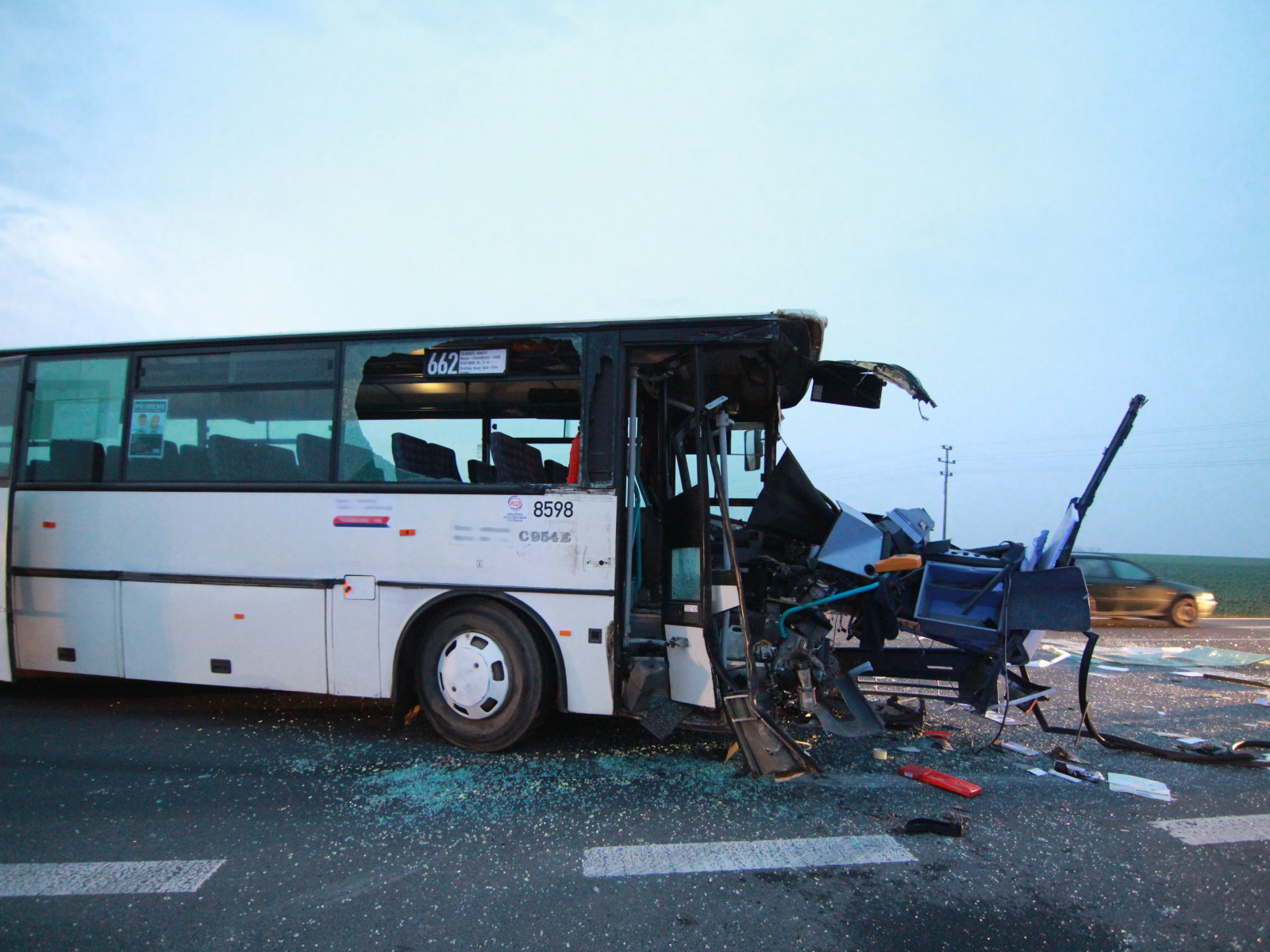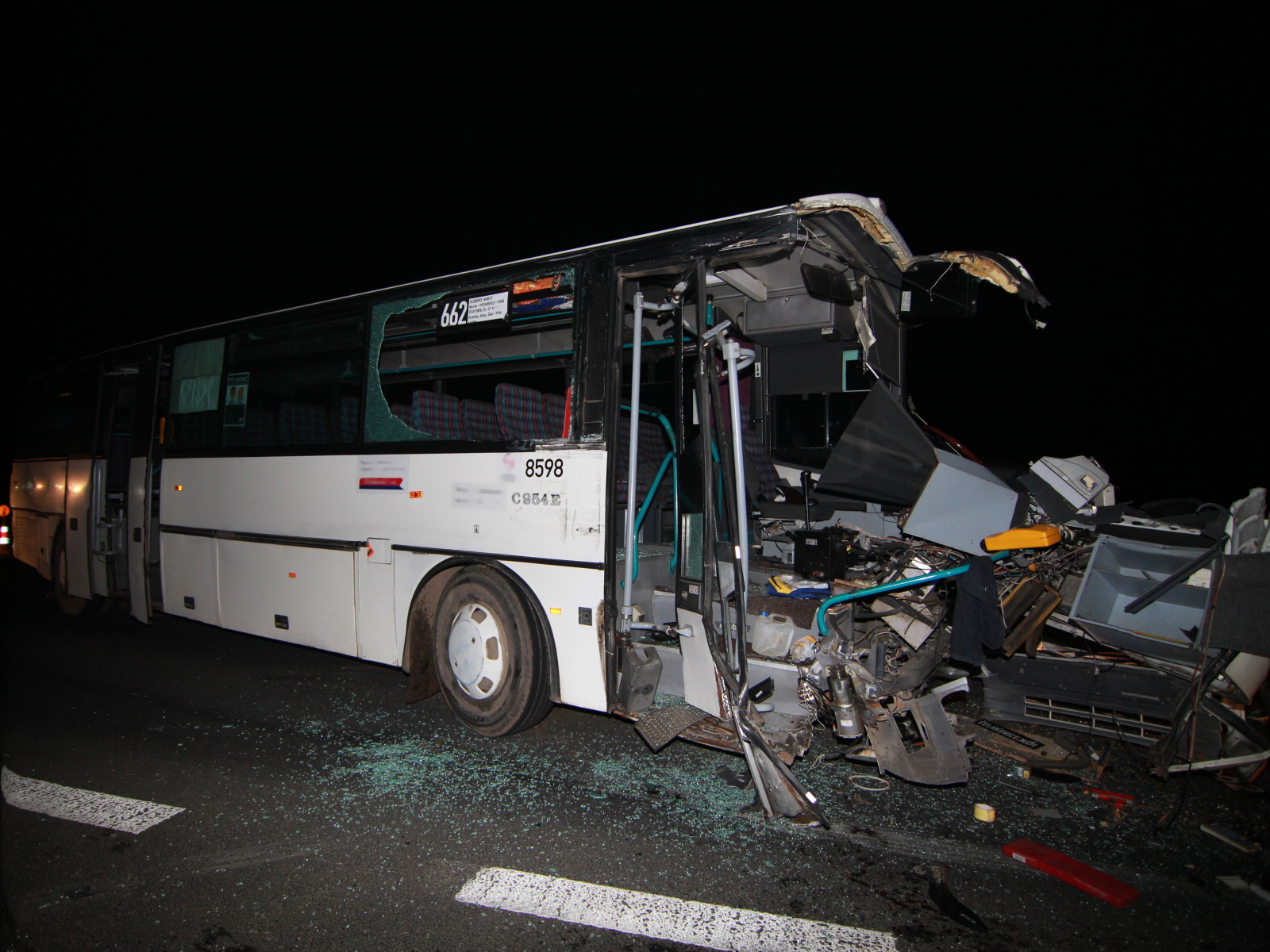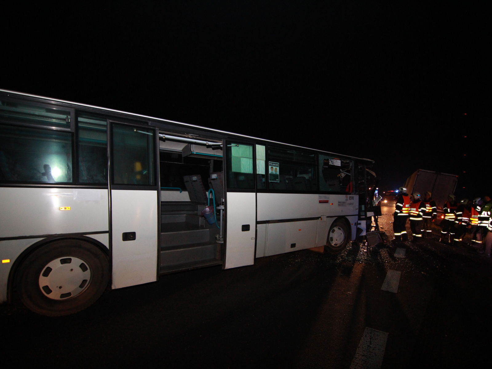 Střet kamionu a autobusu na Kolínsku bez vážnějších následků