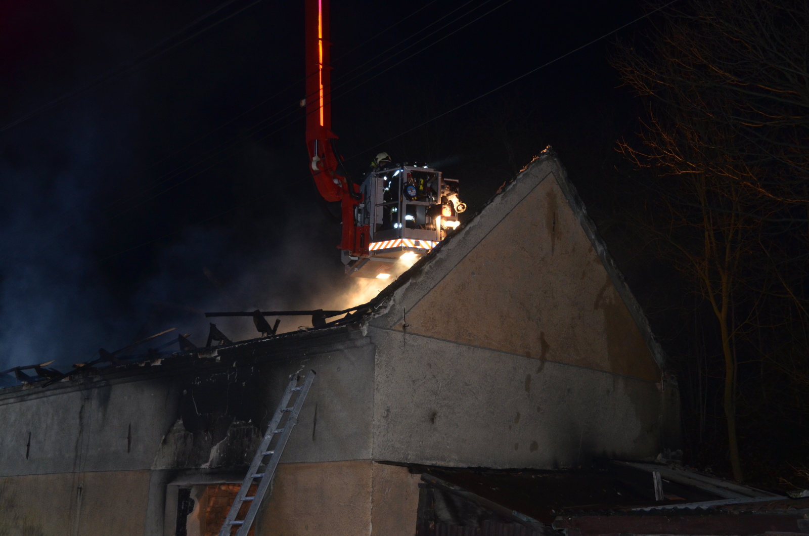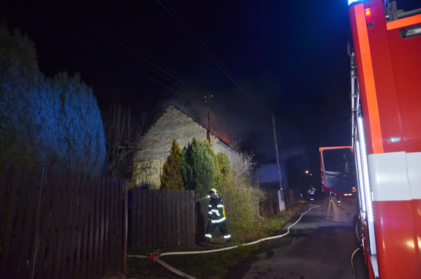 Hasiči v dýchací technice nasadili na likvidaci požáru tři C proudy z vnější strany domu a po odpojení elektrického proudu pracovníky rozvodných závodů přidali ještě jeden z automobilové plošiny. Senior, který žil v domě, už byl mimo objekt, ale musel být ošetřen přivolanou posádkou zdravotnické záchranné služby, protože se nadýchal zplodin hoření. Pak byl odvezen k dalšímu vyšetření do nemocnice.