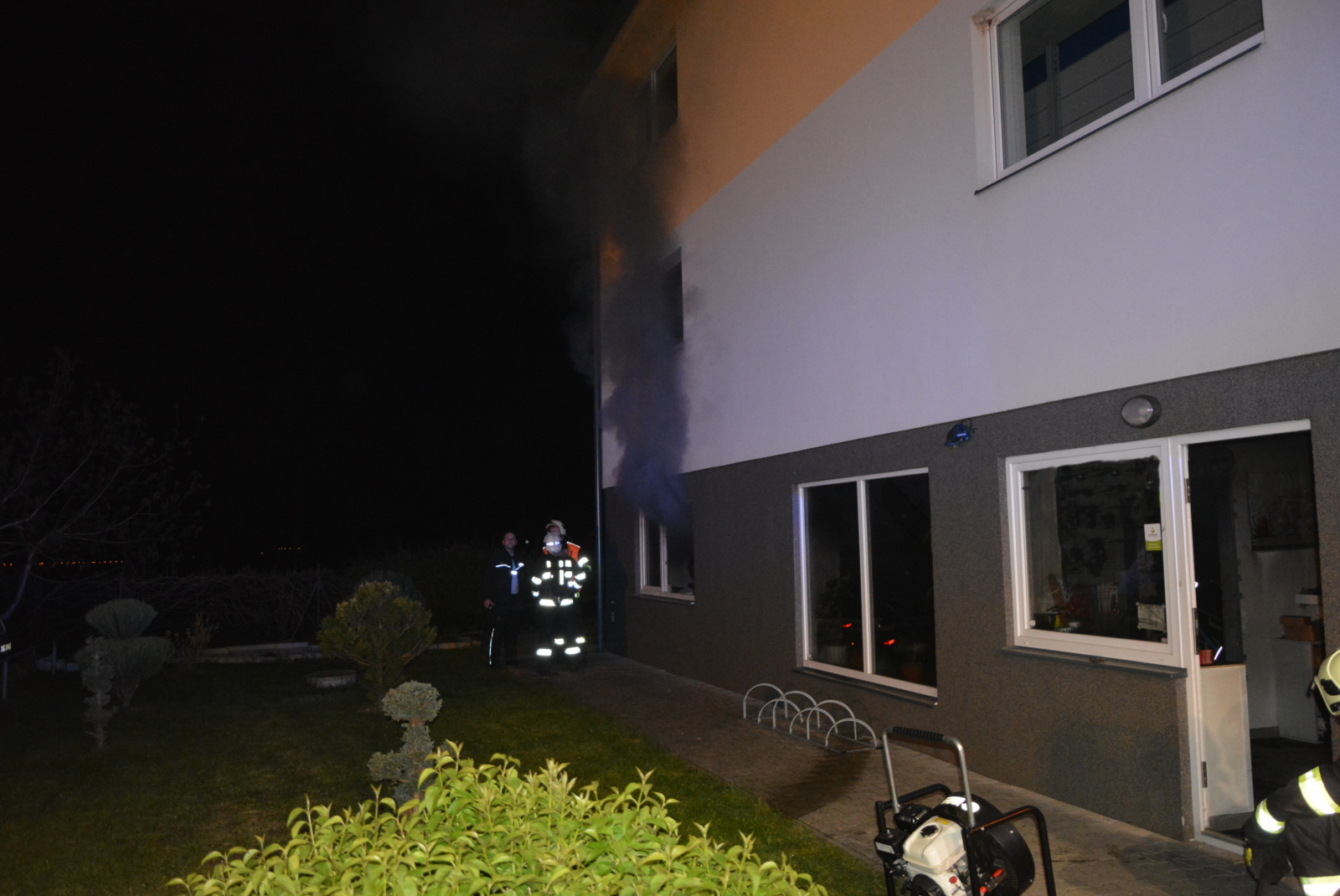 Přibližně deset nezraněných osob odešlo z bytů před příjezdem Policie ČR, hasičů a záchranné služby. Hasiči během chvíle dostali požár baterií do elektrokol pod kontrolu pomocí jednoho vysokotlakého proudu. Současně odpojili plynovou kotelnu a provedli průzkum, zda se uvnitř objektu ještě někdo nenachází. Zplodiny hoření odvětrali přetlakovým ventilátorem.