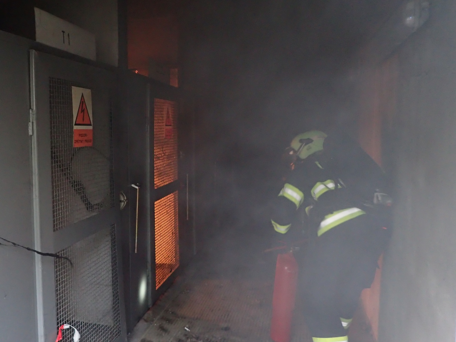 Jednotka po příjezdu k události uvedla, že z rozvodny zamčené trafostanice 22 kV se valí dým a je potřeba na místo technik rozvodných závodů. Hasiči se zatím pokoušeli do nasávacích otvorů aplikovat CO2, který se používá k hašení elektrických zařízení. Po několikátém prověření termokamerou bylo zjištěno, že uvnitř narůstá teplota a bude nutné provést násilný vstup. V té chvíli se však na místo dostavila pohotovostní četa, která trafostanici odemkla.