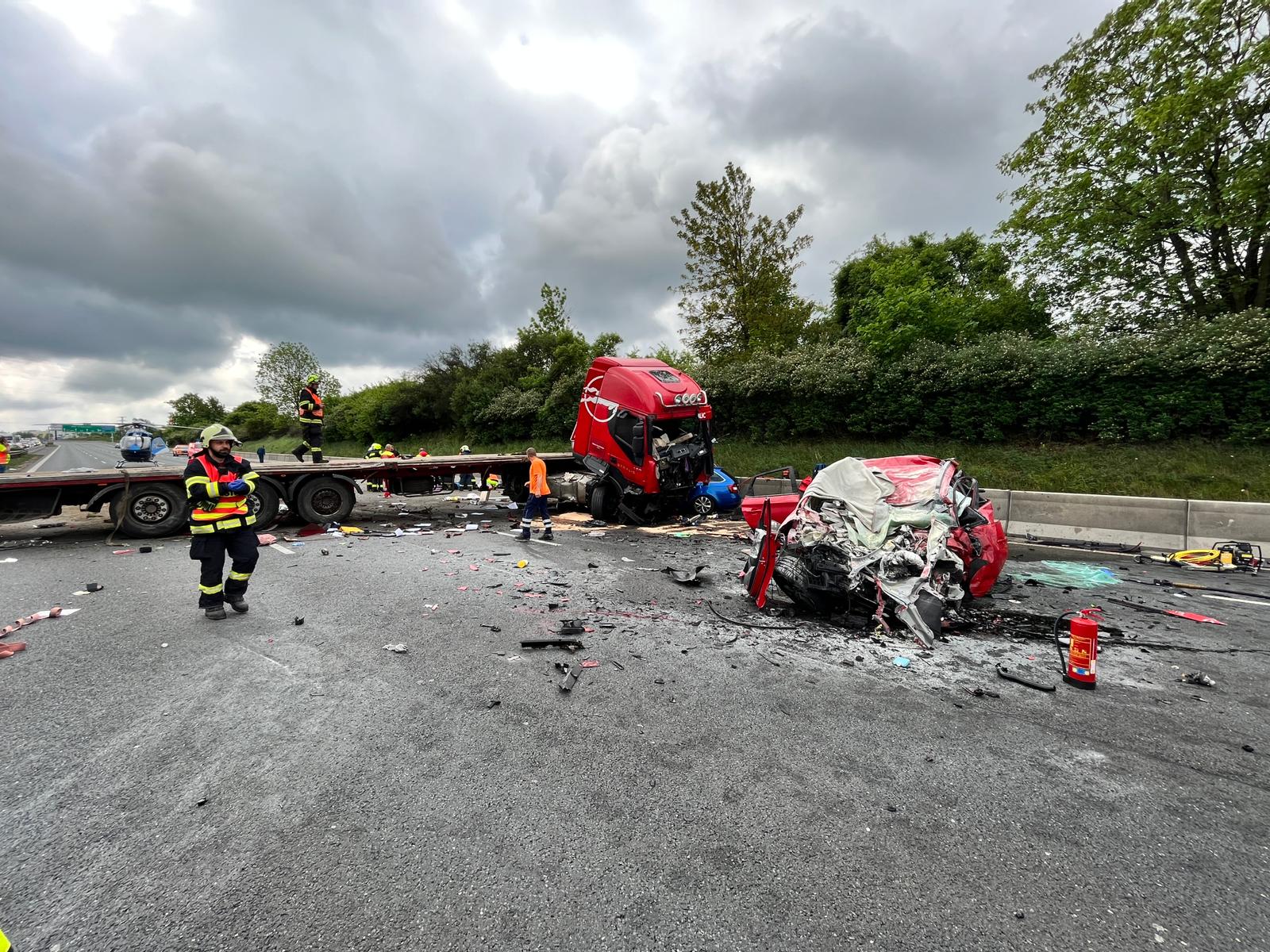 V úterý 17. května krátce po desáté hodině přijali středočeští hasiči oznámení o dopravní nehodě nákladního automobilu a tří osobních automobilů na 14,5. kilometru dálnice D1 ve směru na Brno poblíž obce Strančice.